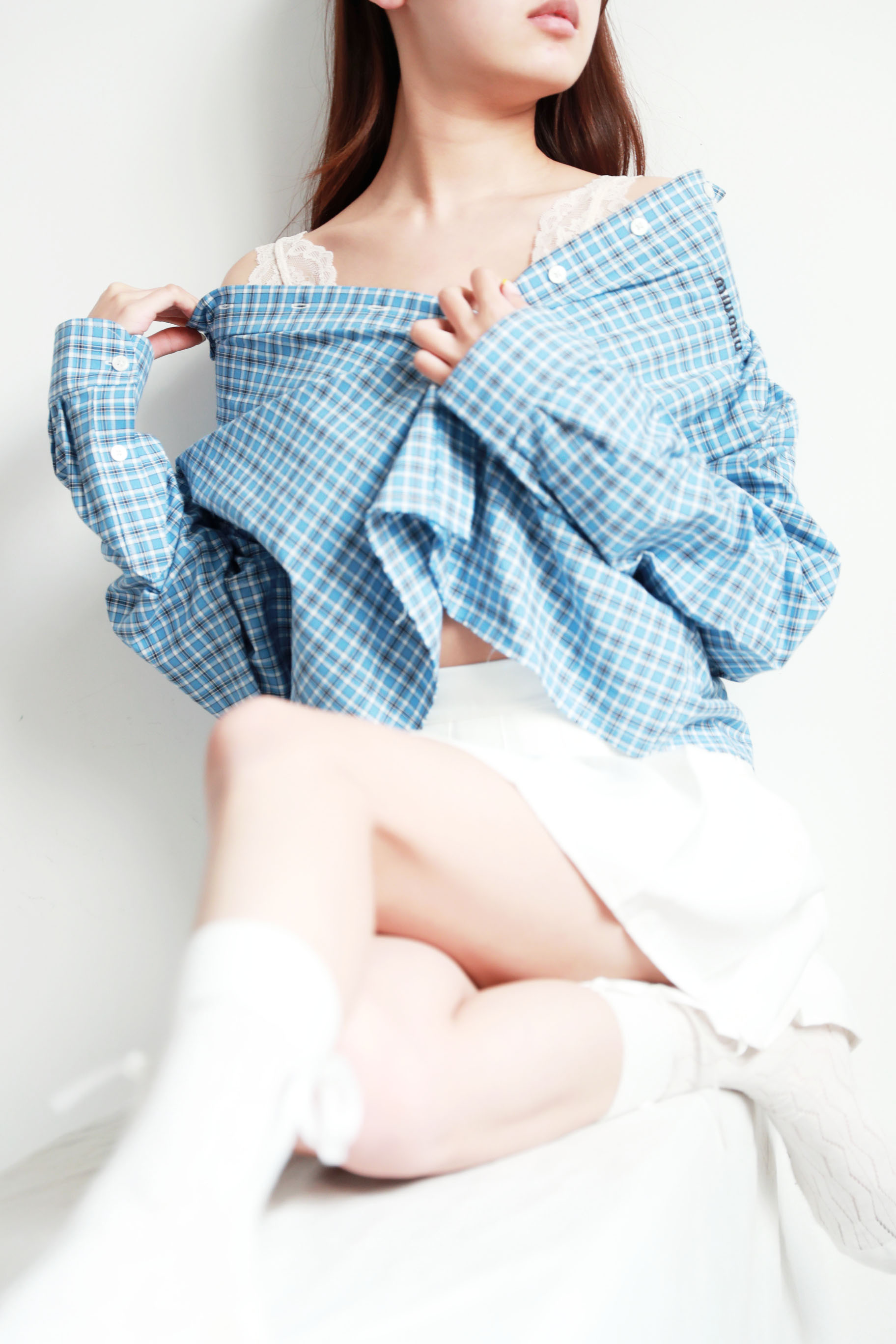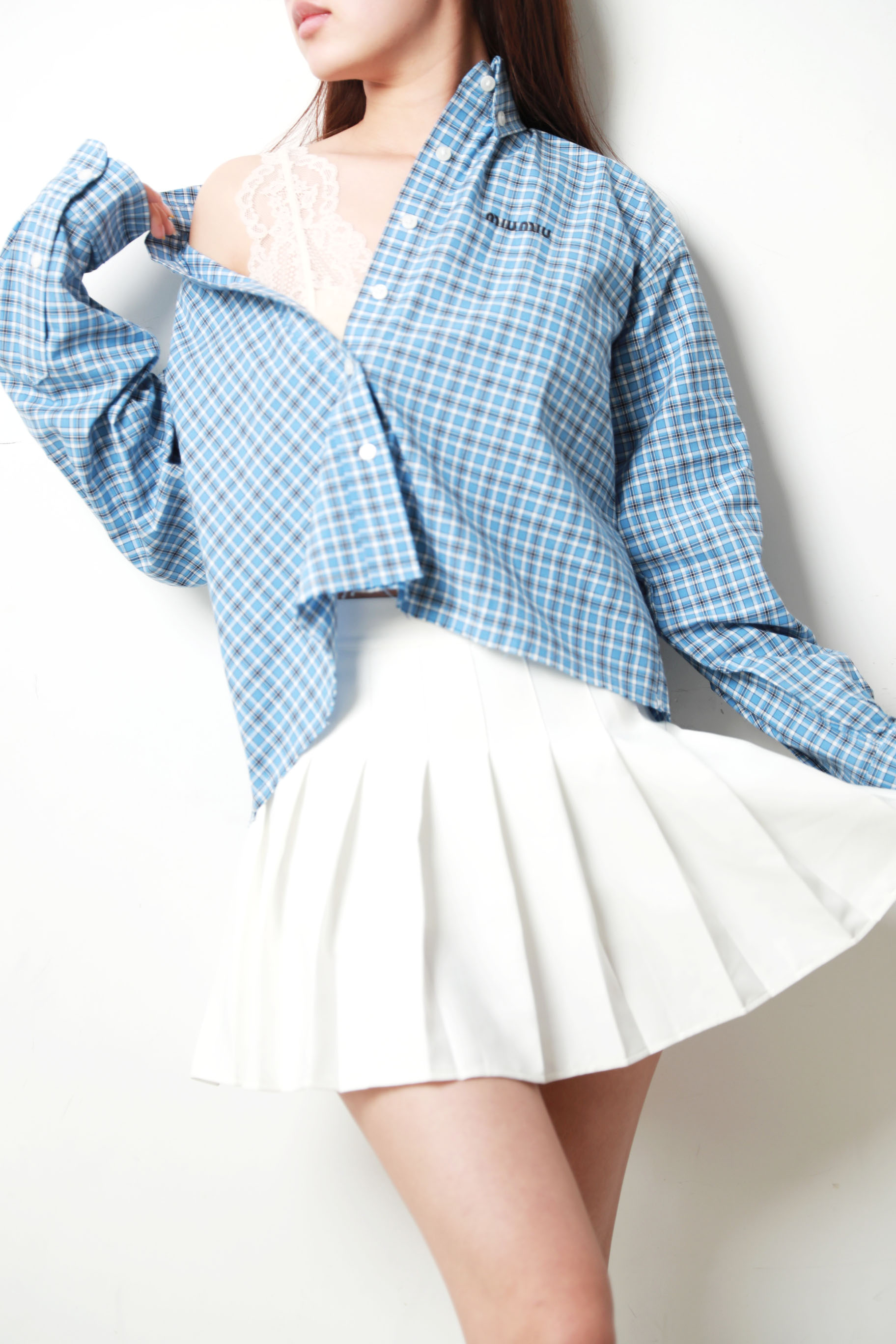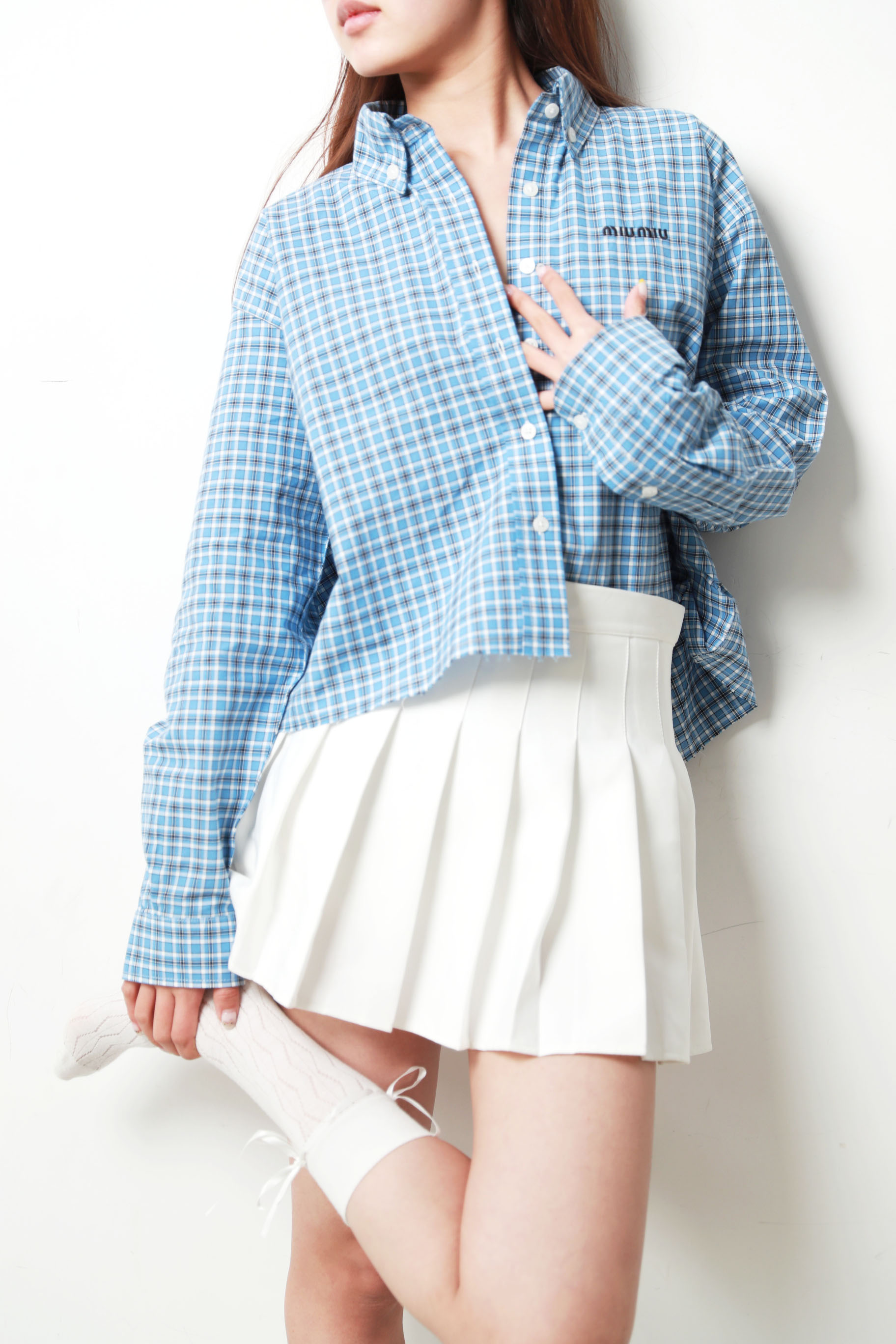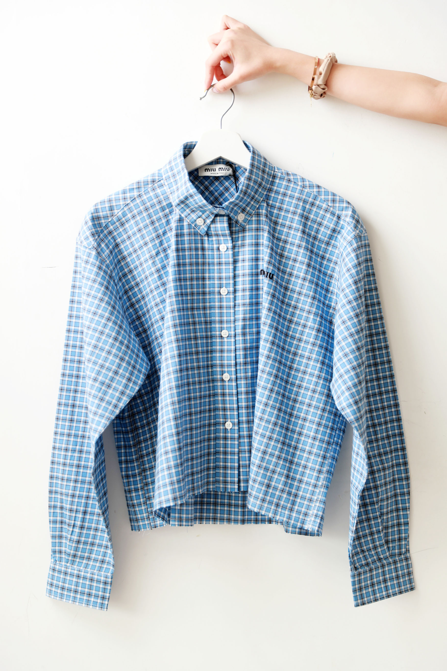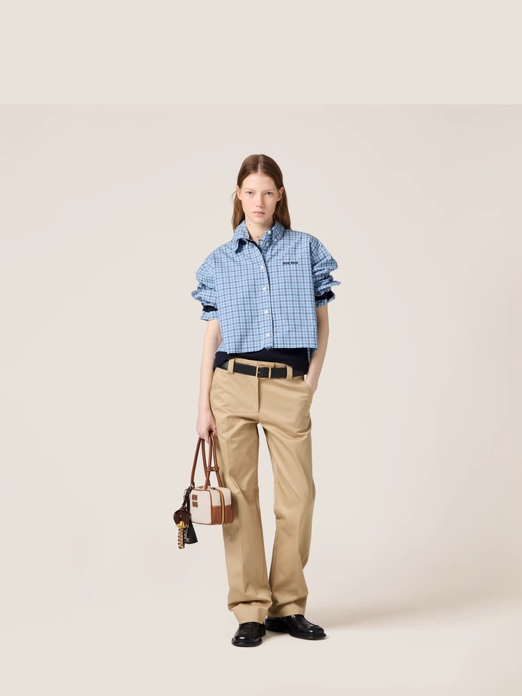 格纹府绸衬衫,叠穿更好看!!胸口小标刺绣翻领长袖衬衣C033188