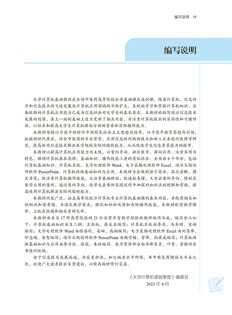 大学计算机基础教程 叶青 主编 新世纪第二2版 中国中医药出版社 全国中医药行业高等教育十四五规划教材第十一版