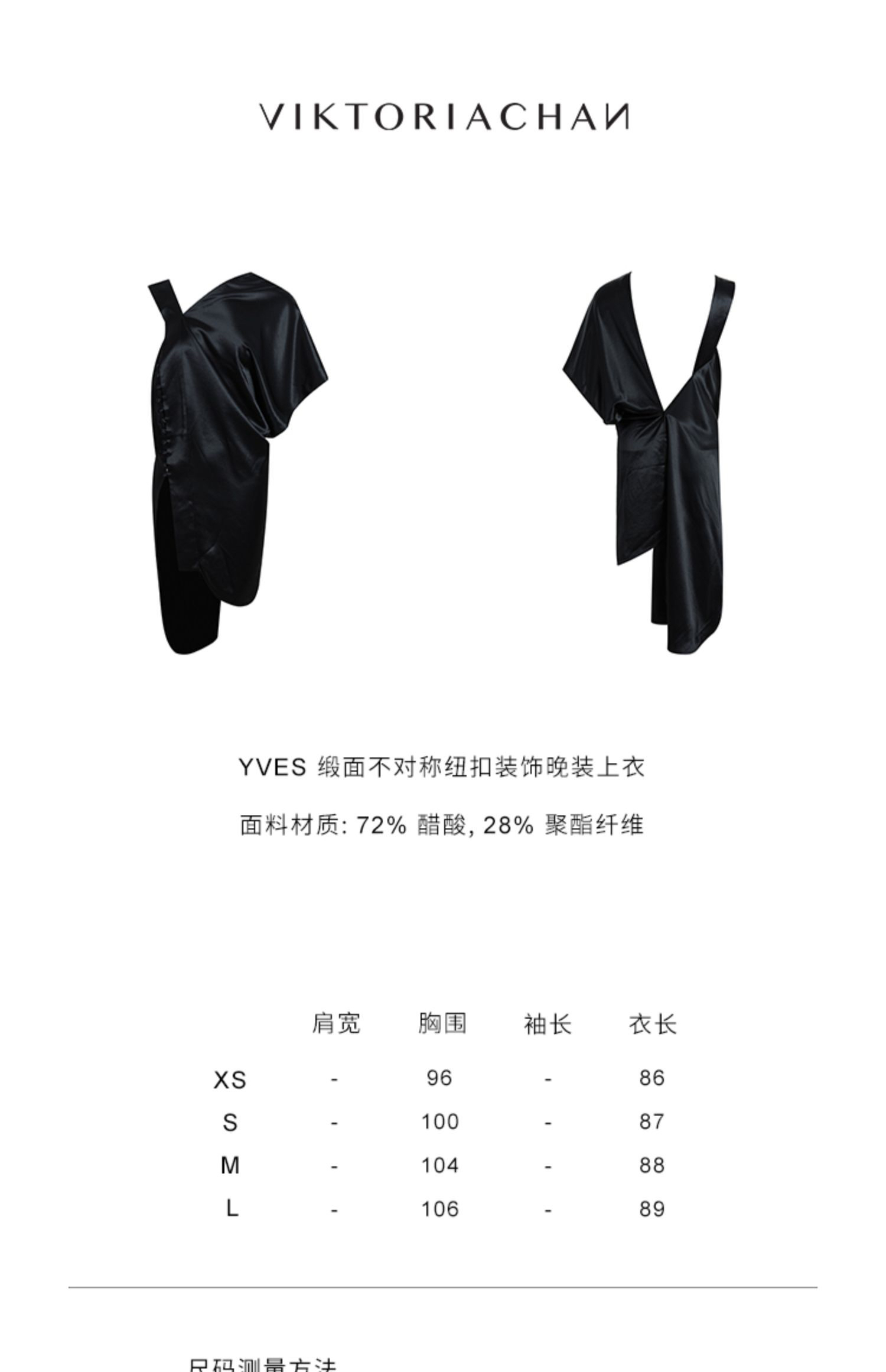 Viktoria Chan | AW2124 Yves draped satin top [醋酸不对称肩袖上衣 黑/白]