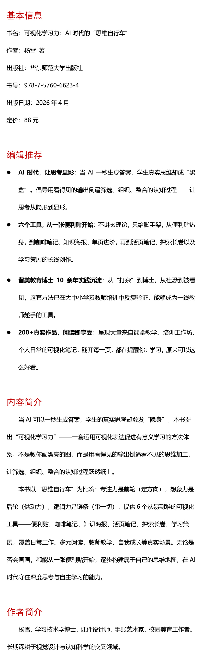【预售】可视化学习力 AI时代的“思维自行车” 杨雪 直面AI时代学习困境