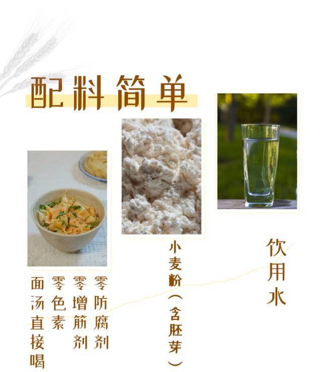 配料:生态冬小麦面粉(含胚芽)、饮用水