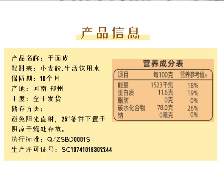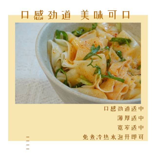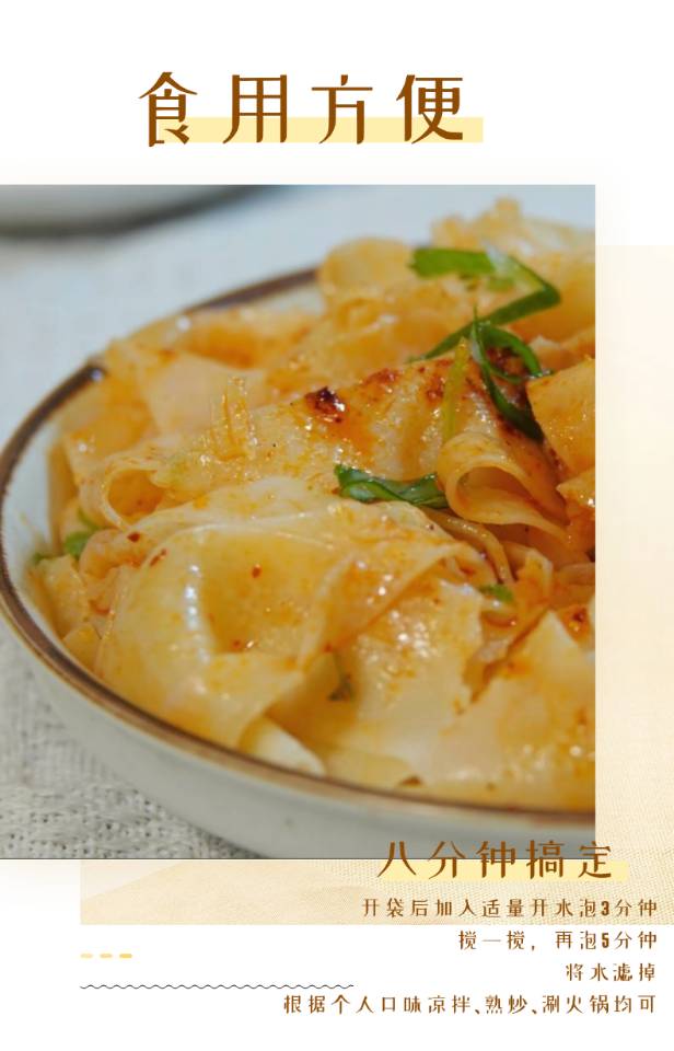 重要说明:干面皮一定不能开水煮,另外即泡即吃,泡好后放置时间久了会影响口感。