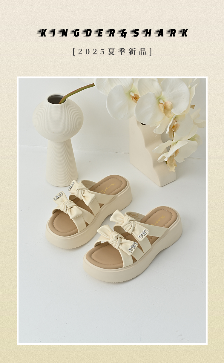 经典鲨2025夏季新品时尚简约室内外舒适通勤一字带凉拖鞋女KW317-529011