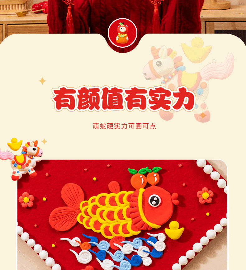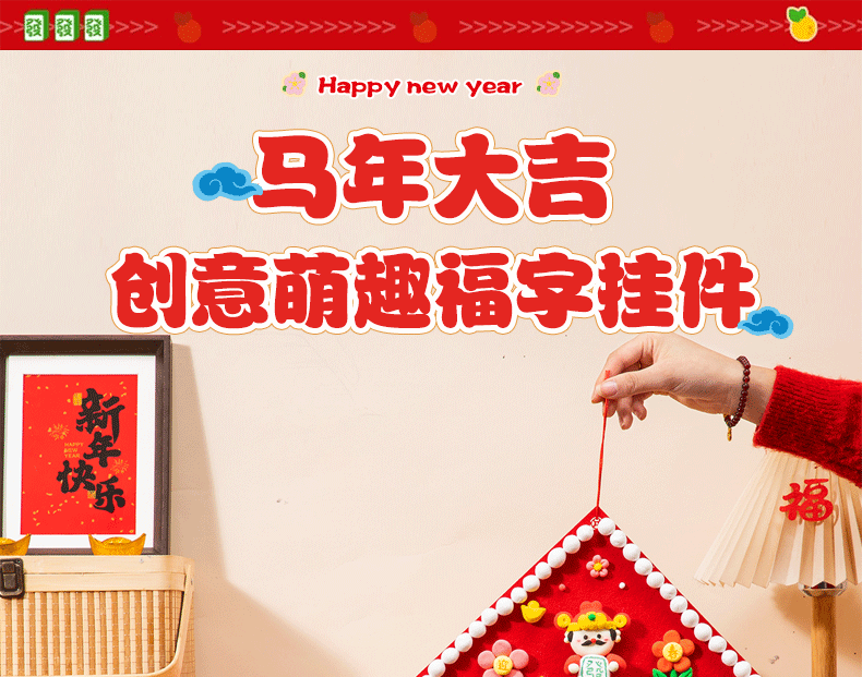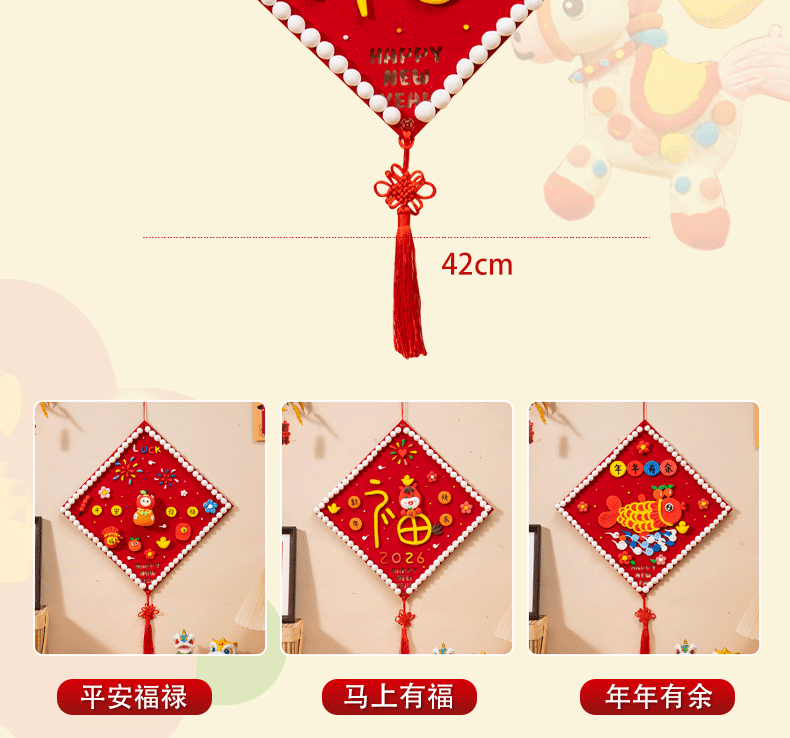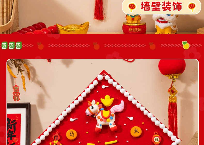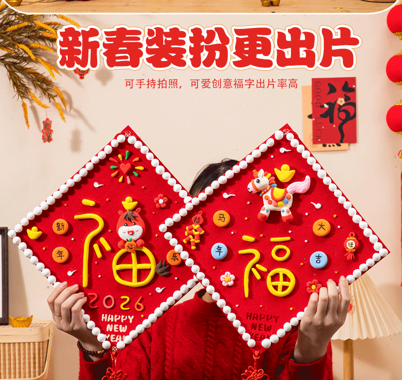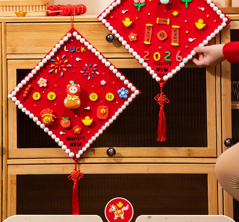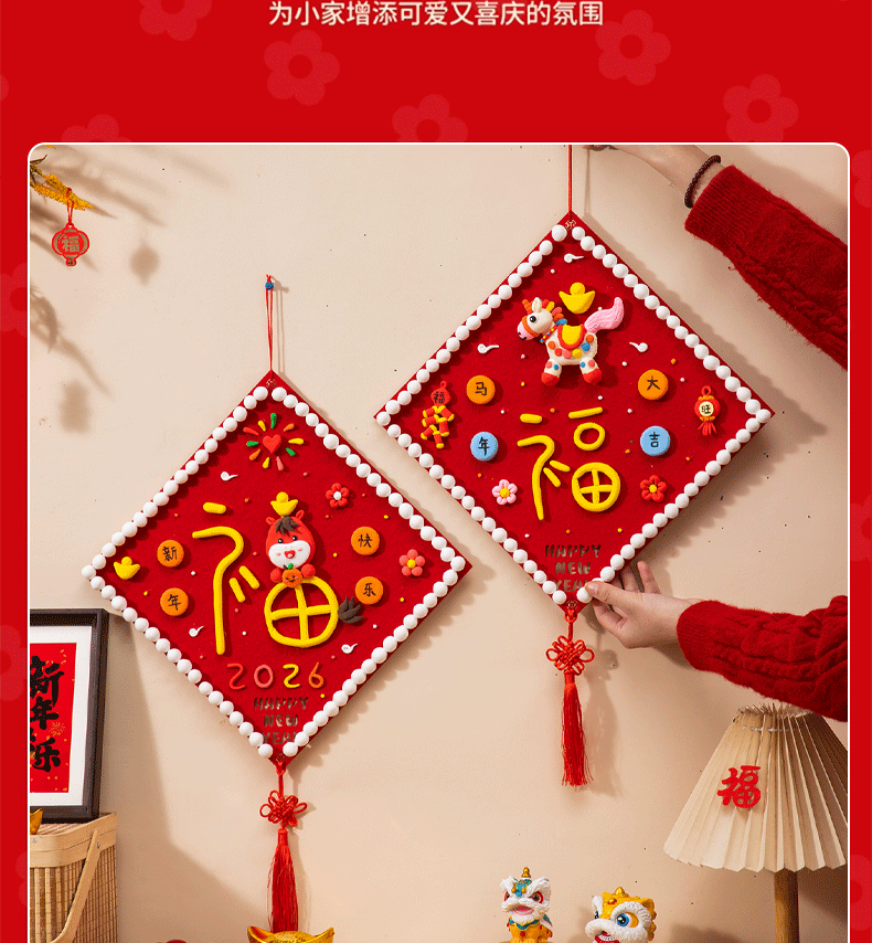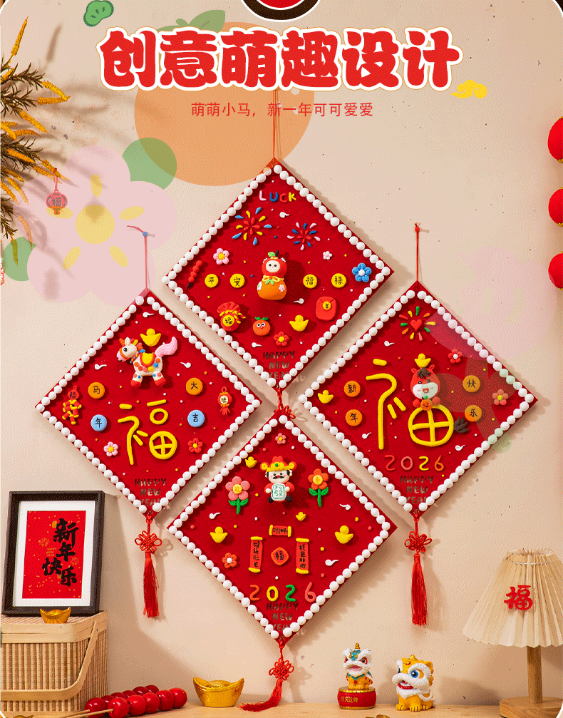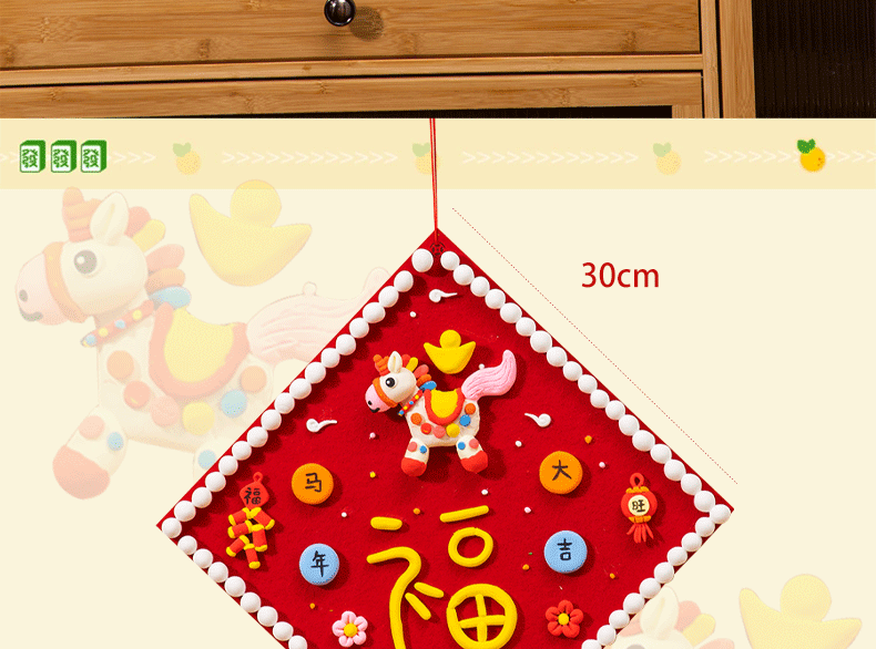 【马年限定❗️创意萌趣福字挂件】萌萌小马「新年一路发发发」新春裝扮更出片,新年元旦儿童礼物,马年福字挂件饰手工diy,黏土材料益智玩具小礼品L