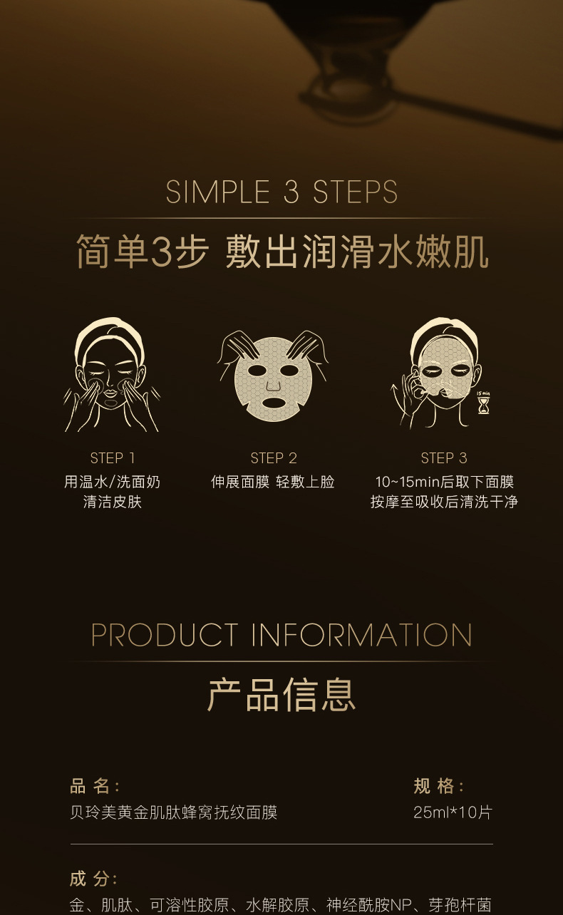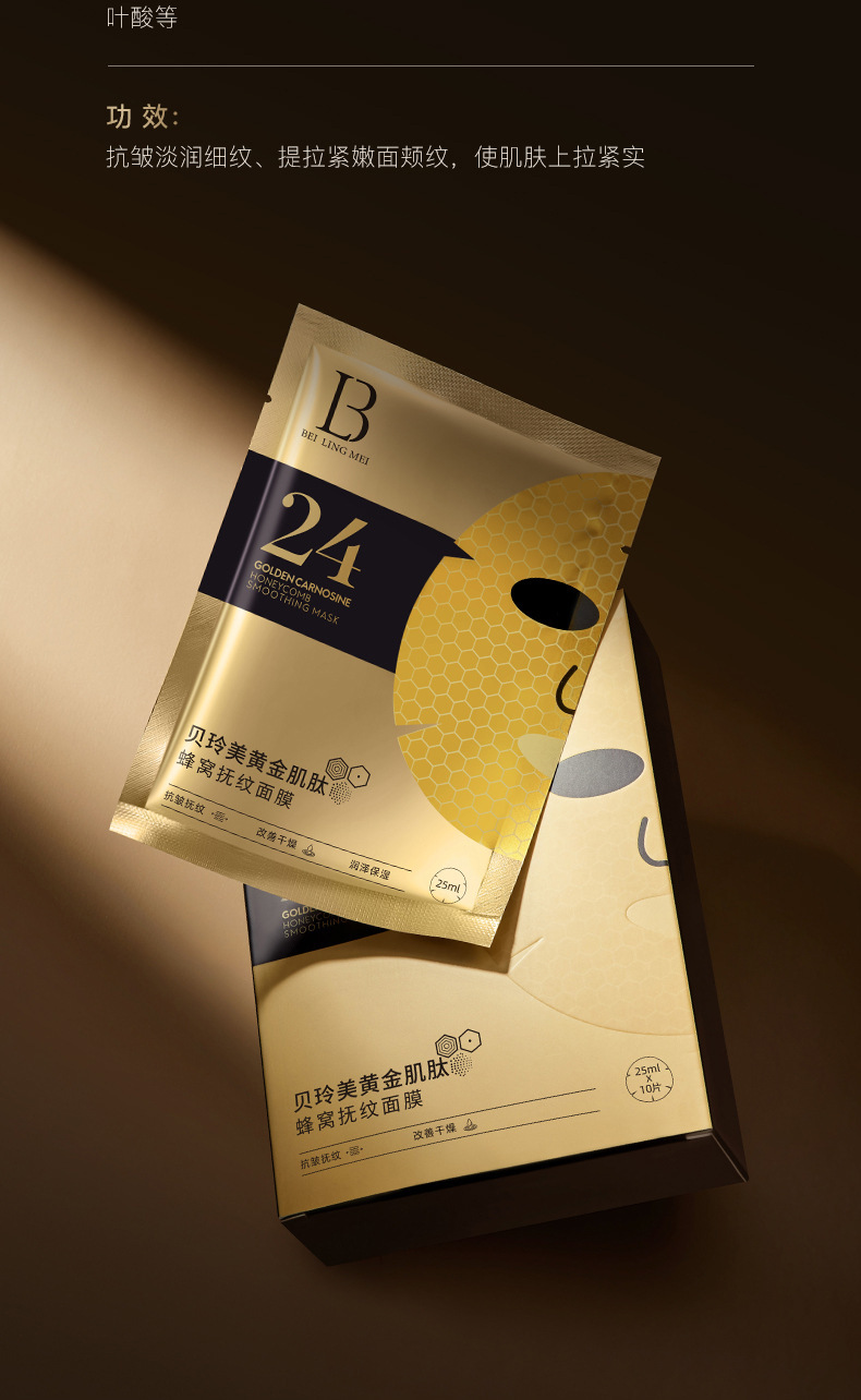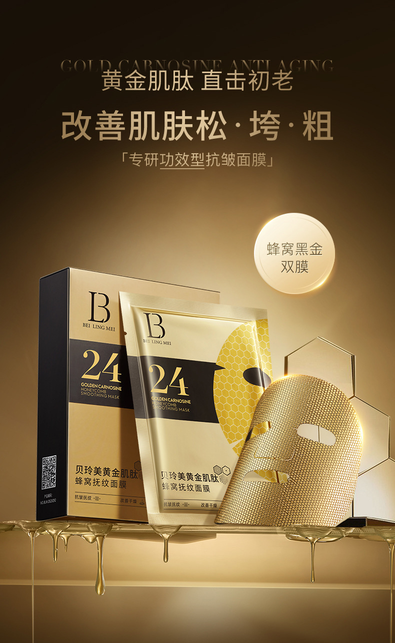 【美妆个护】-黄金肌肽蜂窝抗皱面膜补水保湿缩毛孔改善暗黄熬夜提亮面膜贴