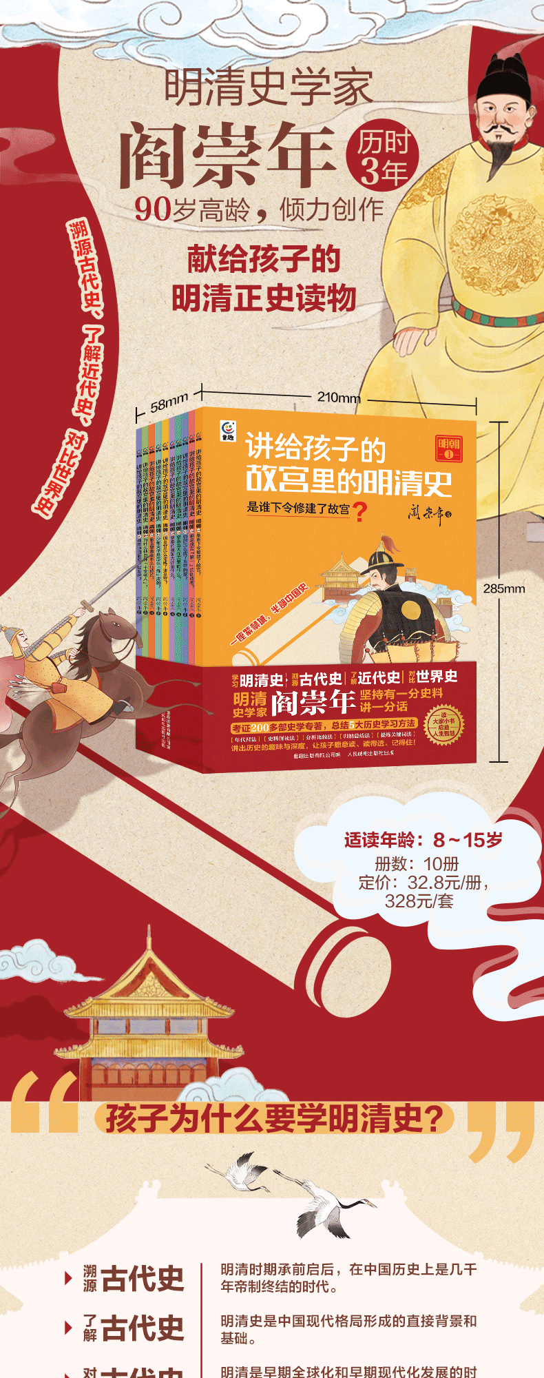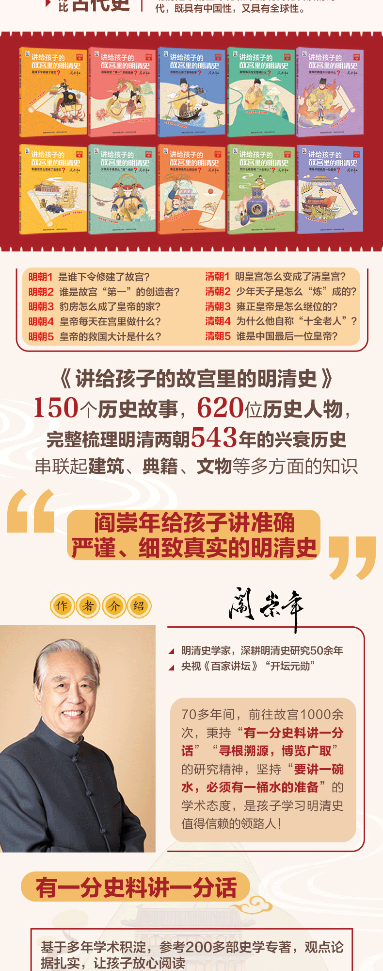 《阎崇年讲故宫里的明清史》10册,完整梳理明清两朝543年的兴衰历史,串联起建筑、典籍、文物等多方面的知识