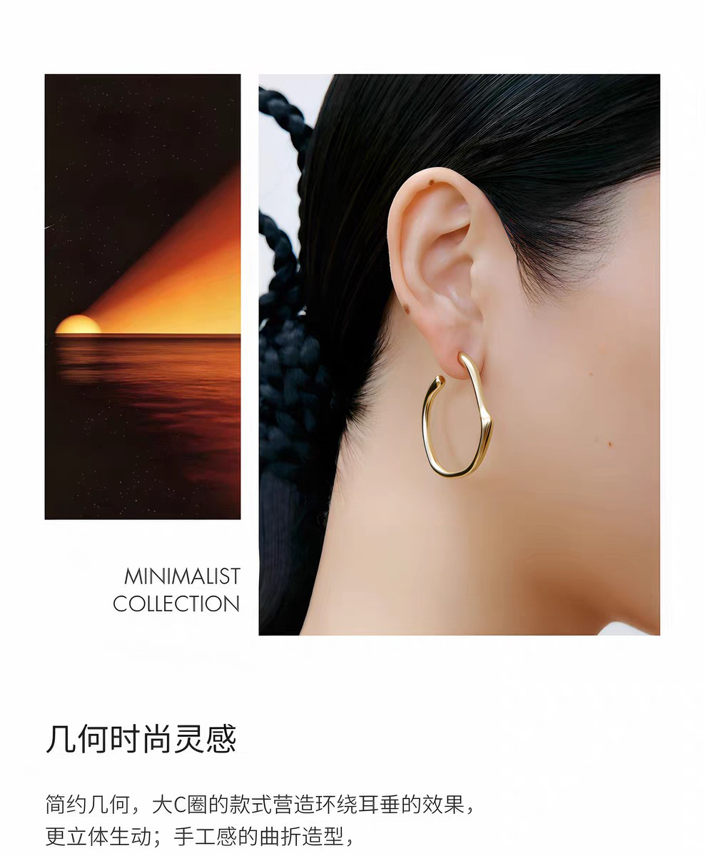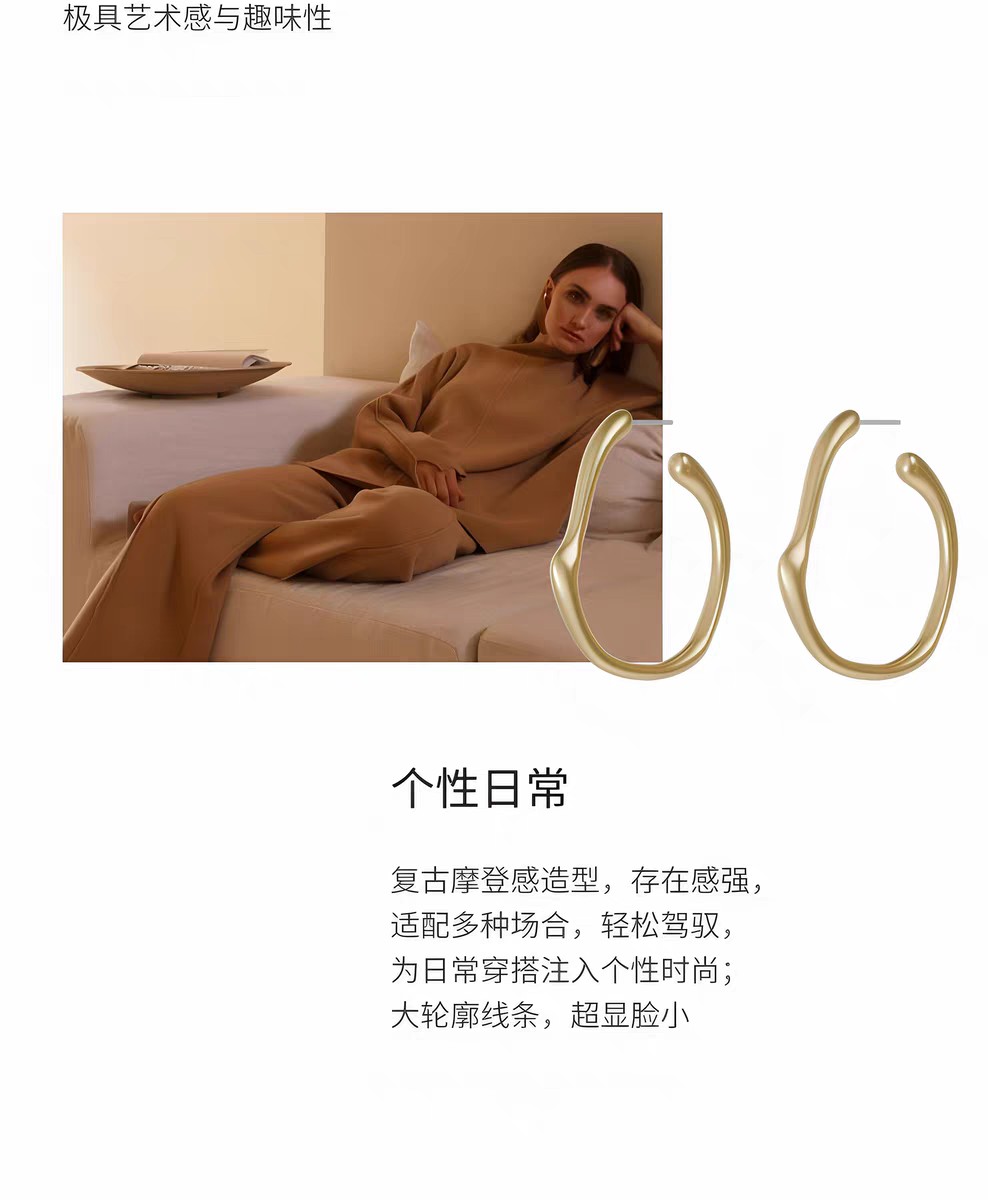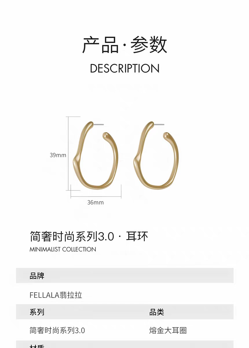 2楼「新品」Fellala/翡拉拉「简奢3.0」熔金大耳圈高级简约风耳饰货号925422101吊牌价699现价629