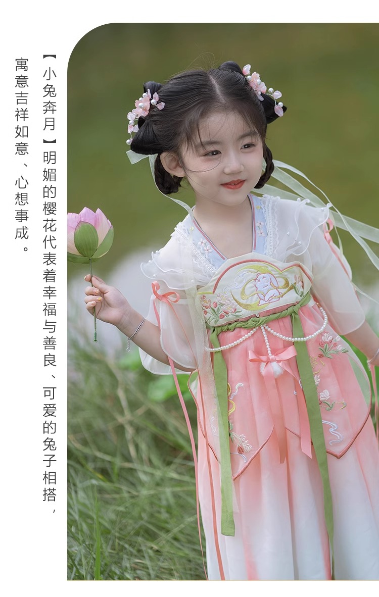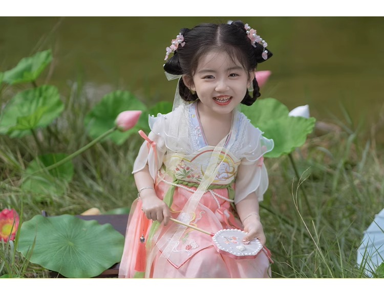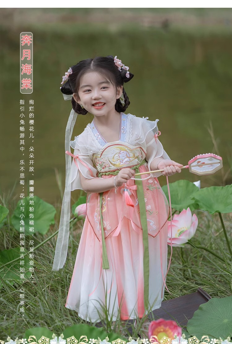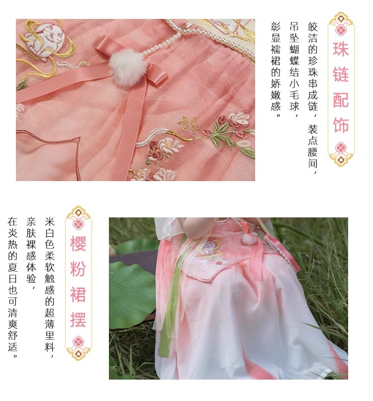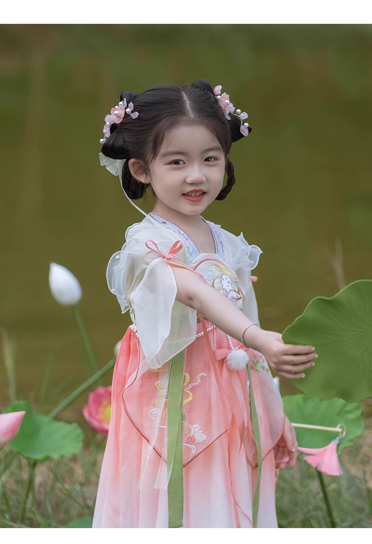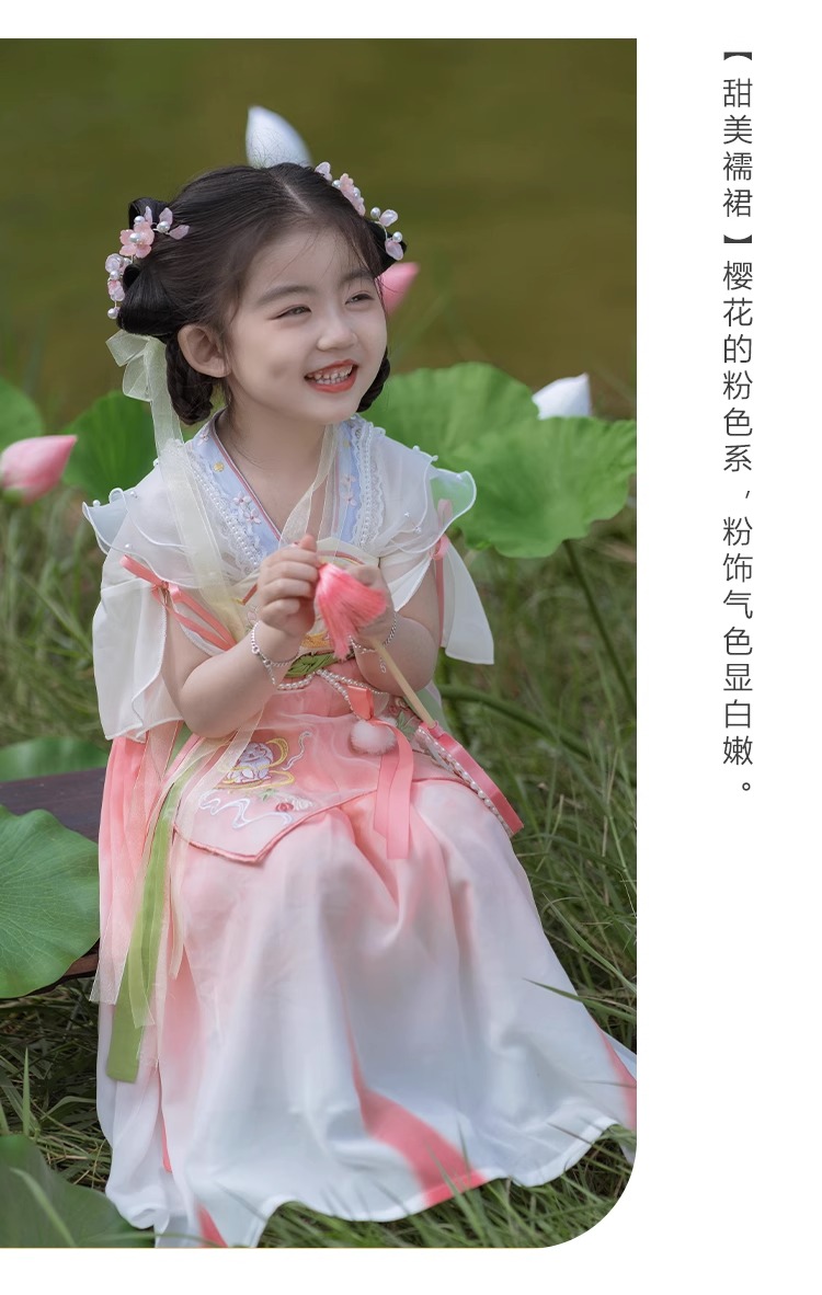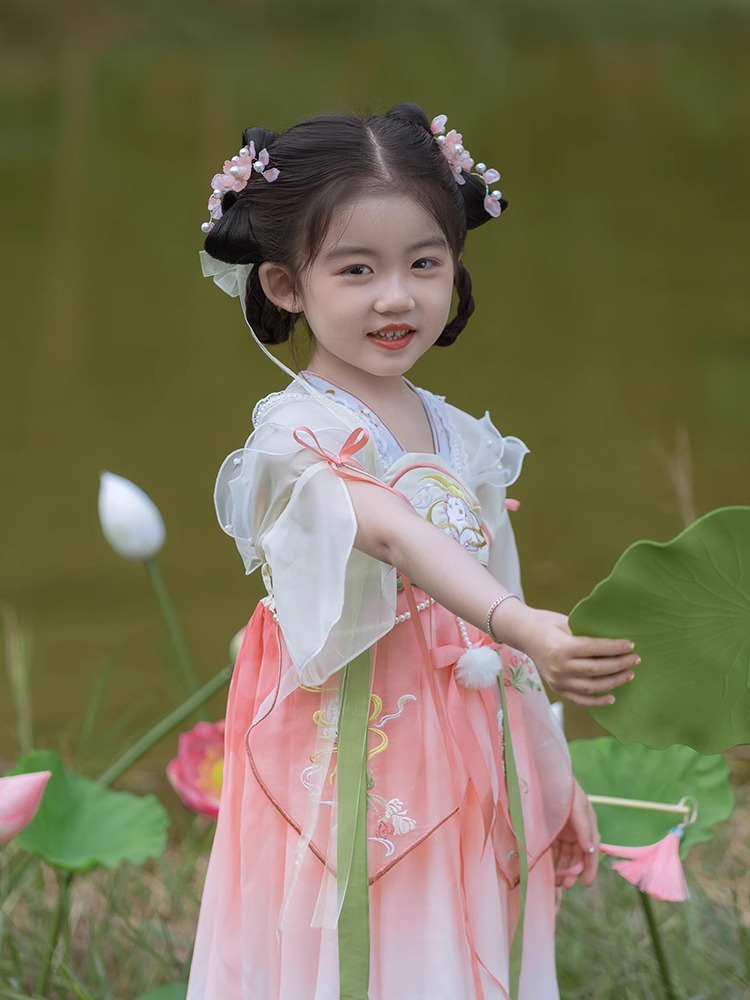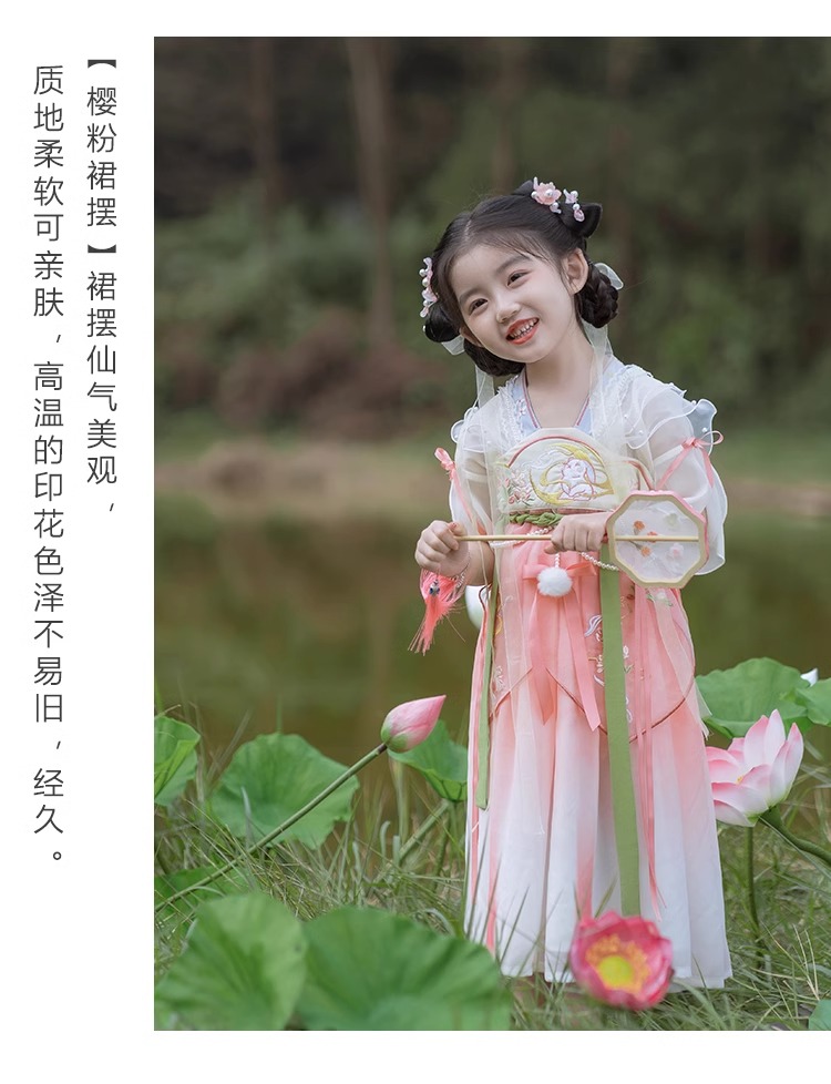 女童汉服粉色短袖古风刺绣襦裙连衣裙