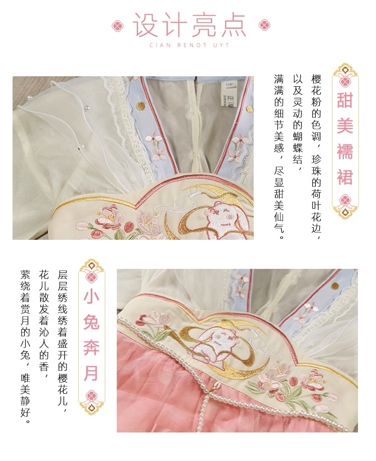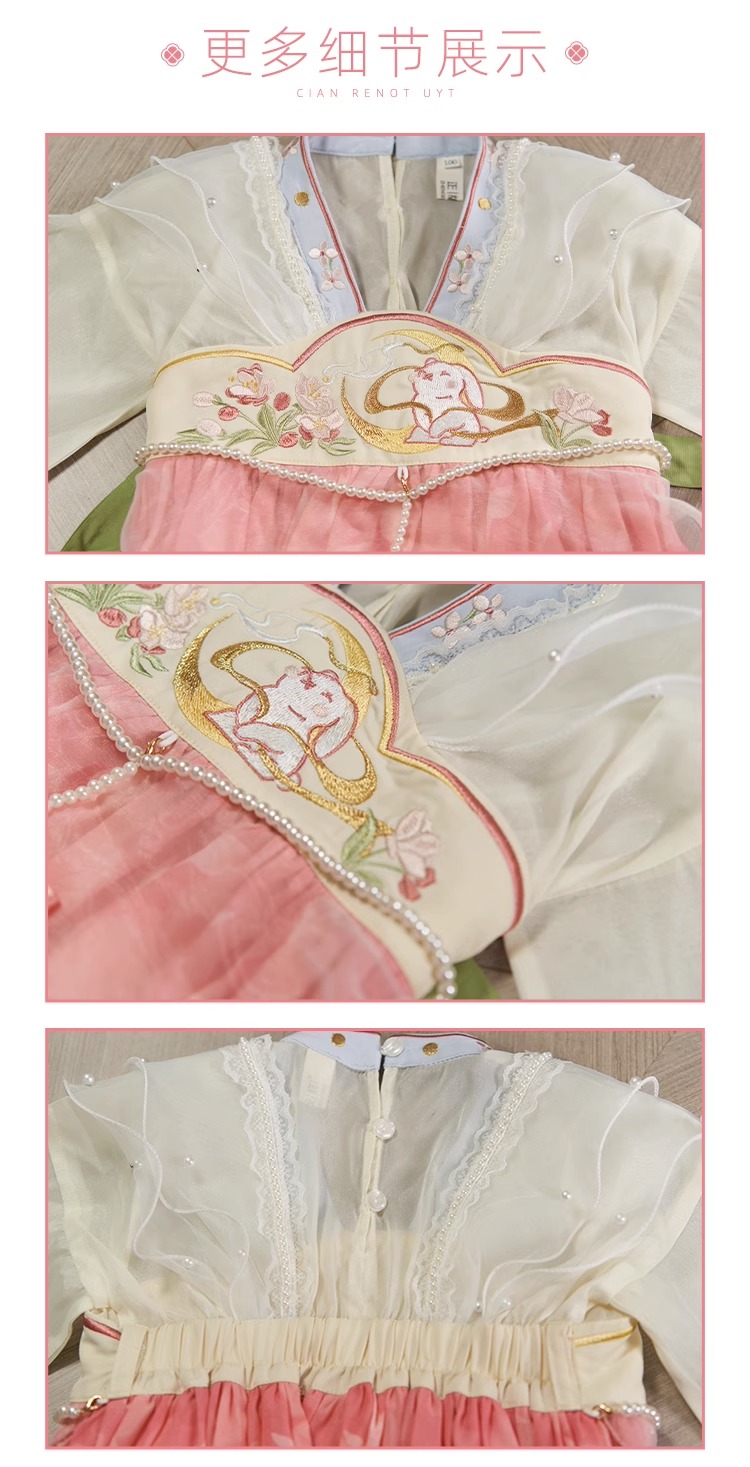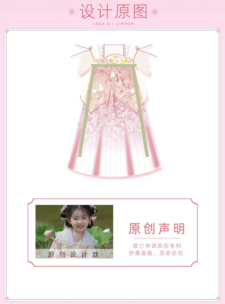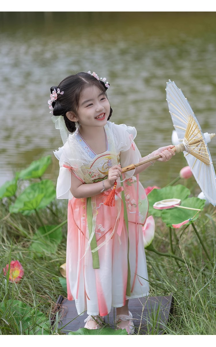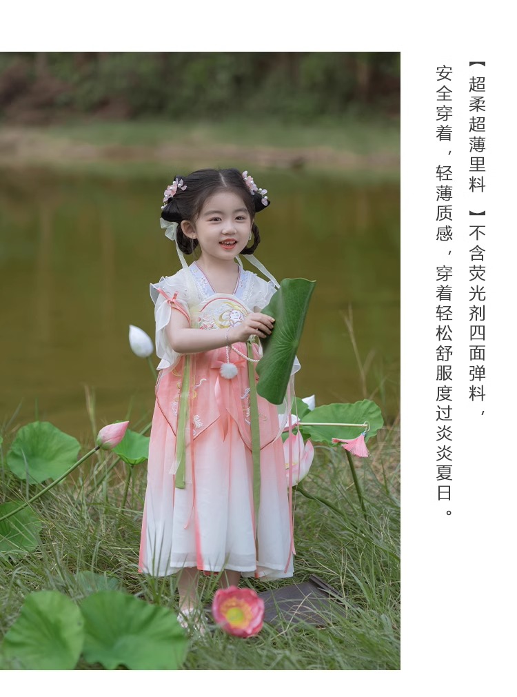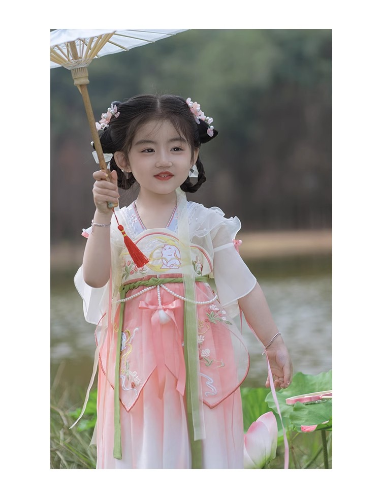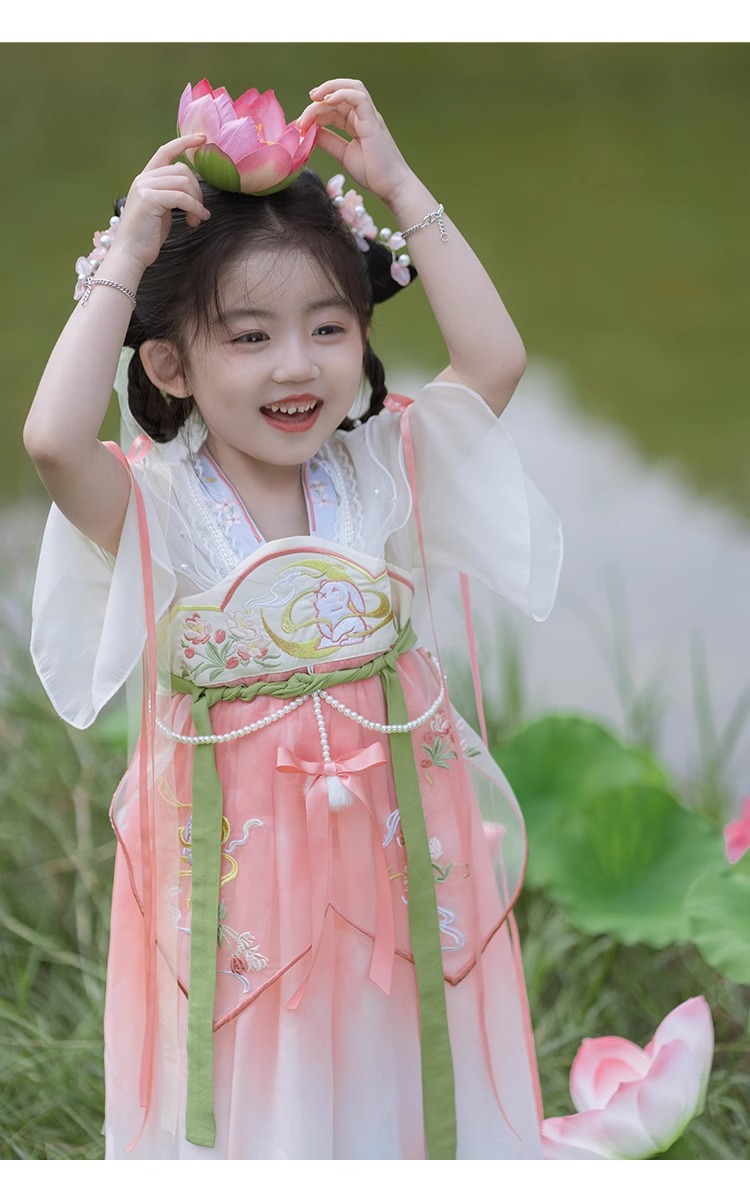 女童汉服粉色短袖古风刺绣襦裙连衣裙