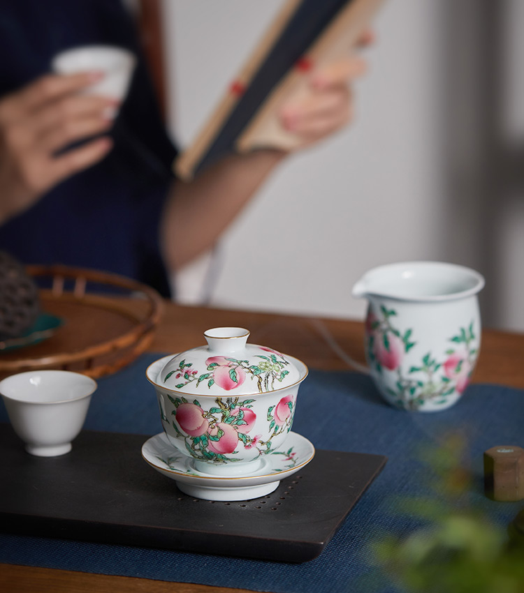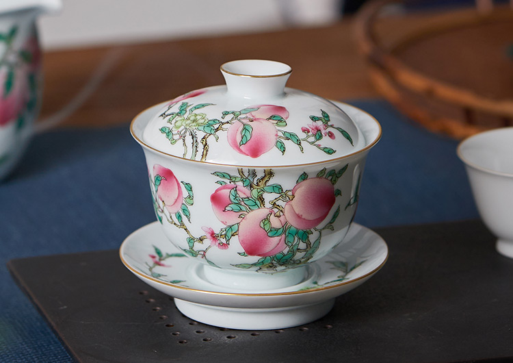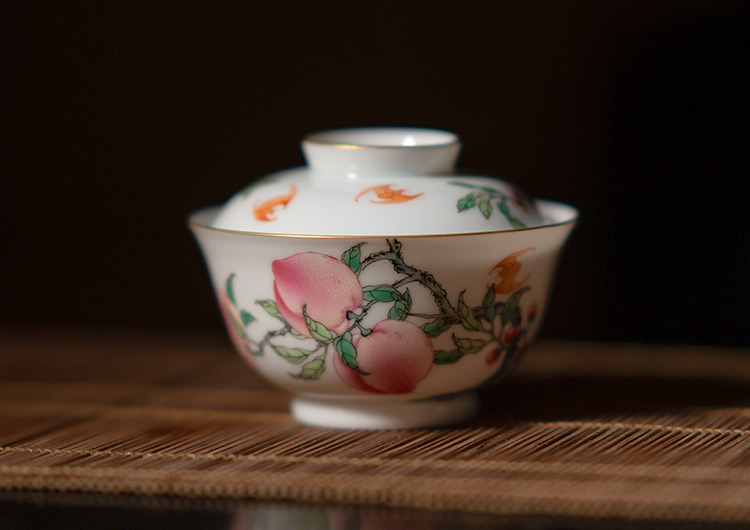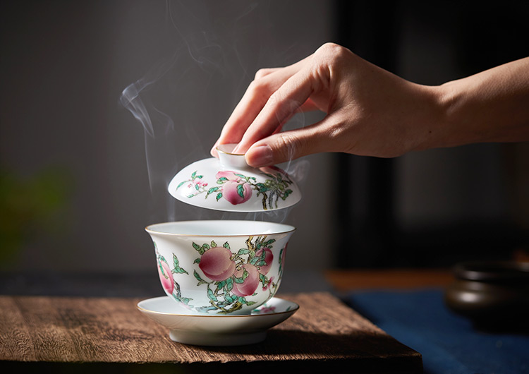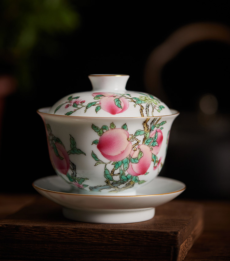 五桃寓意“福禄寿喜财”,宜搭配圆融盖碗一并使用。