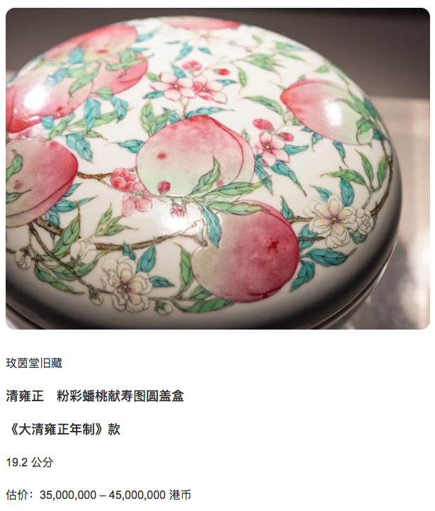 就在刚落幕的香港苏富比秋拍中国艺术珍品拍卖中,一件雍正粉彩寿桃纹的盖壶领衔!3466万港币成交。