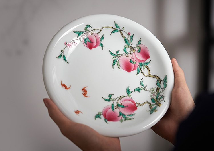 正值年底岁末,我们也想将这份福气带给各位,于是找到传承御窑厂粉彩工艺的徐窑,联手众筹定制了一批粉彩福桃系列茶器、花器。让广大瓷器爱好者,以远低于市场的价格,入手御窑级的粉彩福桃雅器。