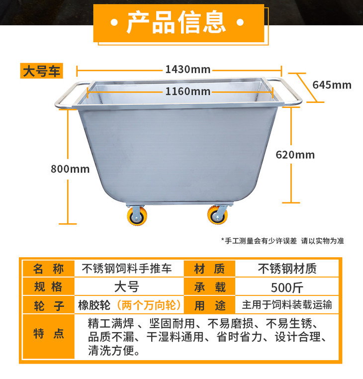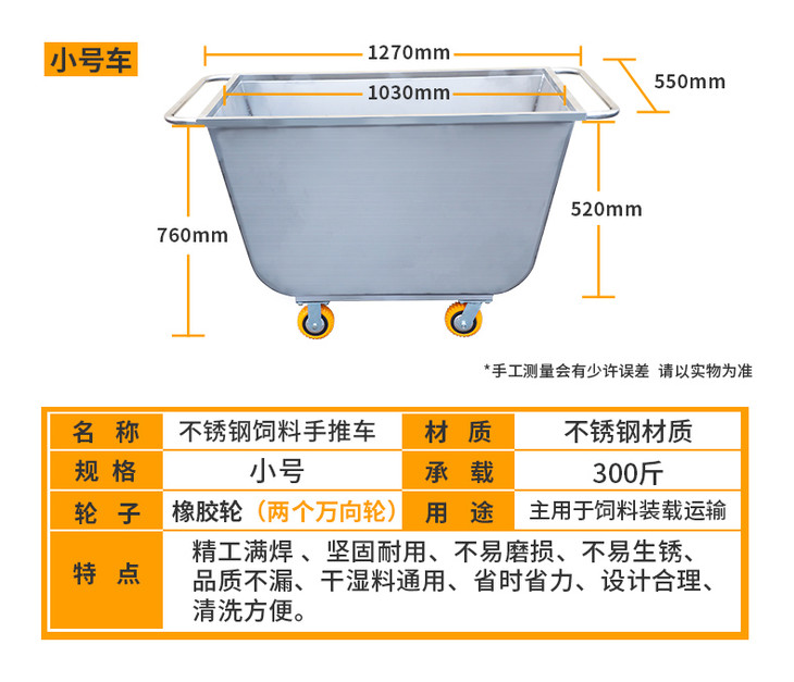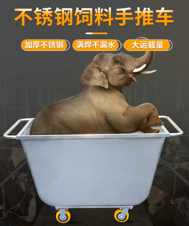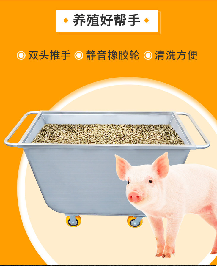 华畜 猪场不锈钢饲料手推车 养殖好帮手 大运载量 双头推手 静音橡胶轮 清洗方便