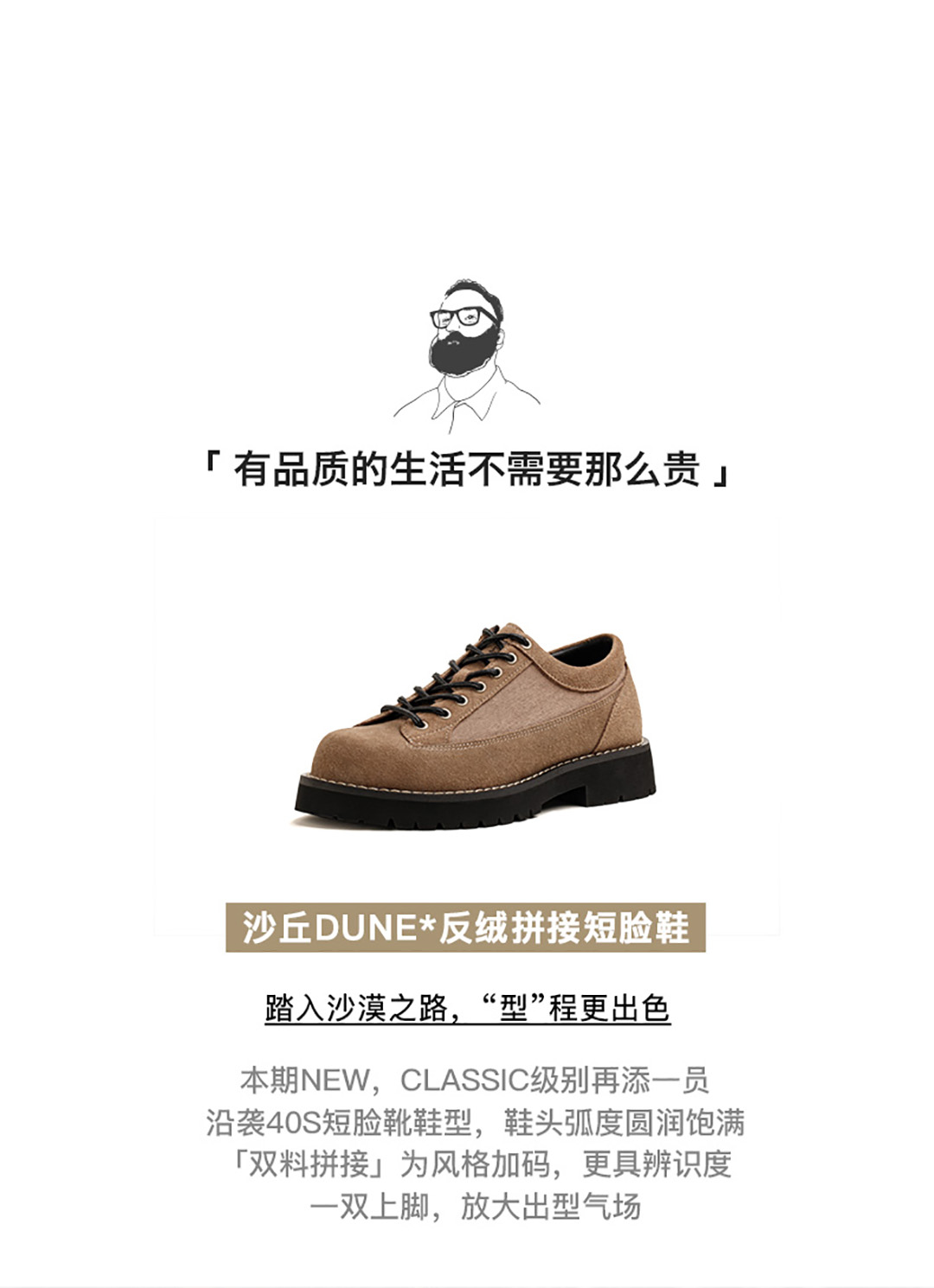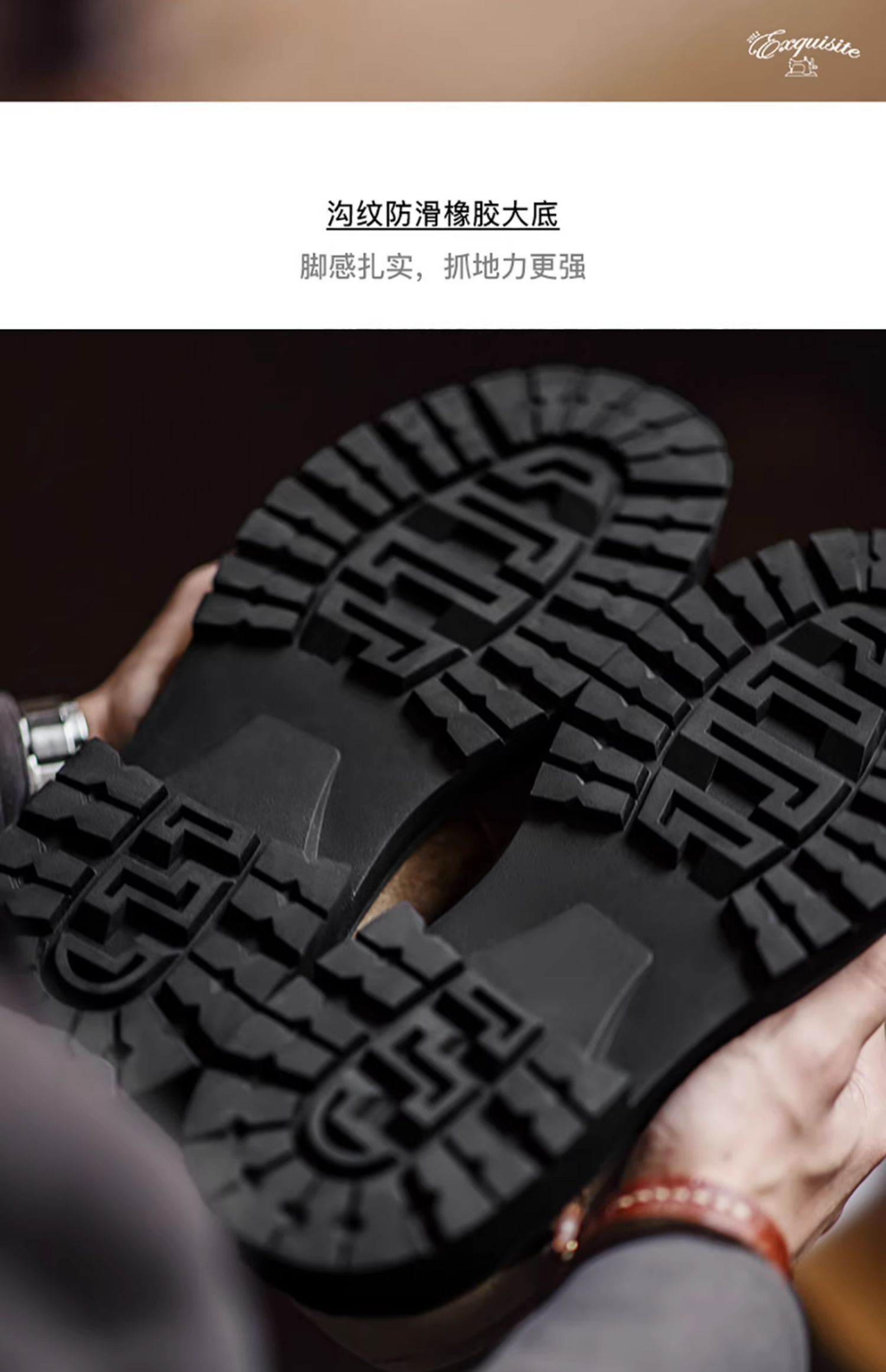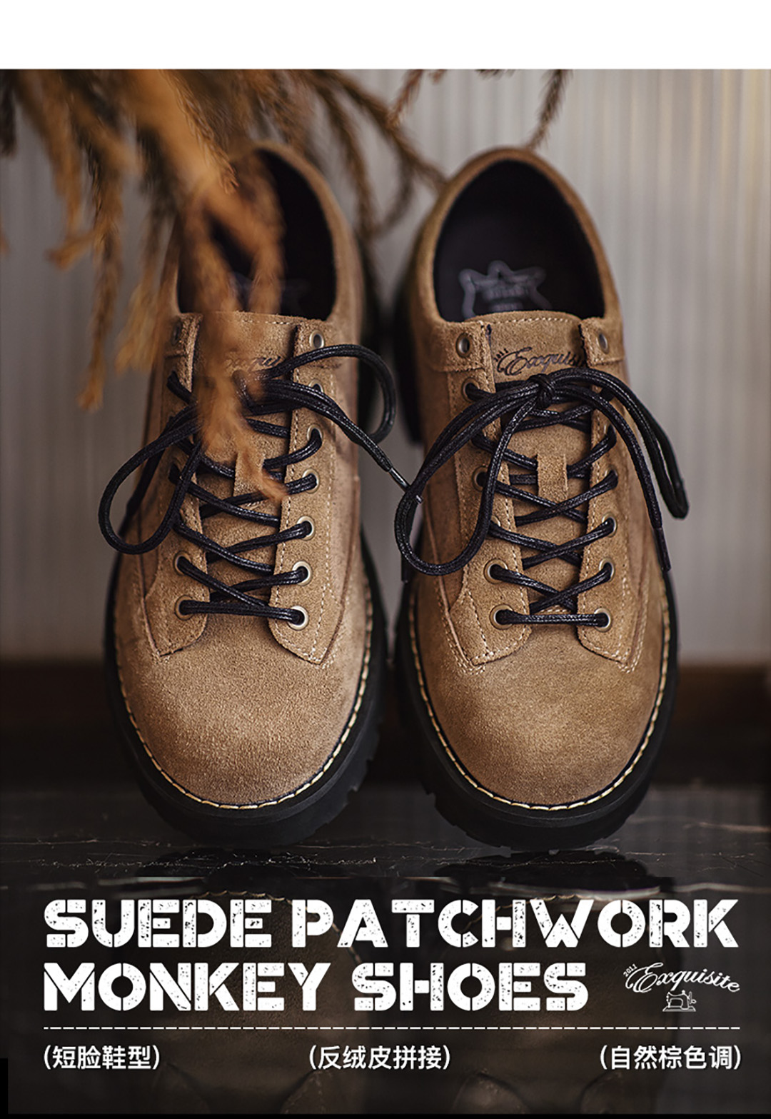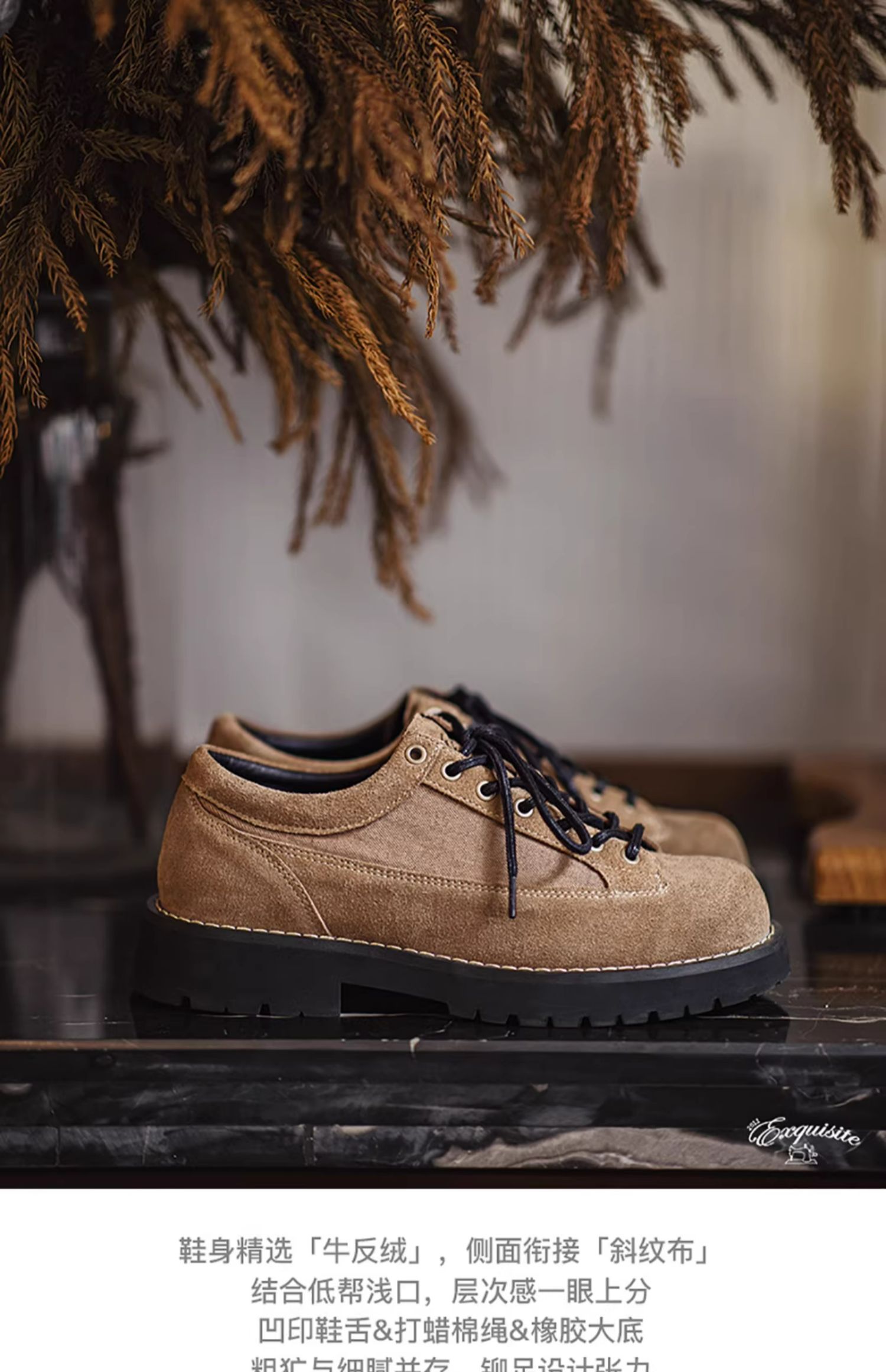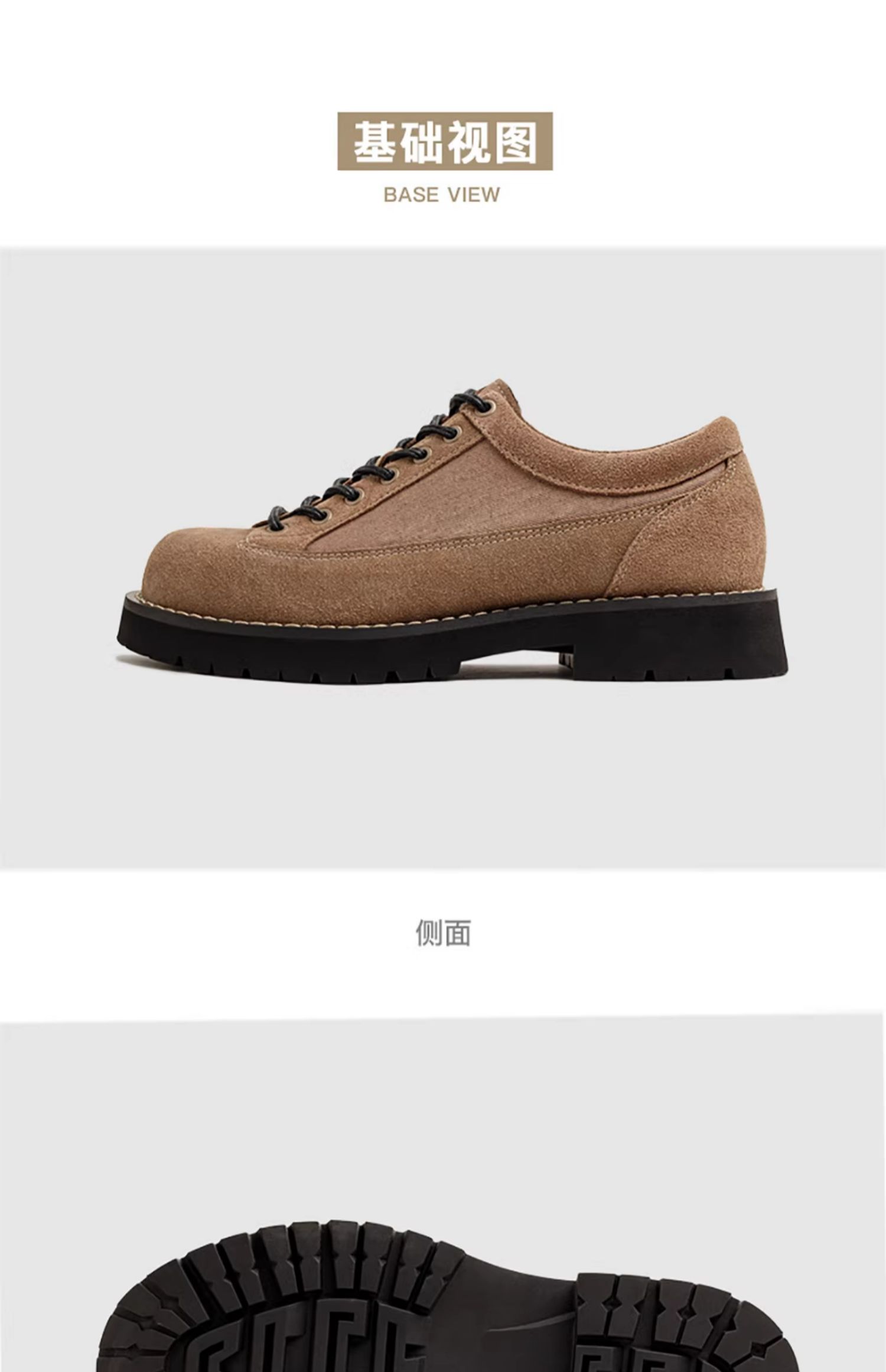 马登沙丘短脸鞋男冬季新款厚底低帮圆头休闲皮鞋美式复古工装鞋