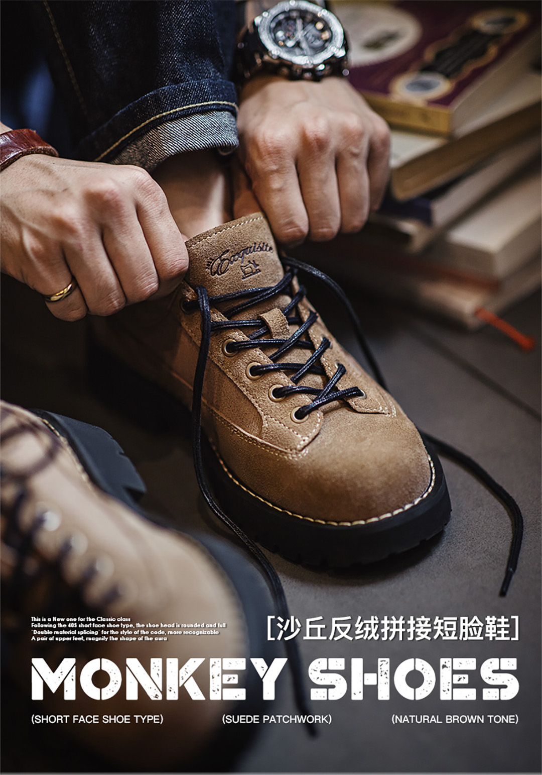 【马登男鞋】工装靴复古中帮美式沙漠靴棕色休闲真皮短靴子英伦风高帮马丁靴