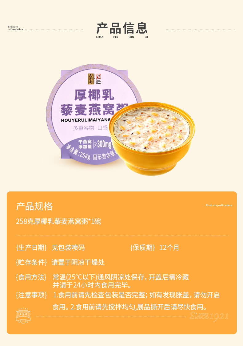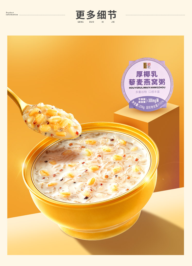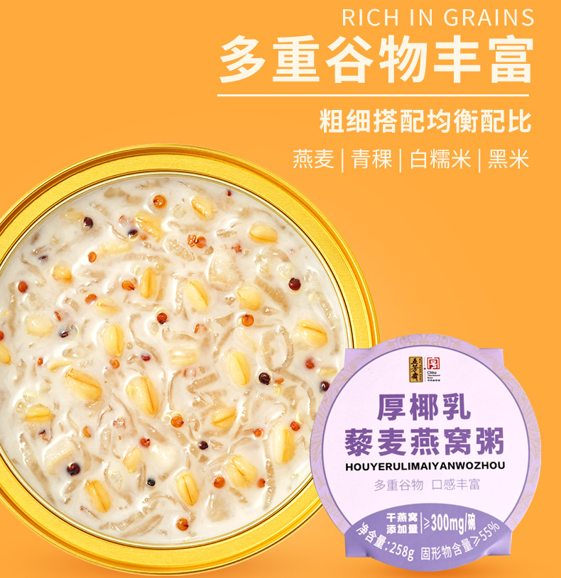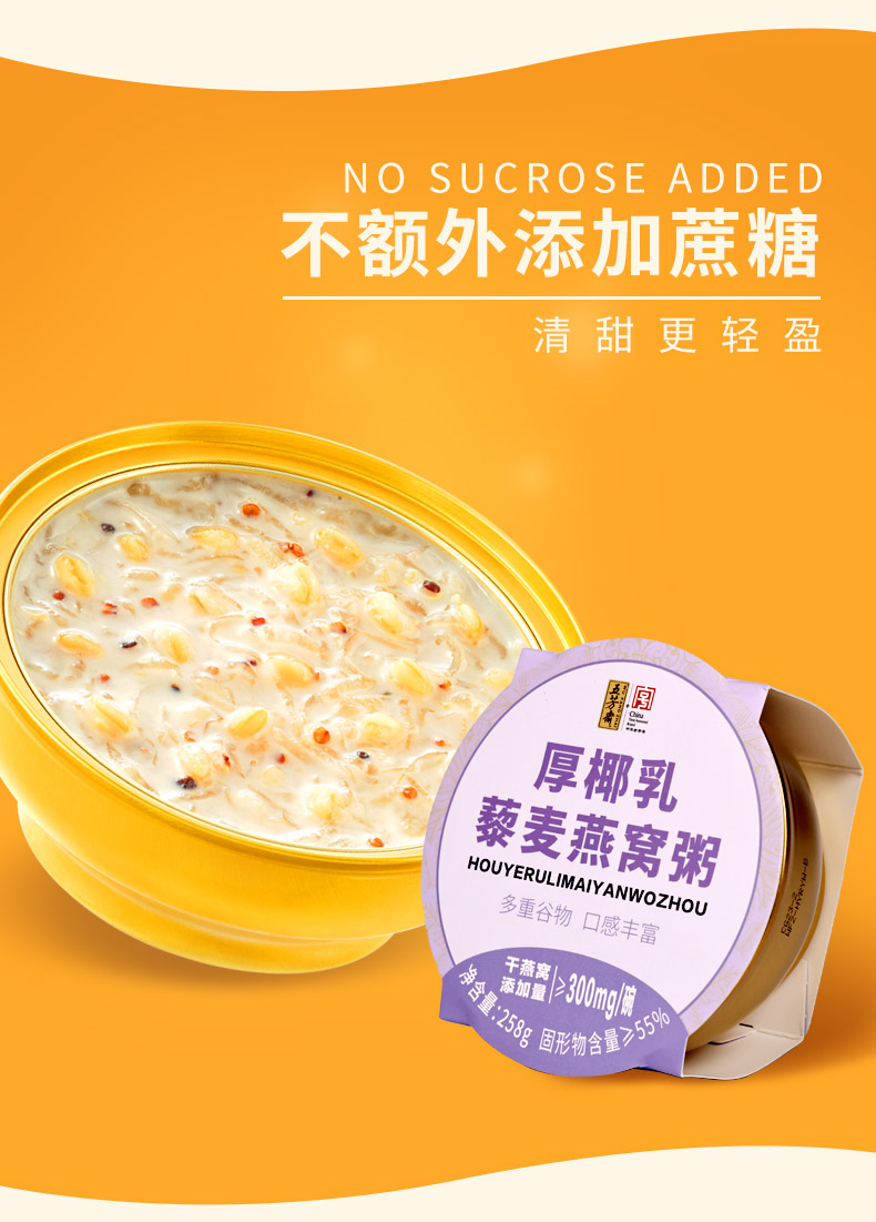 五芳斋 厚椰乳藜麦燕窝粥 椰香浓郁、藜麦软糯,燕窝丝滑开盖即饮,低脂饱腹 早八人/宝妈省事选择 258g*1