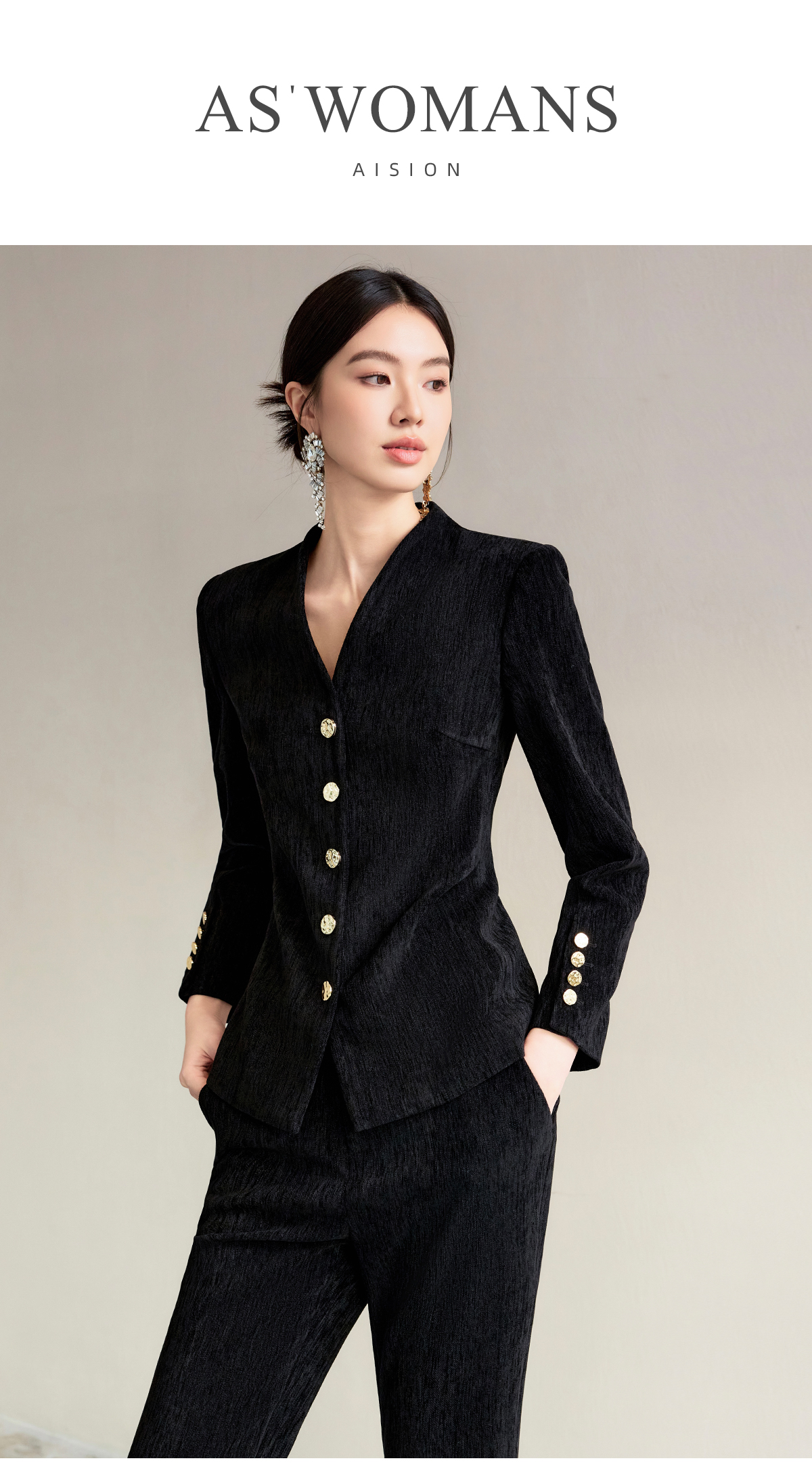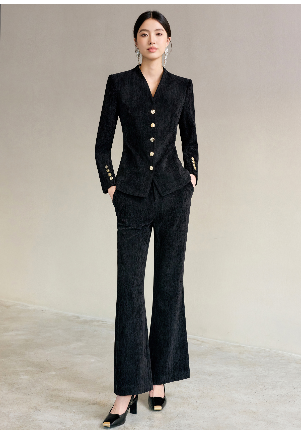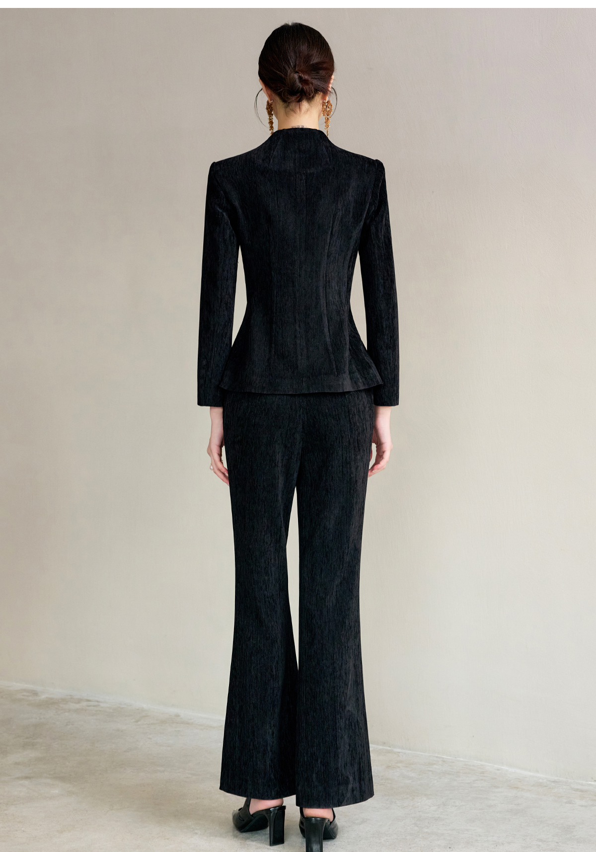 艾尚臣时尚套装女早春新款精致优雅高端炸街修身上衣微喇裤两件套