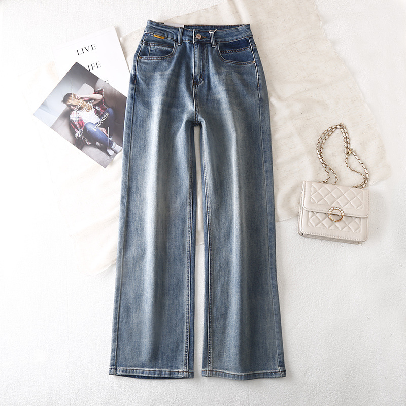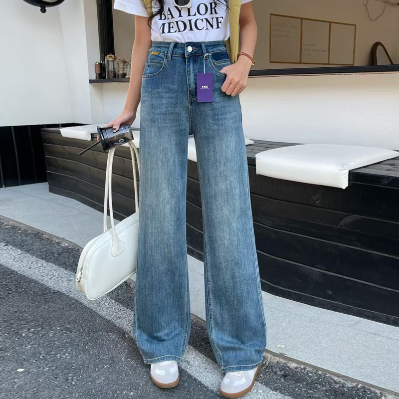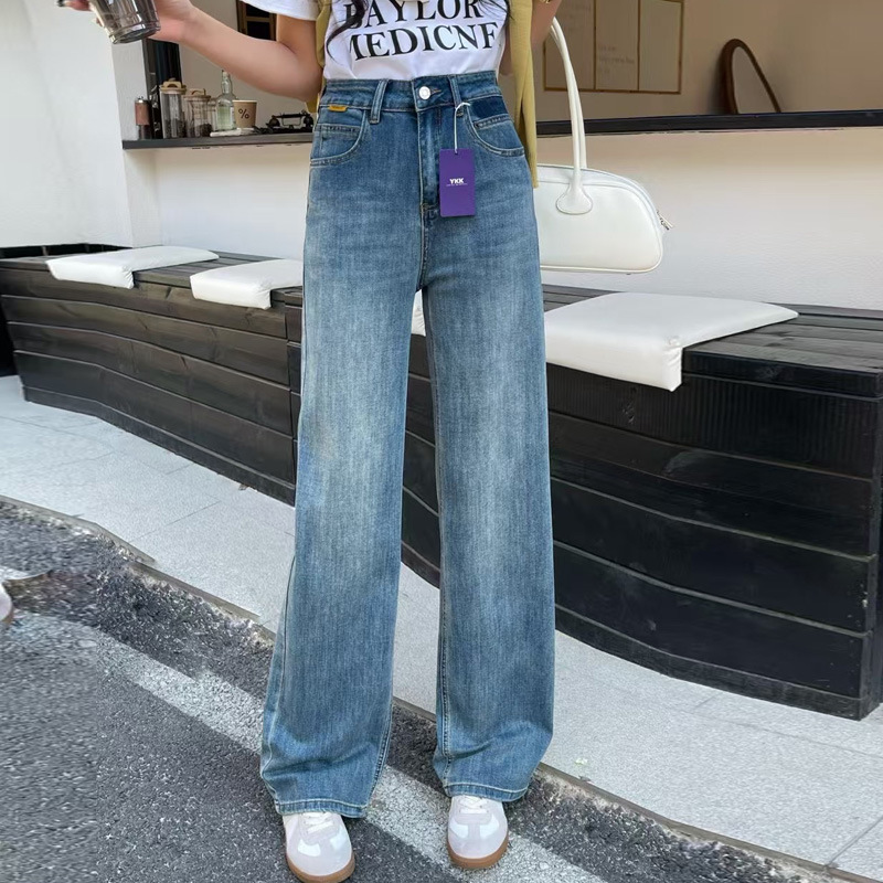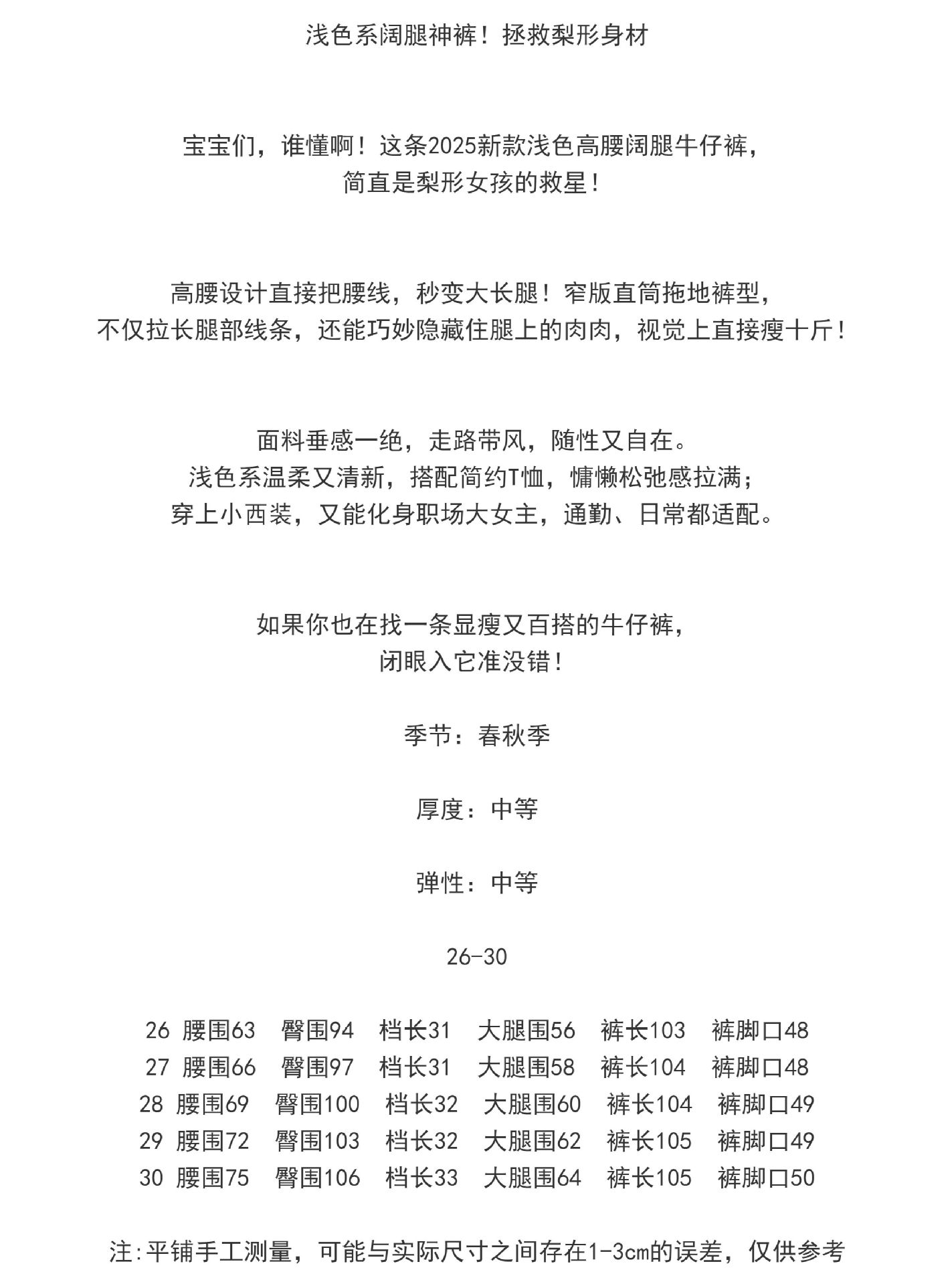 高级感浅色阔腿牛仔裤!女款2025春季新款高腰宽松垂感拖地直筒长裤子!