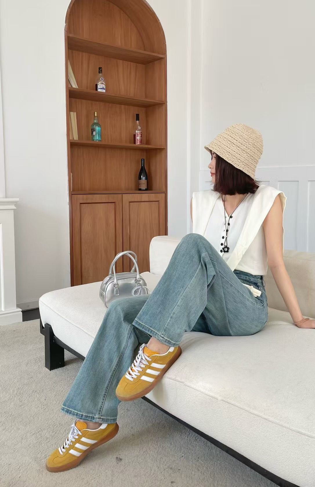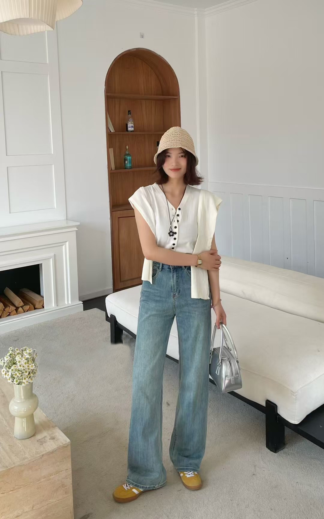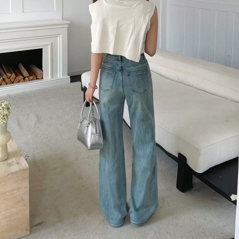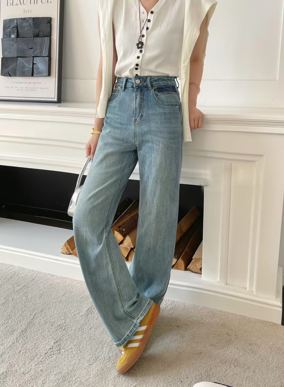 高级感浅色阔腿牛仔裤!女款2025春季新款高腰宽松垂感拖地直筒长裤子!