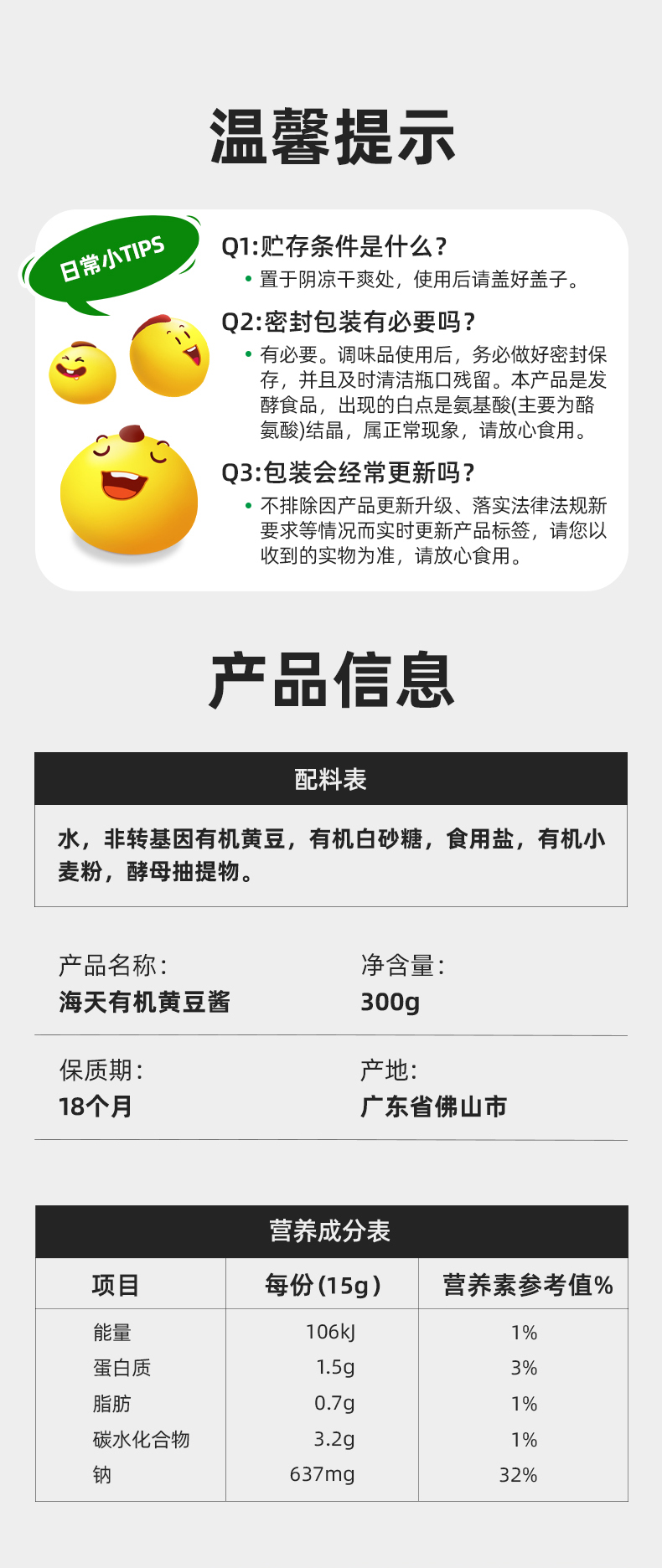 海天有机黄豆酱300g 怎么拌都好吃 挤挤装