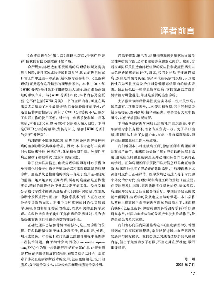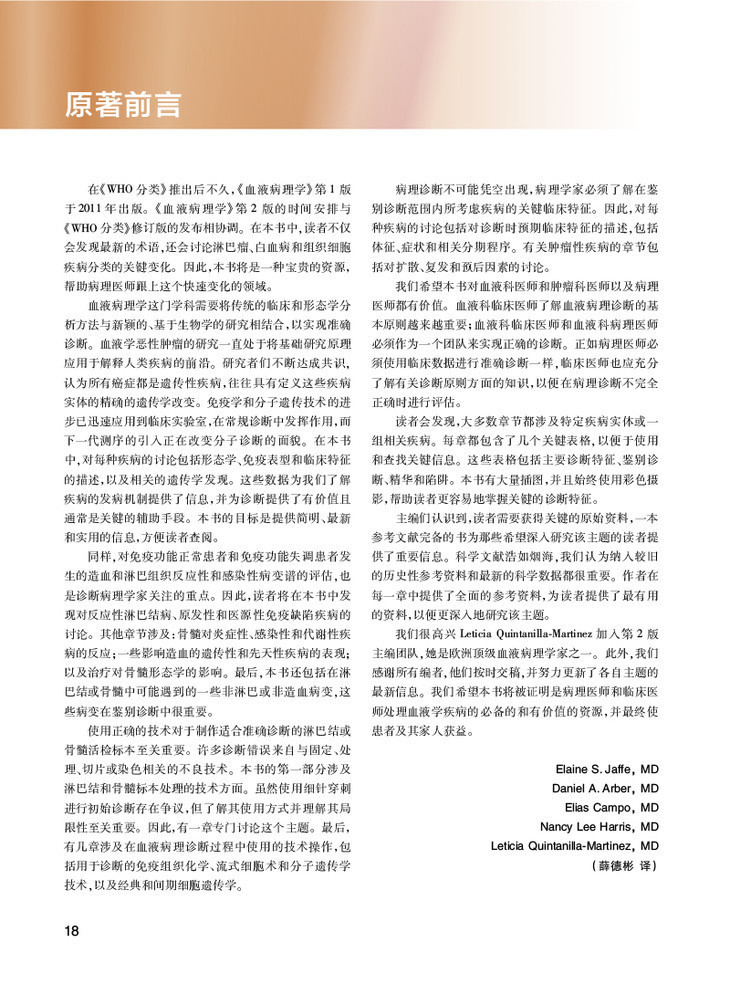 4.本书还涵盖了血液病理学的热点专题,如淋巴瘤和白血病的最新遗传学进展,骨髓增生异常综合征的新命名,灰区淋巴瘤的新进展,等等。