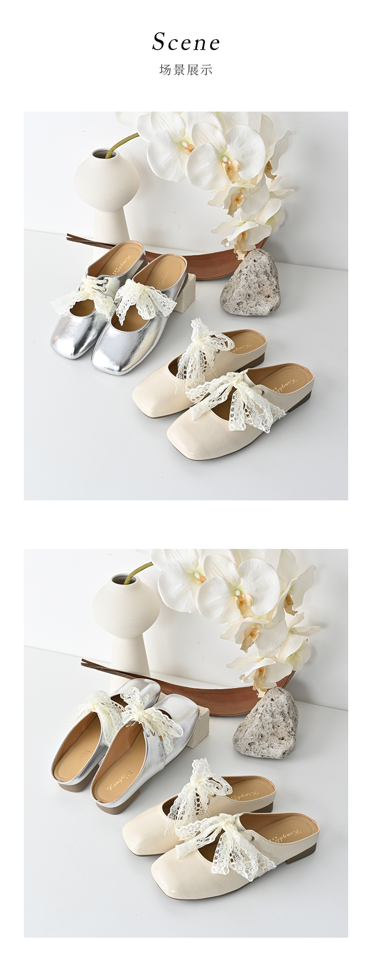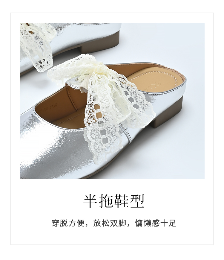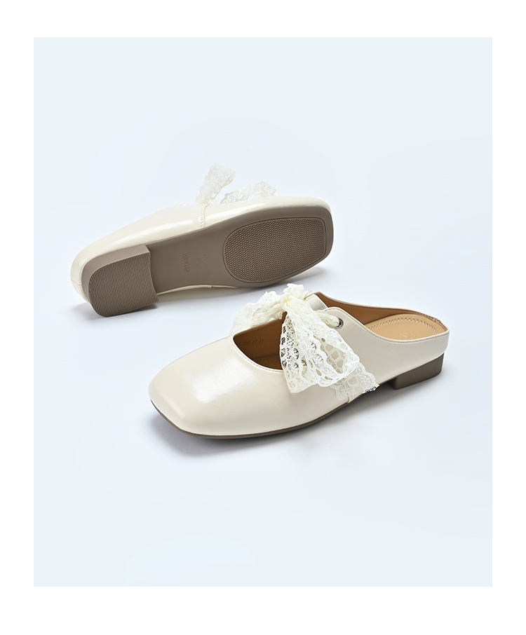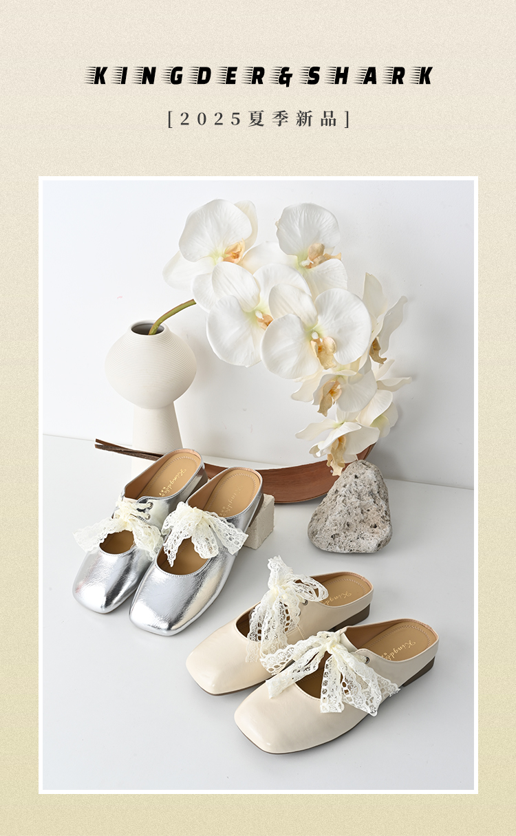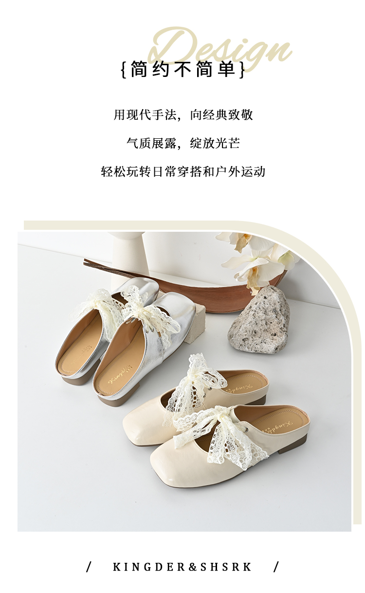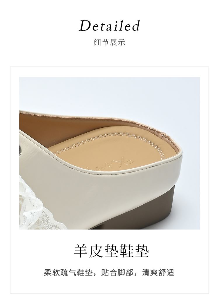 经典鲨2025年夏季新品复古方头一脚蹬温柔蕾丝系带半拖鞋女KW89-529081