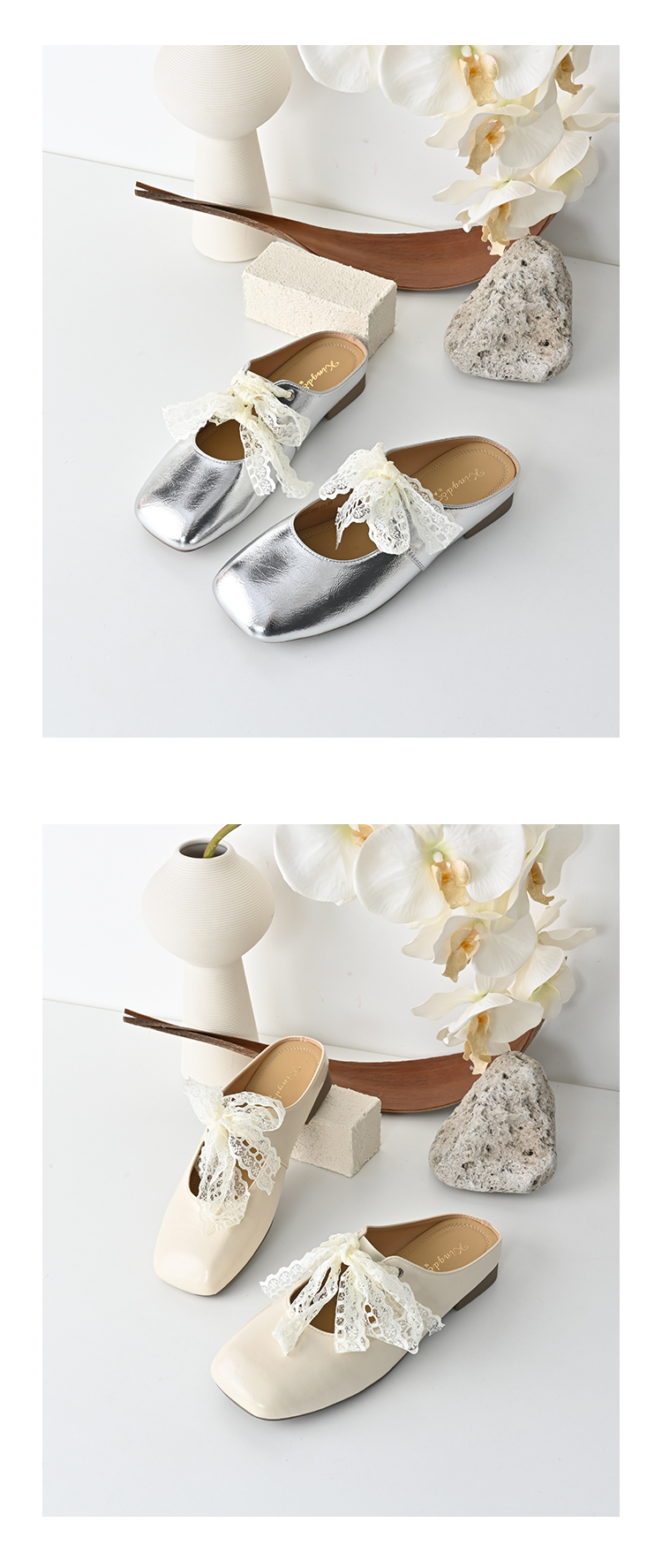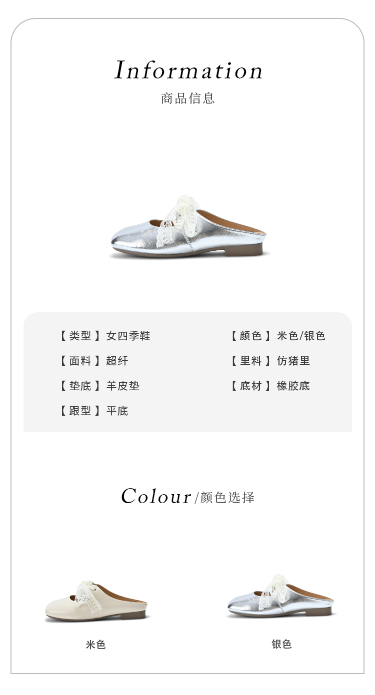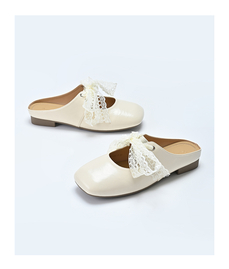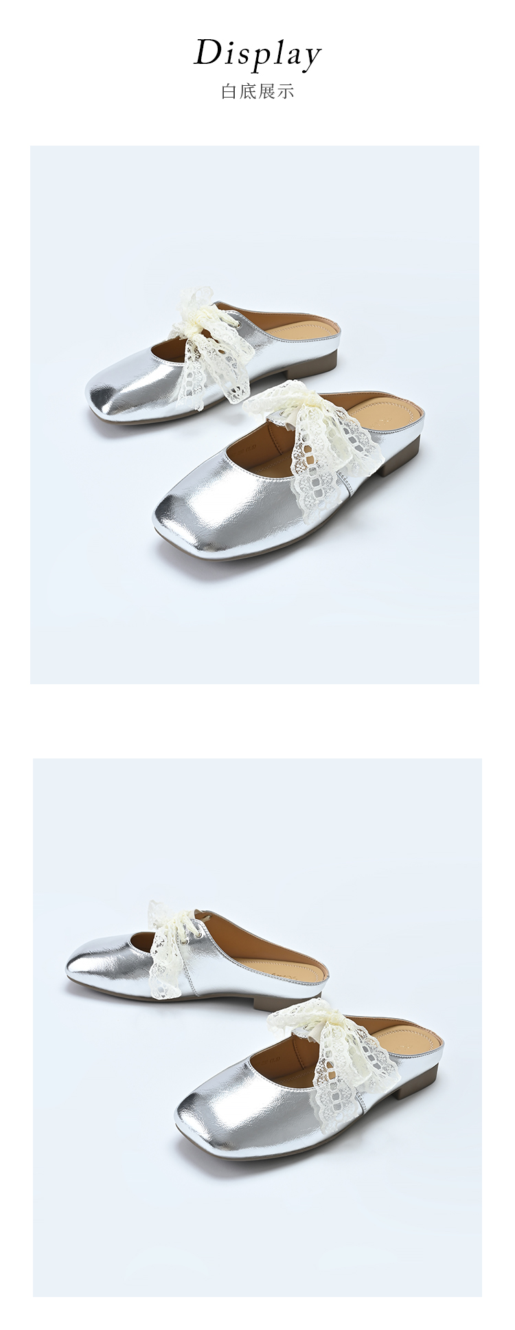 经典鲨2025年夏季新品复古方头一脚蹬温柔蕾丝系带半拖鞋女KW89-529081