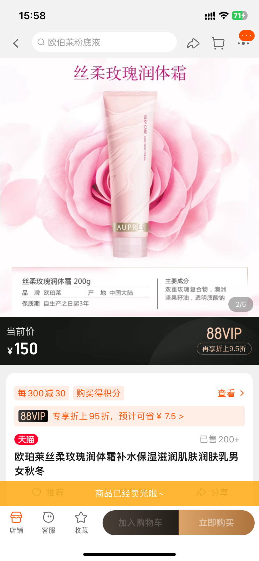 一般贸易 保真保正假一赔十!!超大一只资生堂 欧珀莱丝柔玫瑰润体露身体乳200g 保质期到27.05月