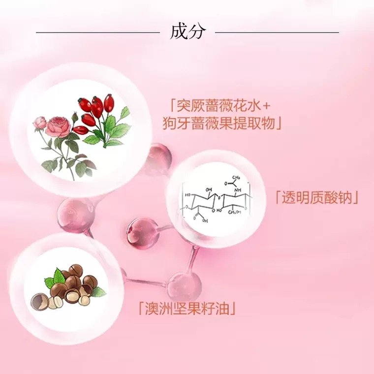 天然保加利亚改瑰、野致瑰提取物、夏威夷果油提取物、蚕丝蛋自成分