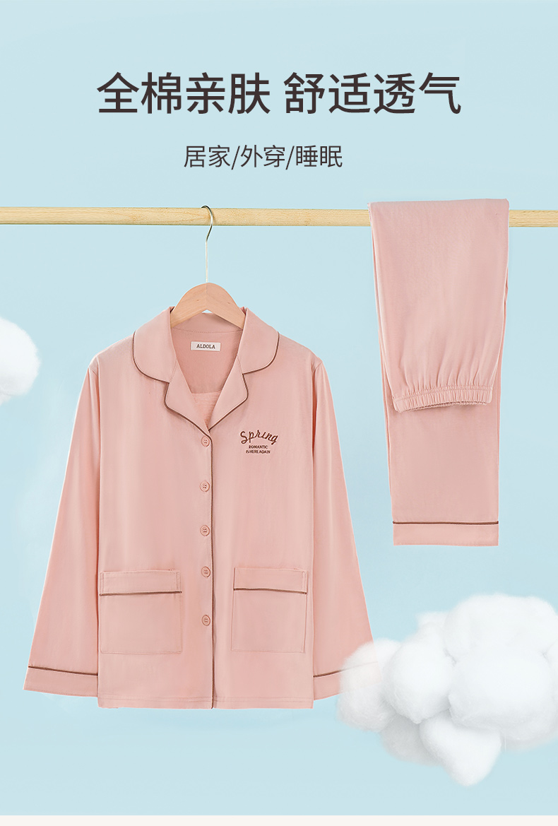 雅黛丽睡衣女春秋款2023新款全棉高级感家居服可外穿长袖长裤套装