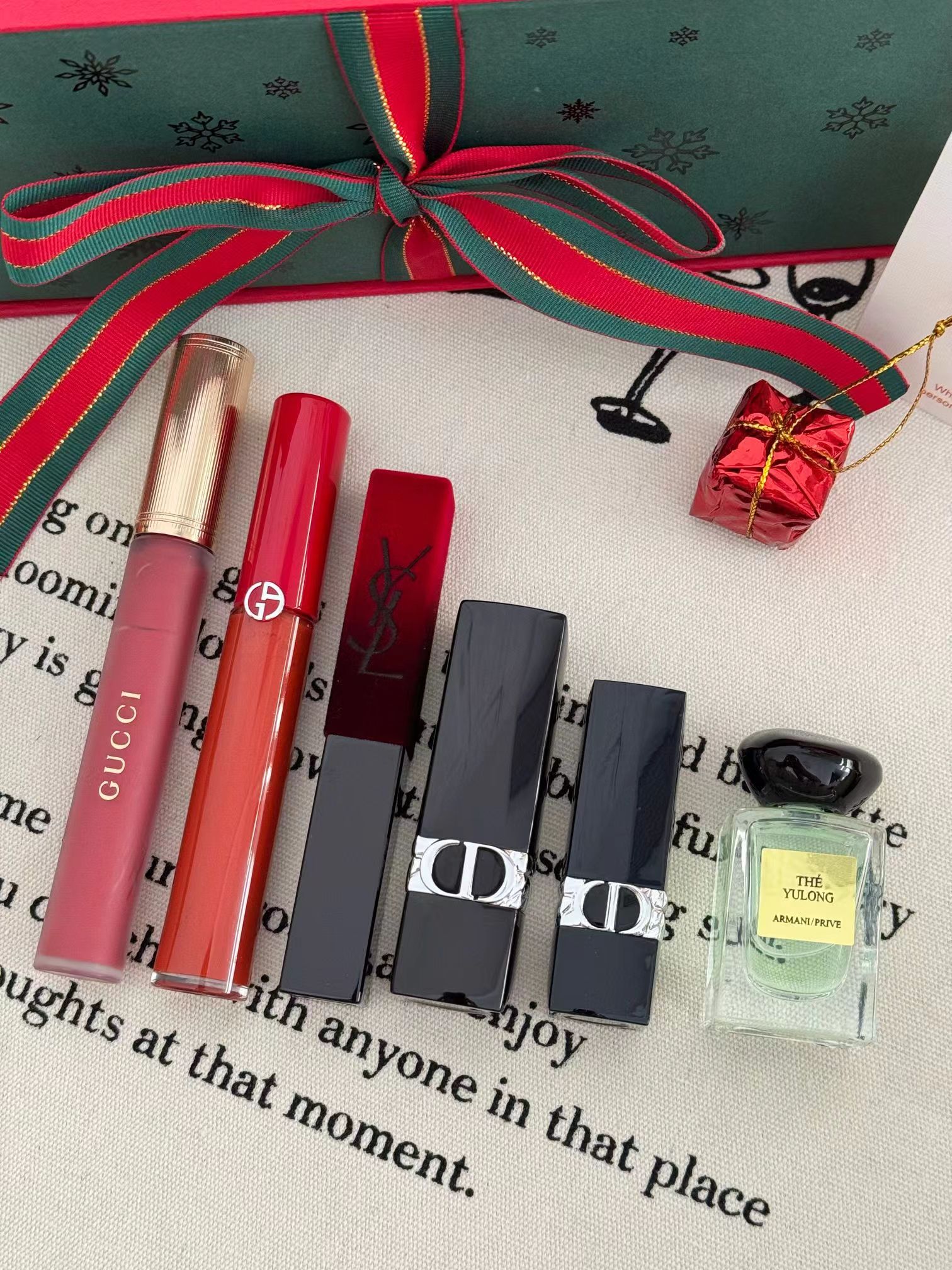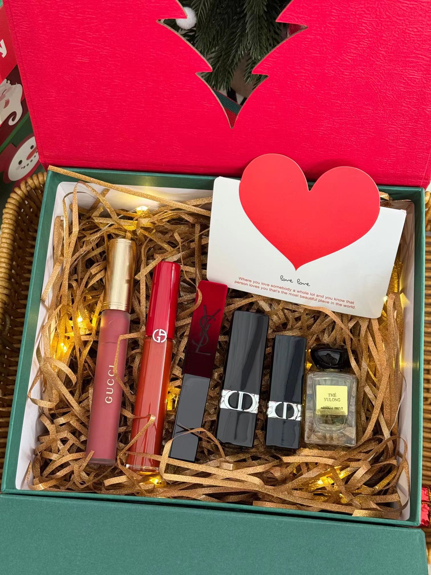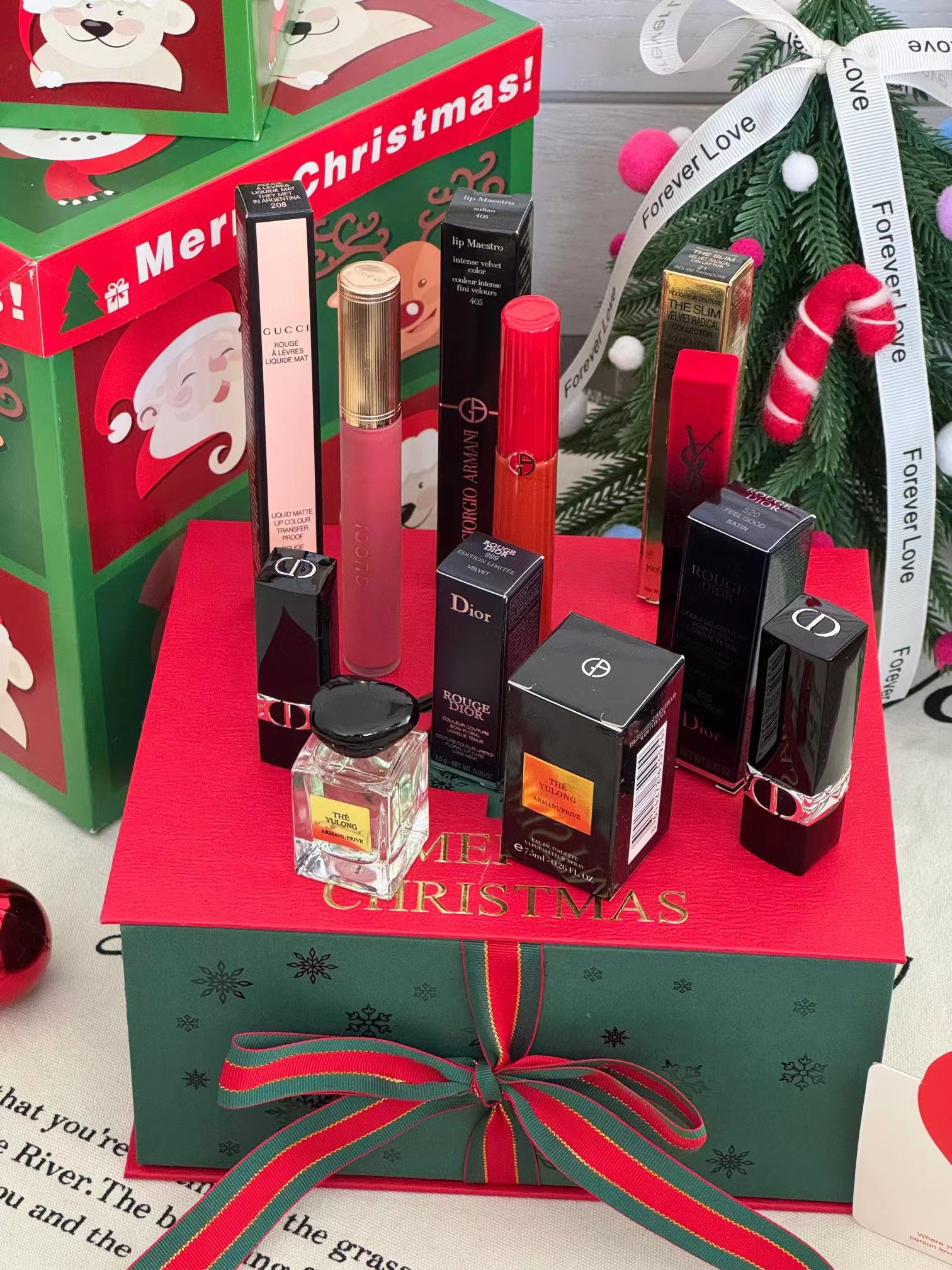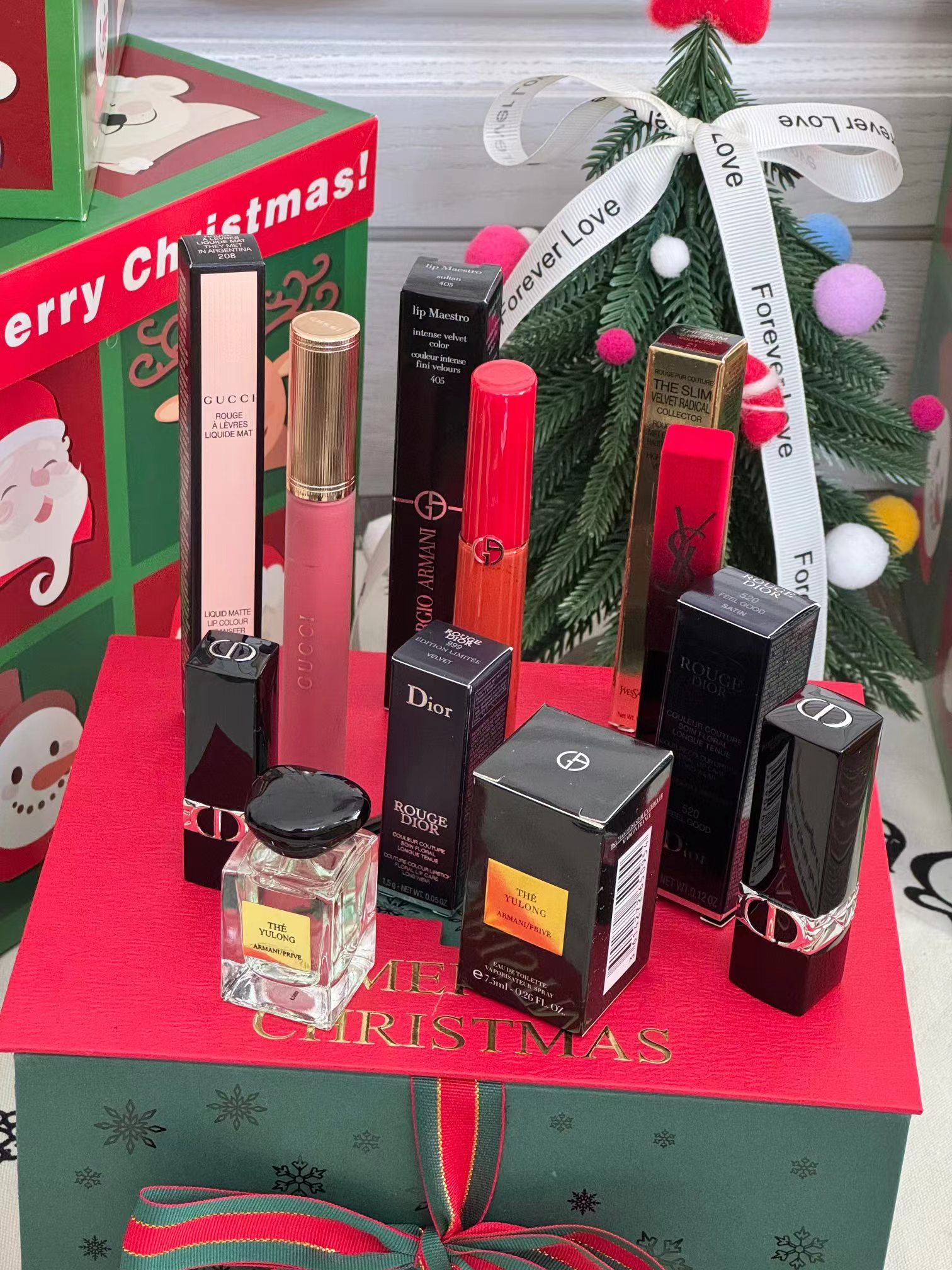 (配手提袋 打包箱)#礼物送的好叫过节,礼物送不好叫渡劫,直男务必点进来看看#【圣诞树蝴蝶丝带礼盒】内含:唇釉#203色号+唇釉#405色号+Y红丝绒口红#21色号+蓝金口红#520色号+圣诞款口红#999+玉龙茶香水小样7.5ml+贺卡+灯串+拉菲草!没有哪个女人不期待节日,在特别的日子里,挑选礼物总是费尽心思,让收到礼物的瞬间,仪式感油然而生,成为记忆中熠熠生辉的美好时刻~满满的礼物仪式感,有哪个小姐姐能抗拒呢?货品实拍 口红膏体放大拍摄???品质放心??放心购这份精心搭配的礼盒,装满了宠爱与用心,开盖即是惊艳!礼物很小,但‘爱你’这件事,很大!!送人大气,自用超值,炒鸡体面!逆T礼盒,闭眼抢!就一批十来盒,抢到就是赚到!