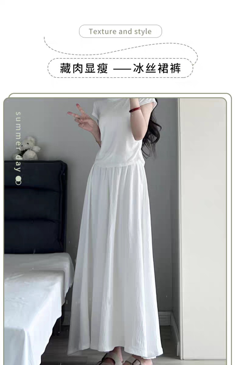 【垂顺显瘦❗冰丝百褶裙】夏季尝鲜新穿搭,出街回头率满满,好穿不挑人,百搭亲肤舒适,夏季薄款新款高腰醋酸褶皱a字大摆中长裙L
