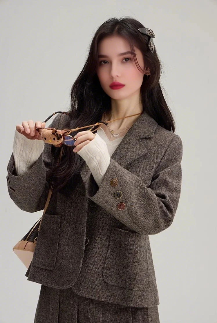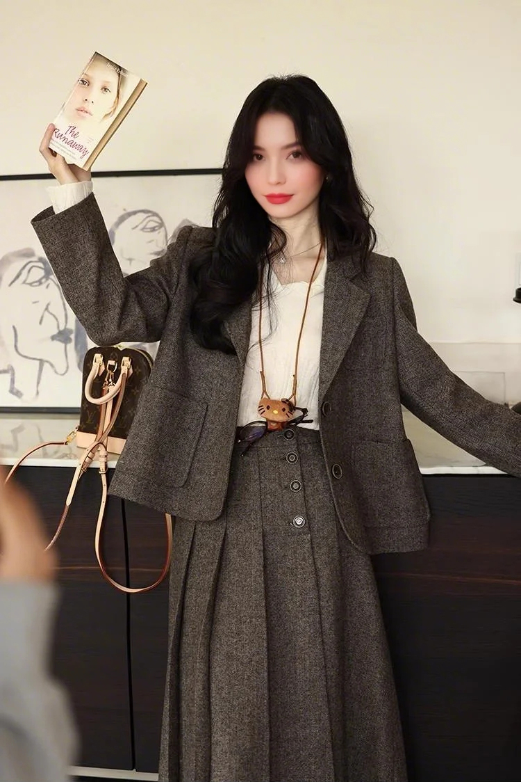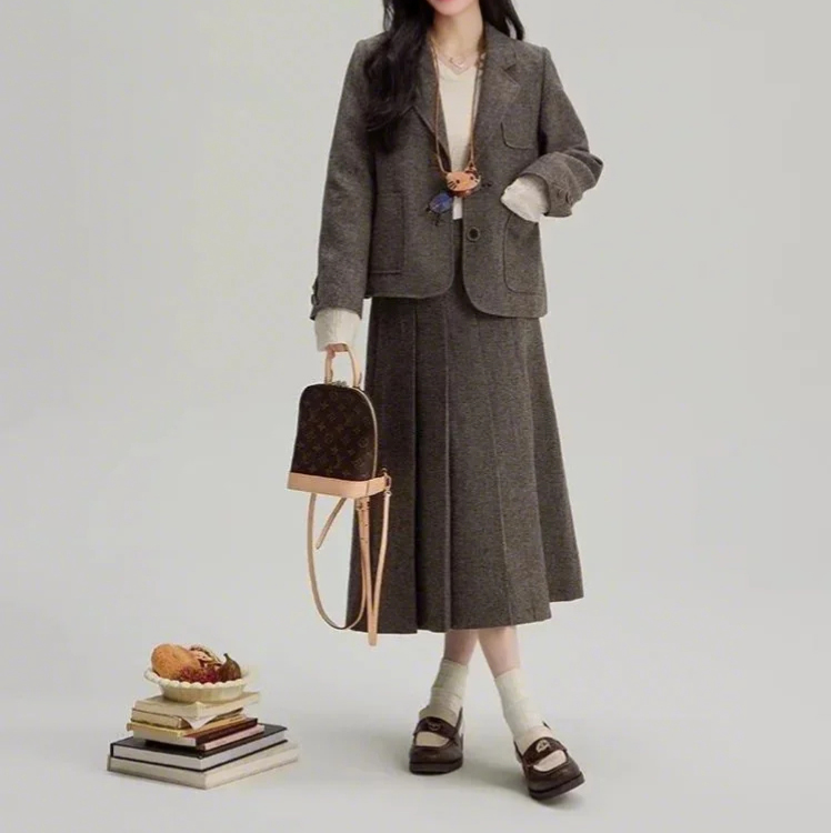 裁缝学苑AS471韩系毛呢西装女外套+百褶裙半身裙套装女装图纸样板