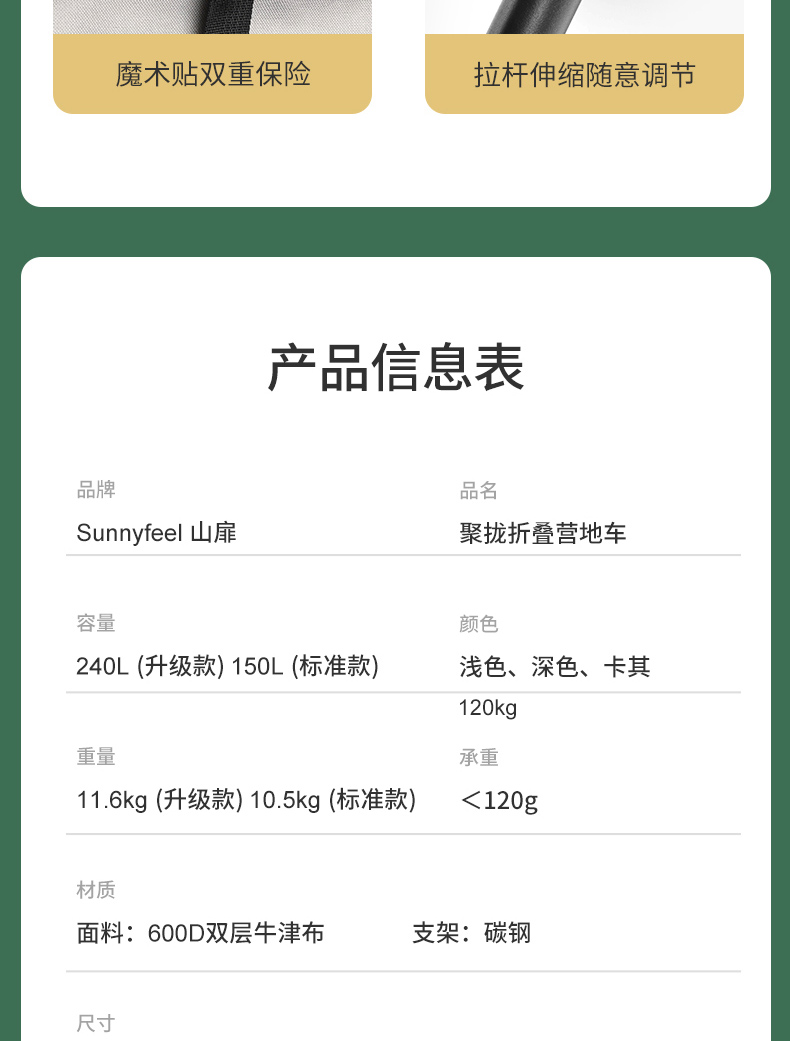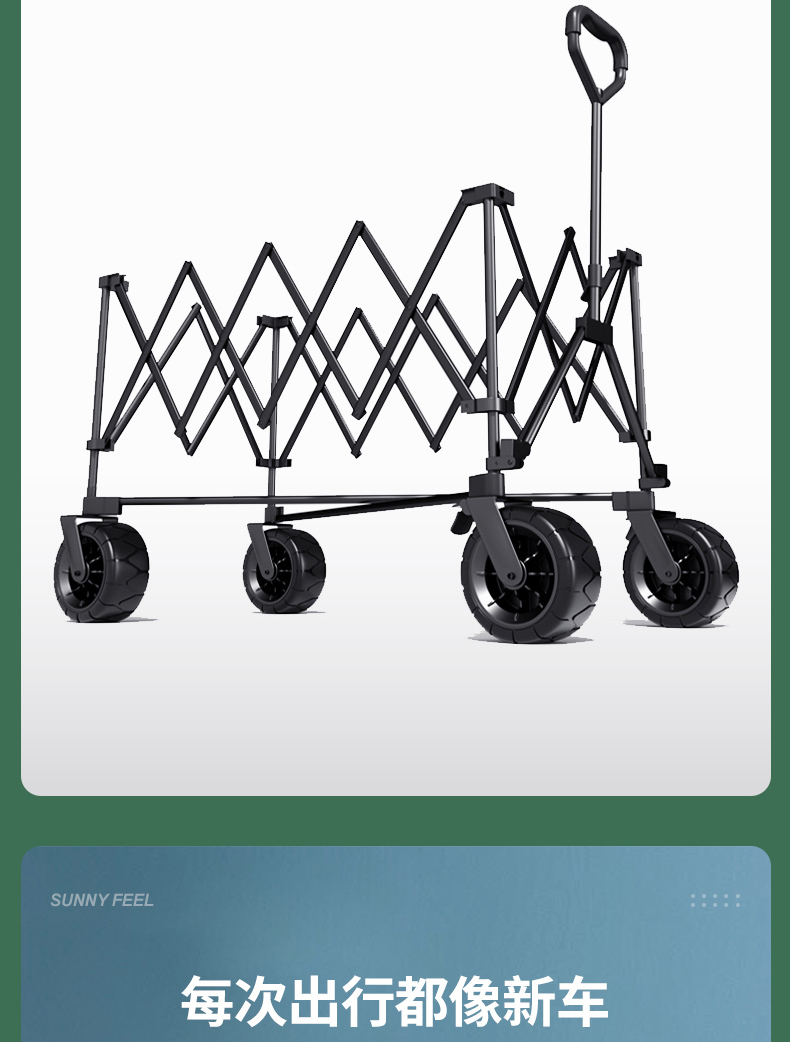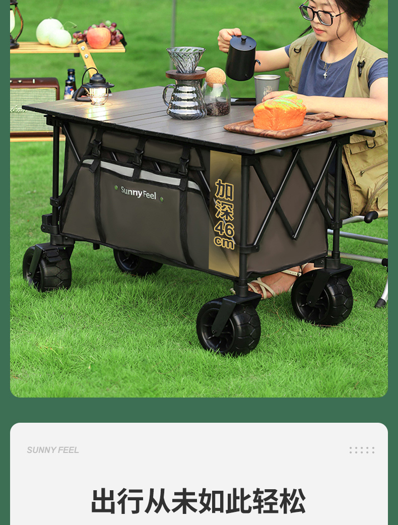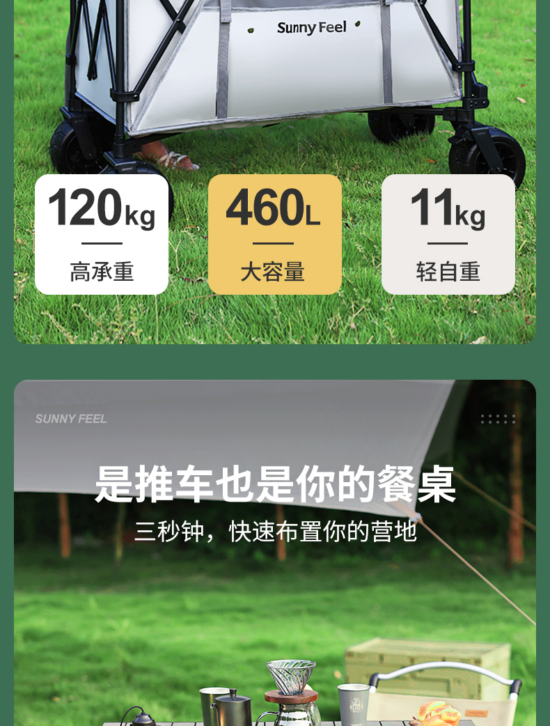 Sunnyfeel山扉超大营地车240L户外露营推车可折叠野餐野营拖车手拉车