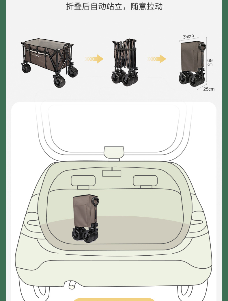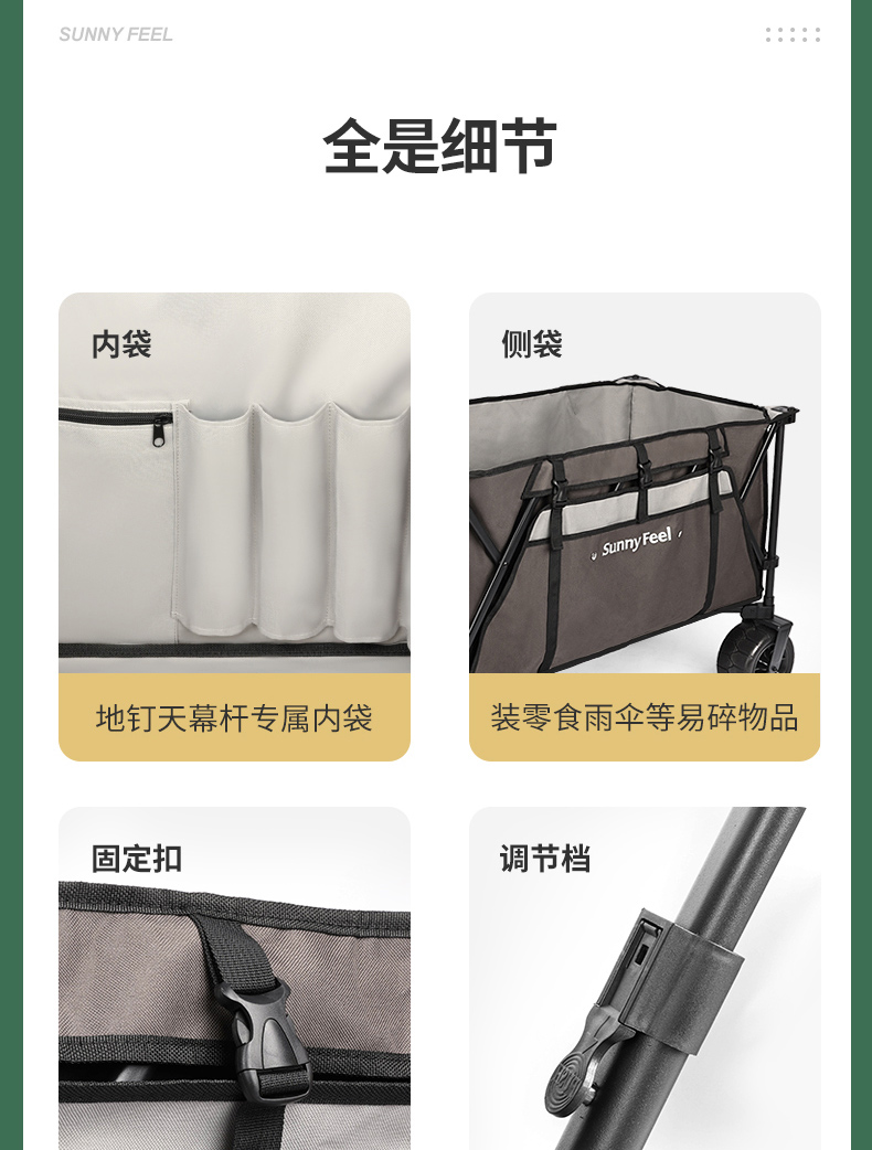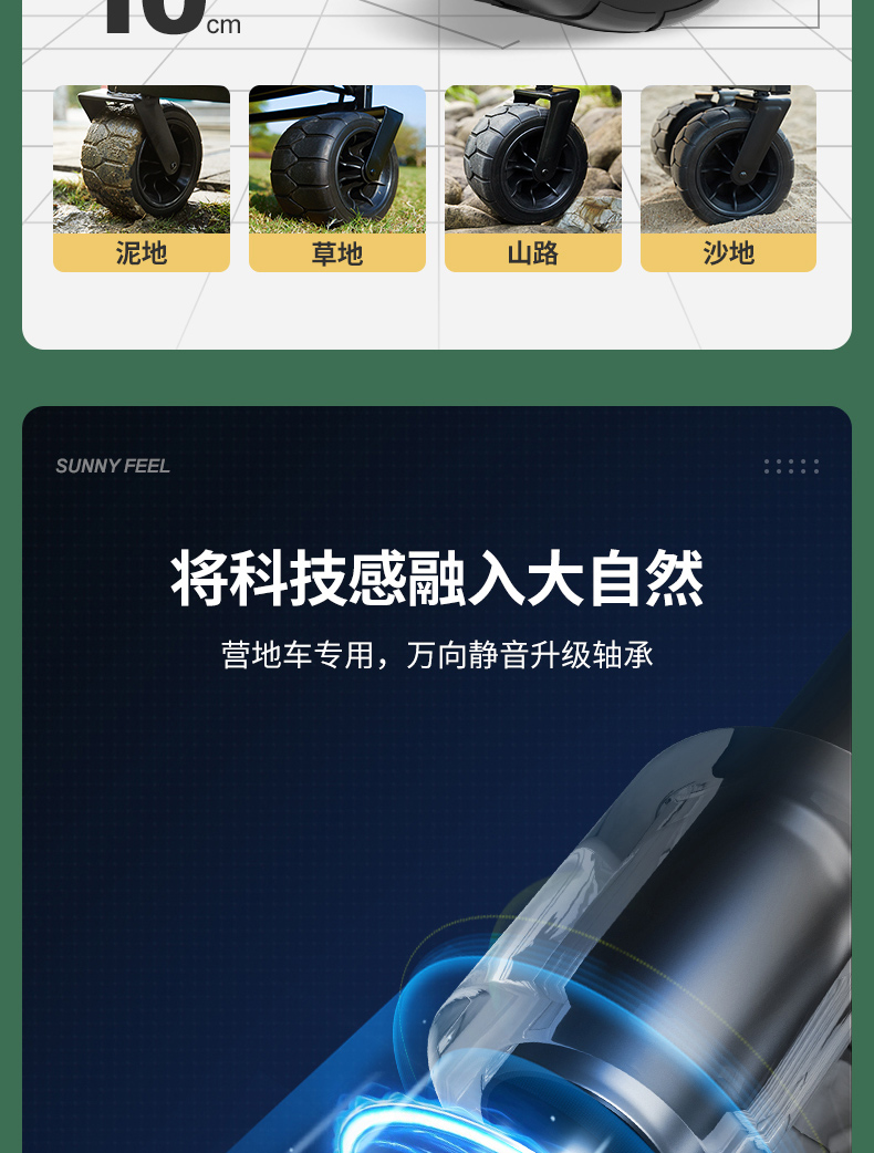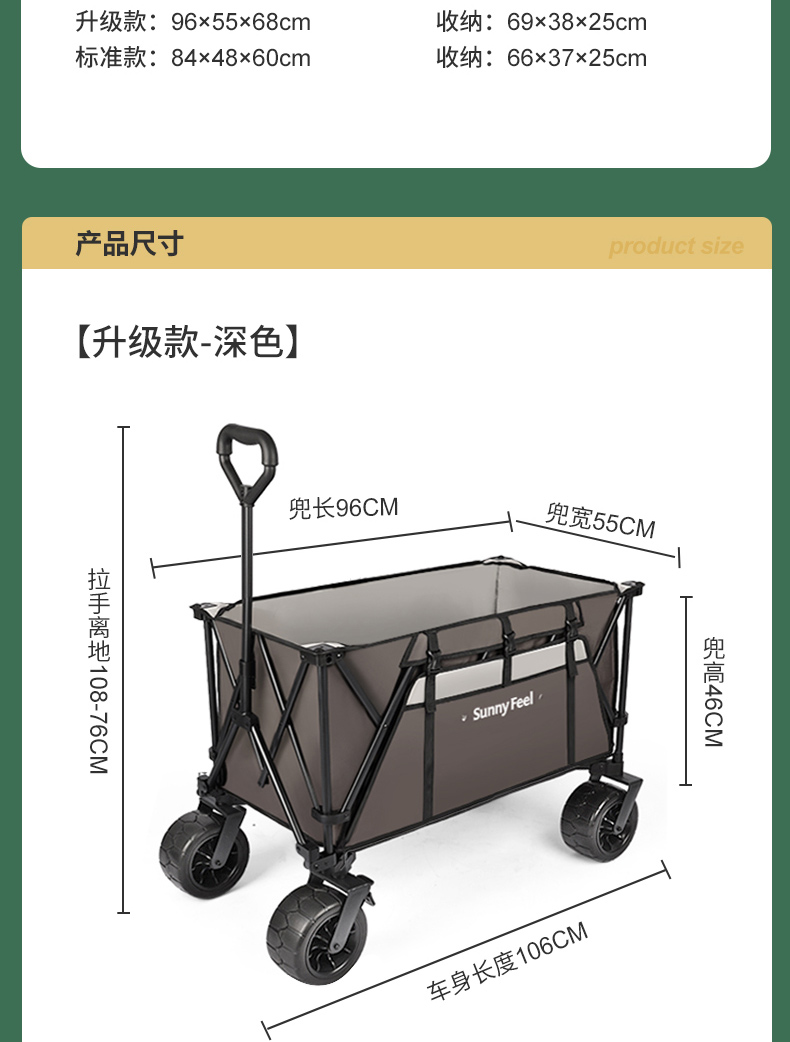 Sunnyfeel山扉超大营地车240L户外露营推车可折叠野餐野营拖车手拉车