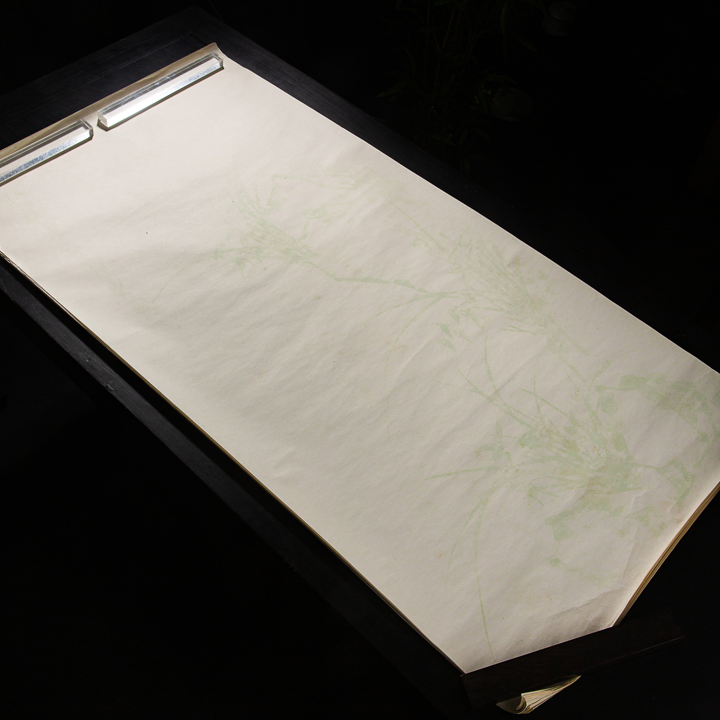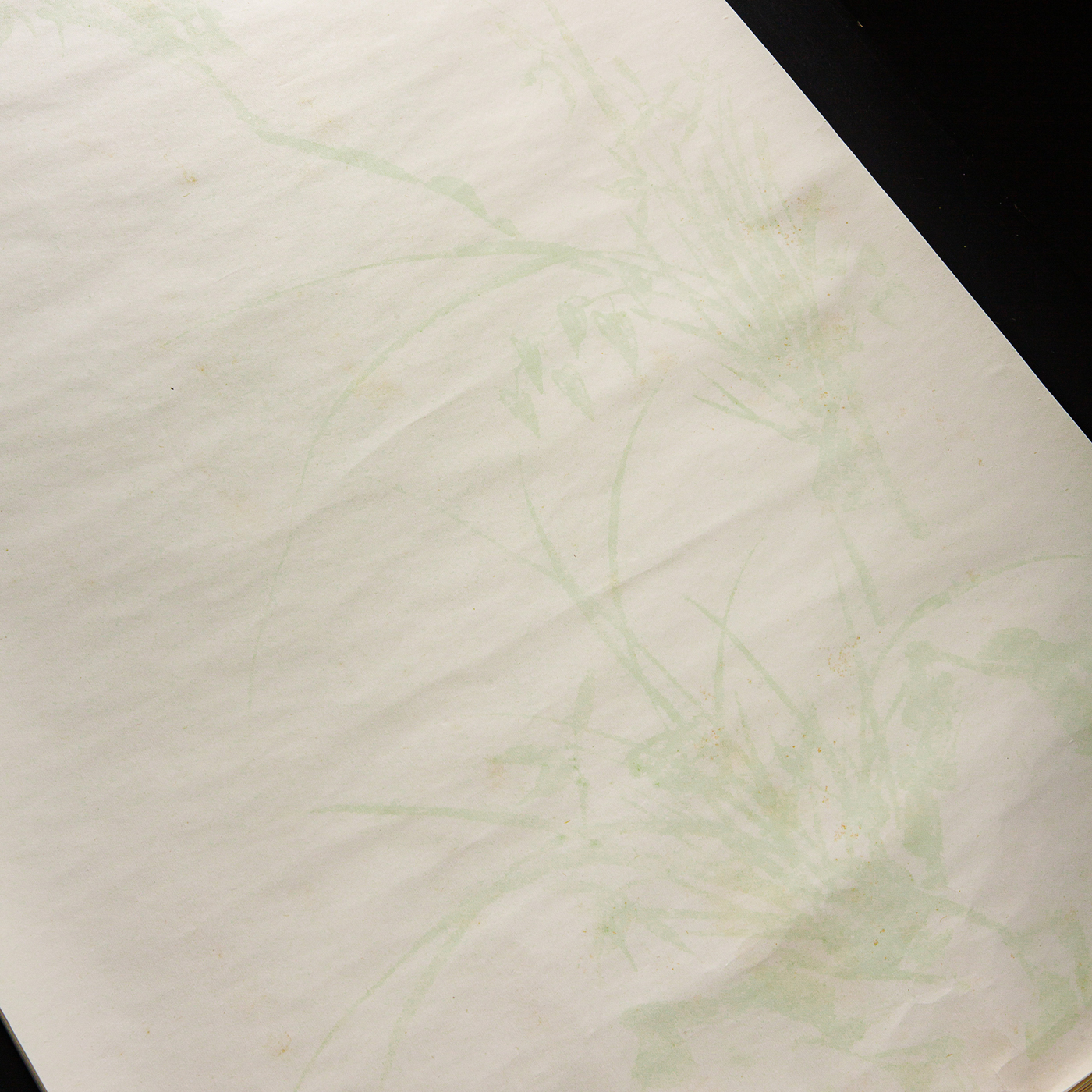 80年代天津杨柳青画店制木版水印大画笺,原装一筒15张,图案为兰花,木版水印工艺精细,颜色淡雅有韵味,纸质精良,保存完好,极为难得。