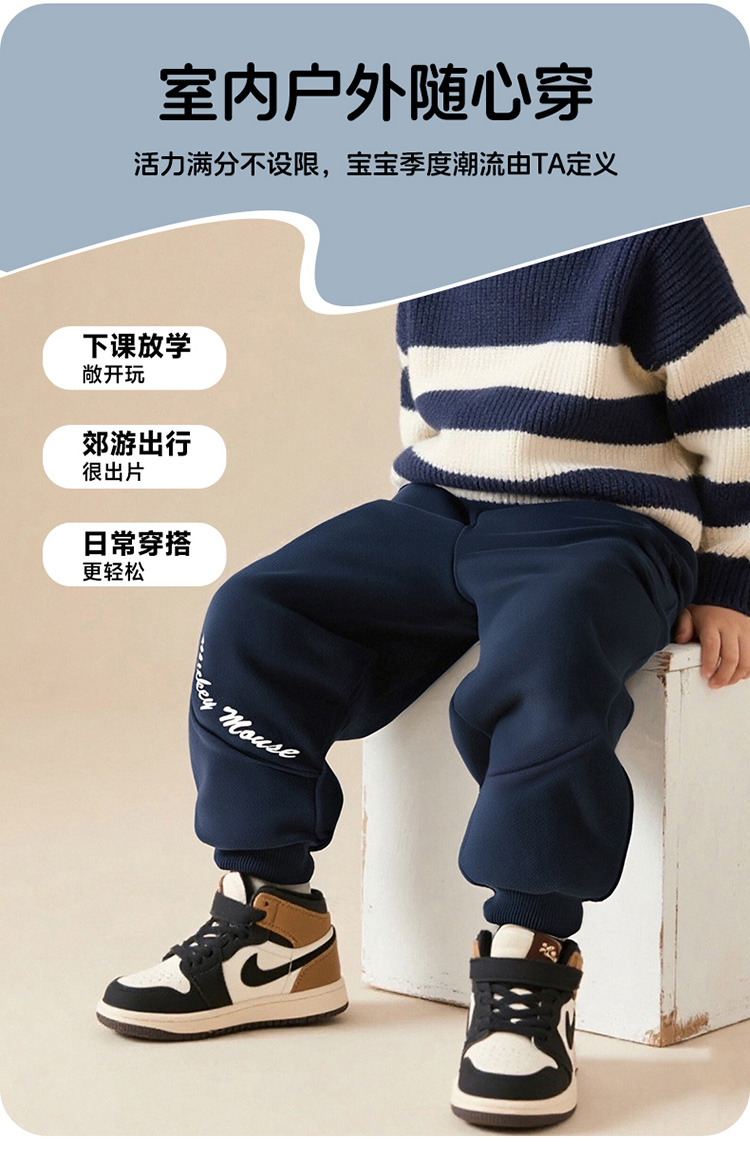 迪士尼秋冬新款男童休闲长裤舒适耐磨卫裤不易起球运动长裤ZD3EK031