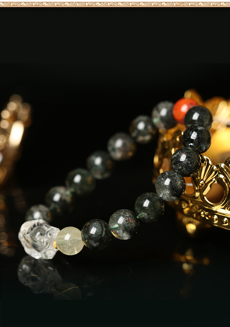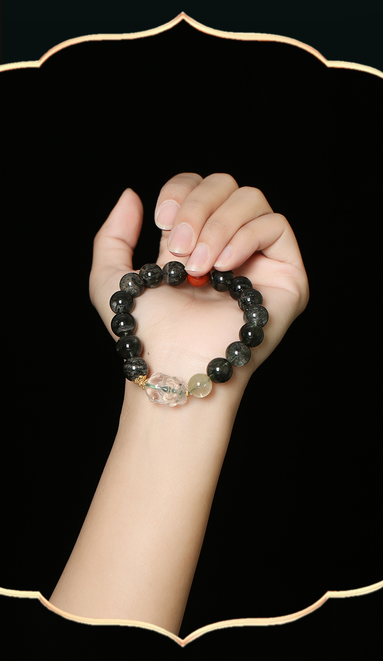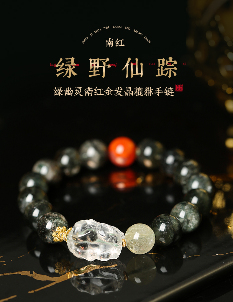 灵机生活馆超七女轻奢小众精致绿幽灵南红金发晶貔貅手链