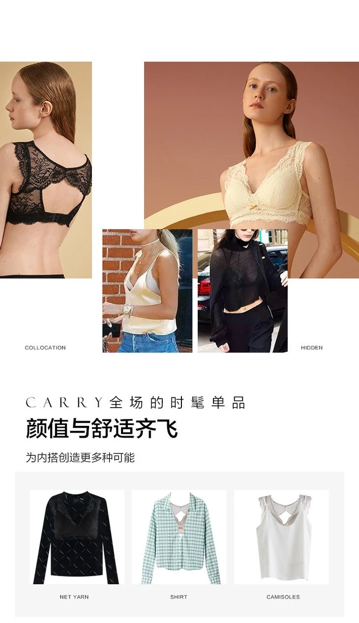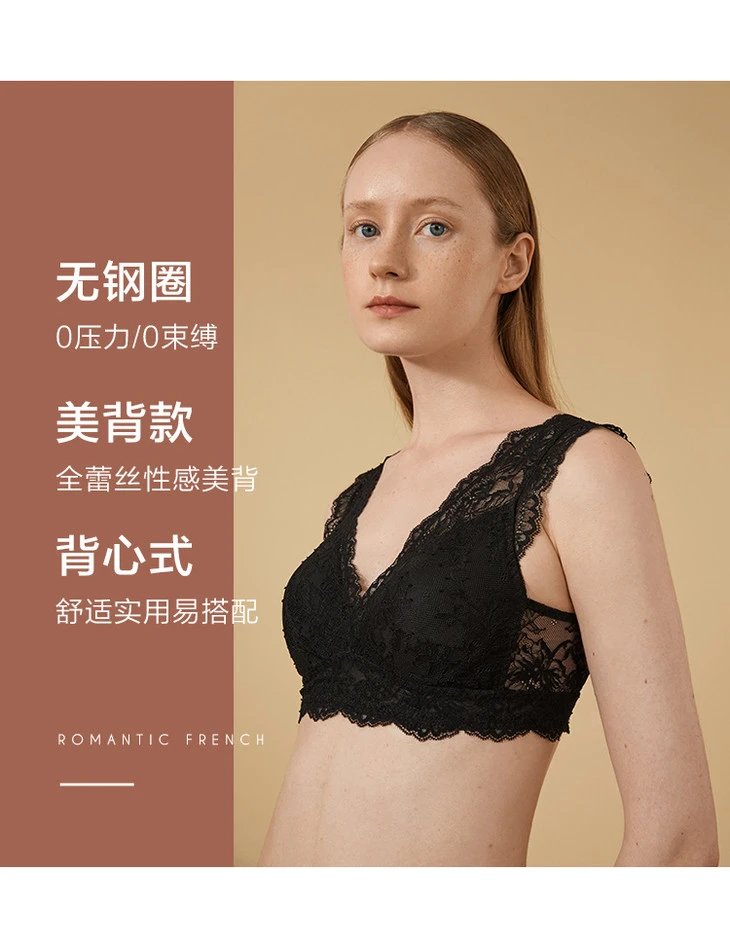 金三塔秋冬新品真丝无钢圈内衣女 背心式性感蕾丝文胸NZFAC308
