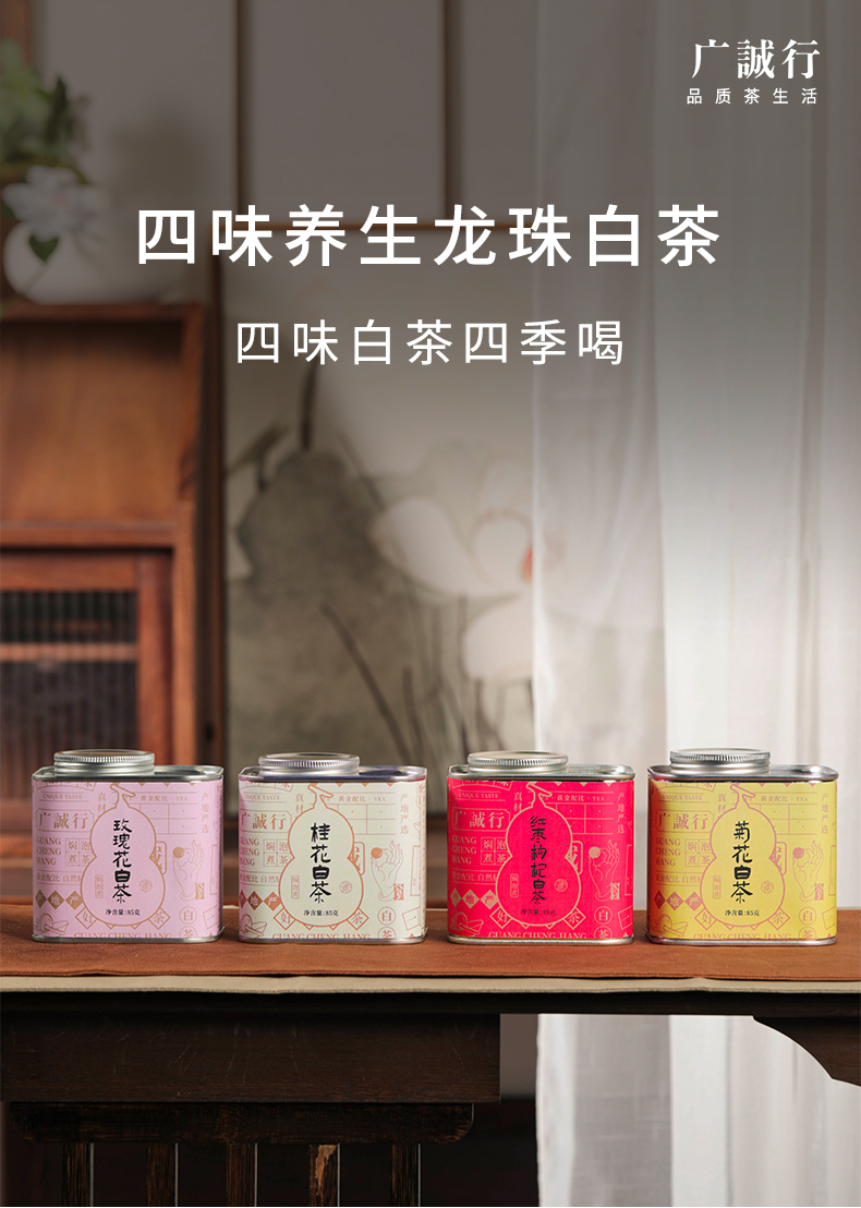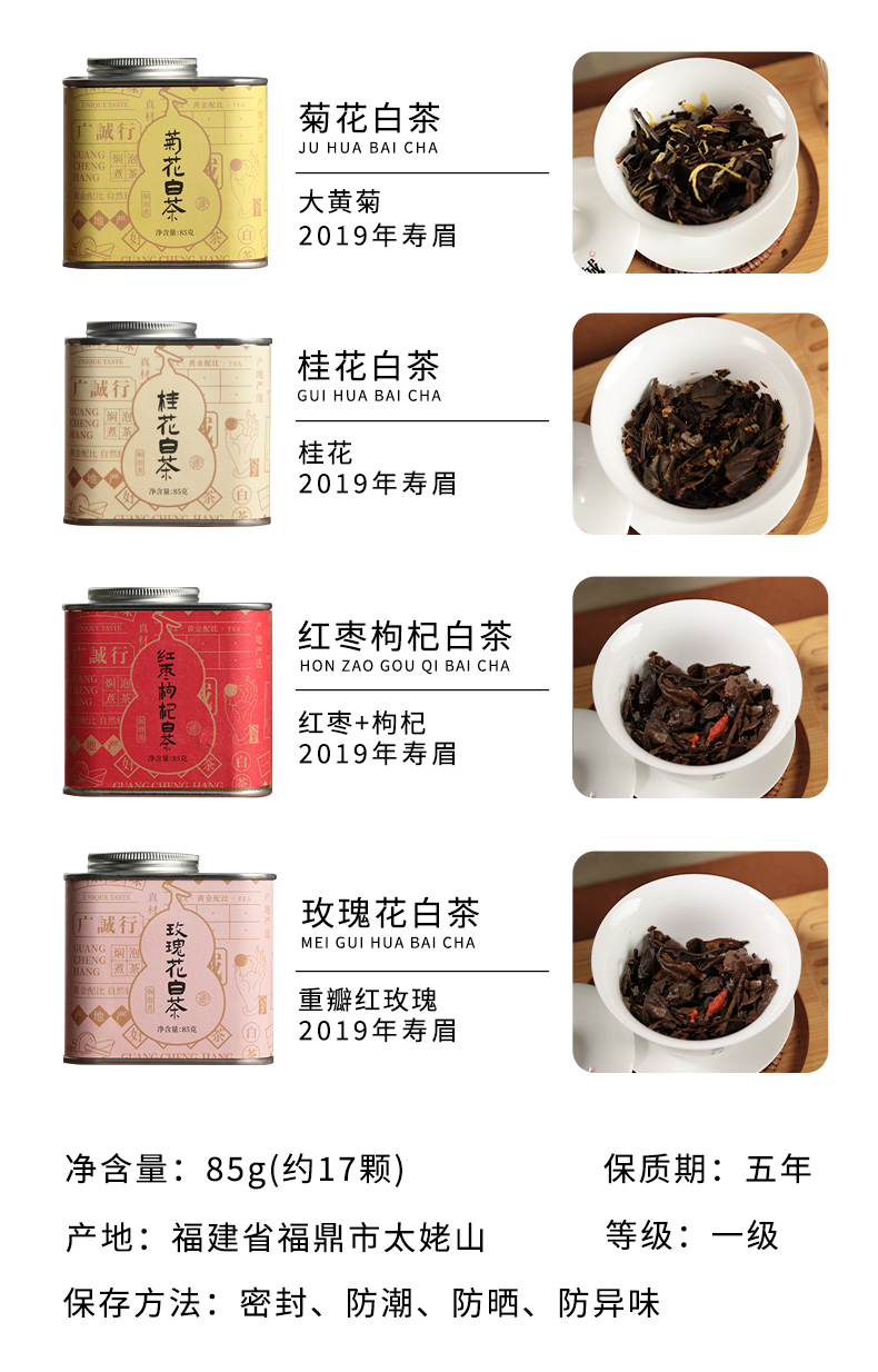 【是山】四味白茶养生龙珠福鼎寿眉玫瑰花菊花红枣枸杞桂花85g罐装
