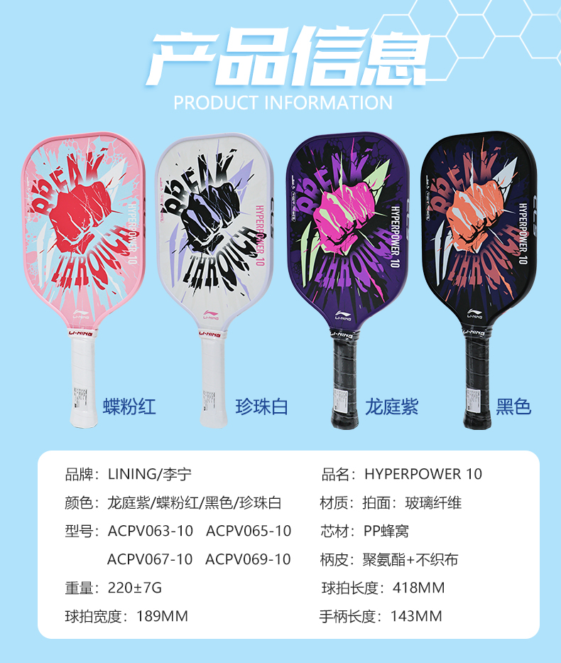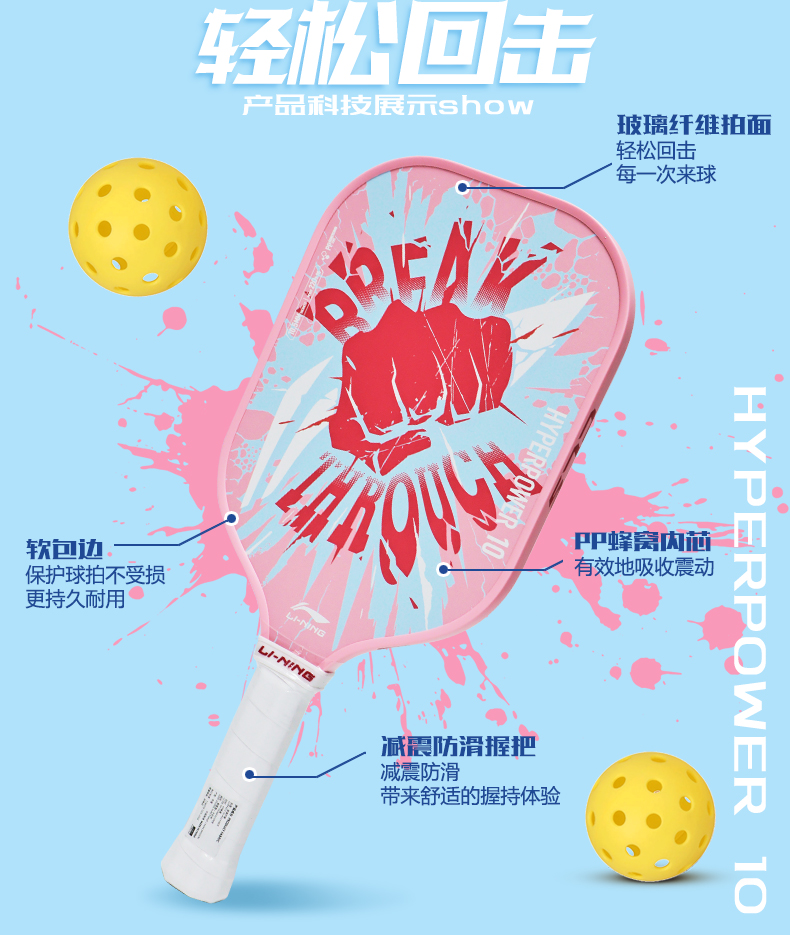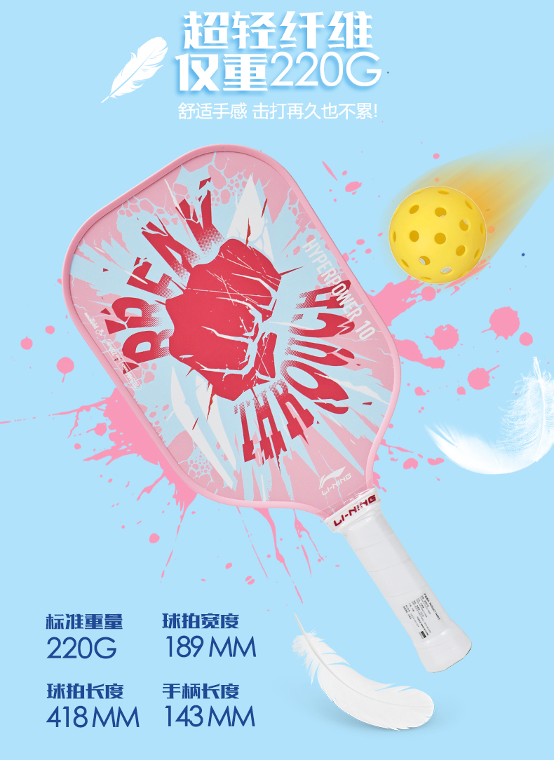 李宁匹克球拍HYPERPOWER 10入门训练力量型运动球拍全碳纤维匹克球拍