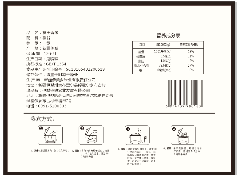 新疆察布查尔 伊美乡蟹田香米5kg/袋