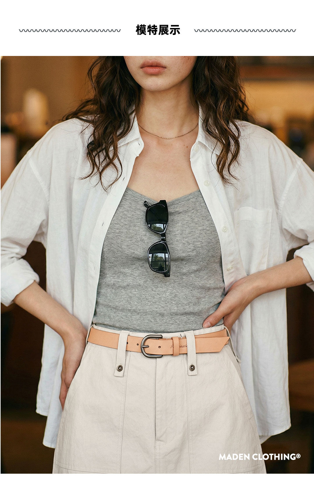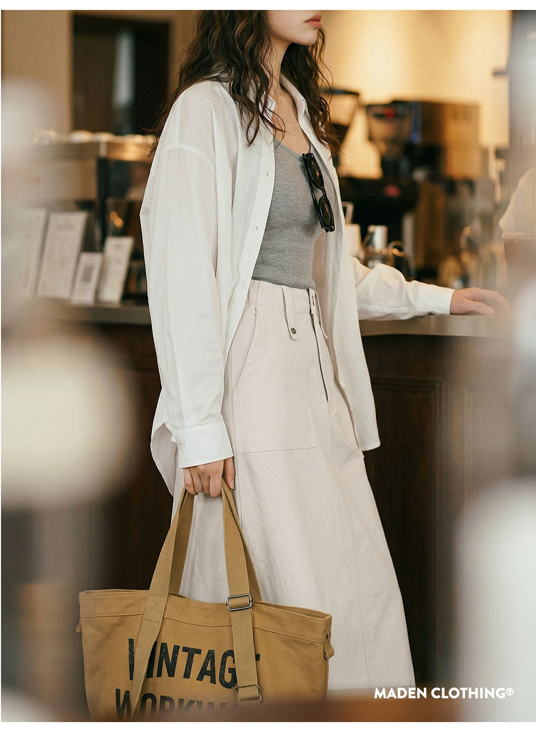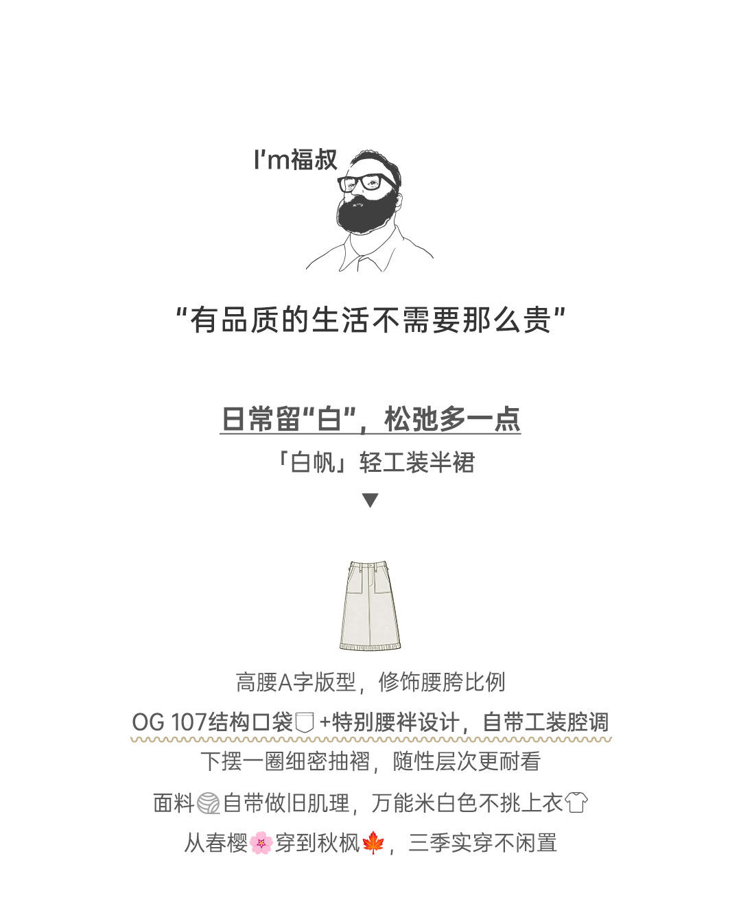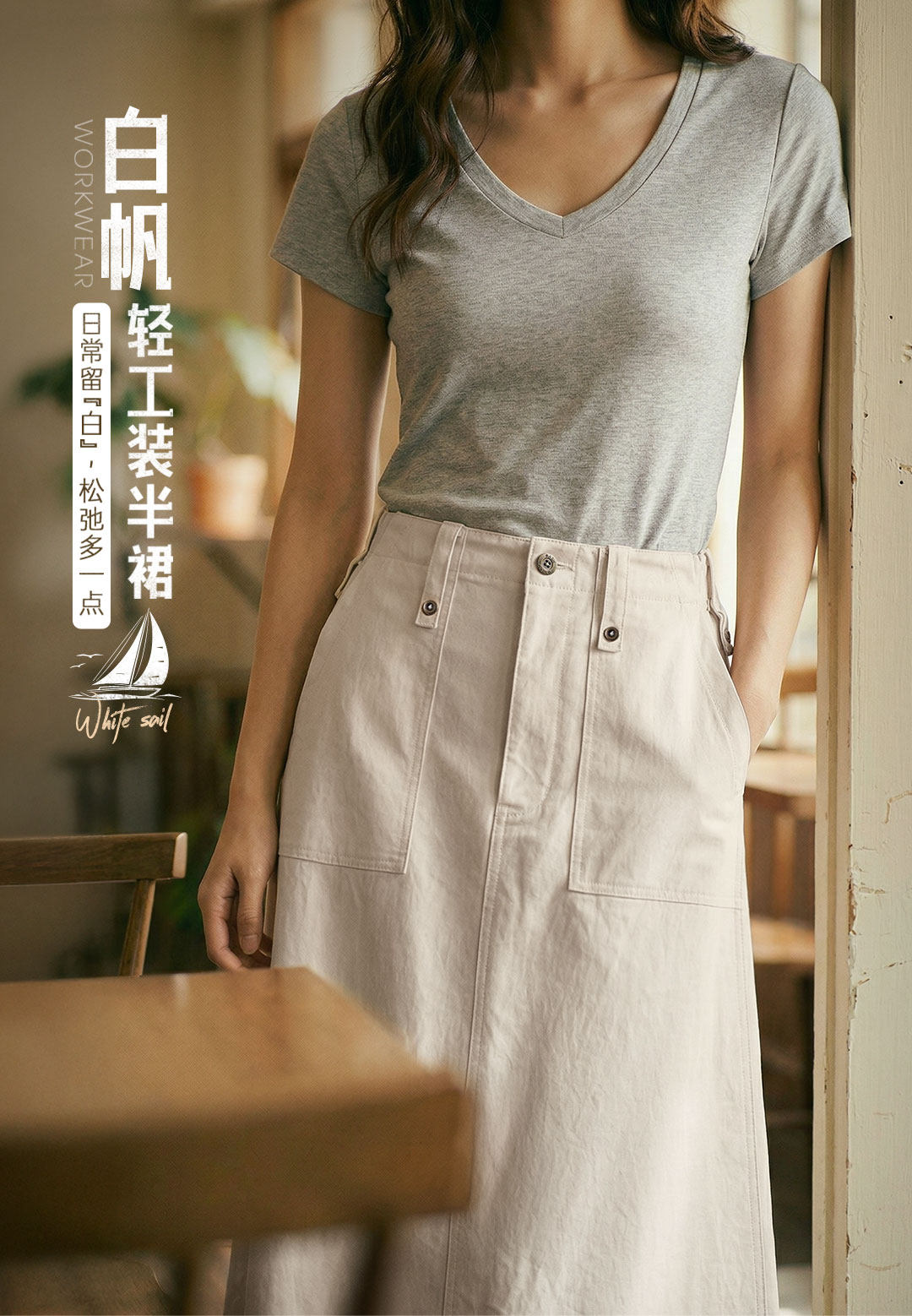 马登复古米白色高腰垂感显瘦休闲A字版后开叉直筒工装半身裙女士