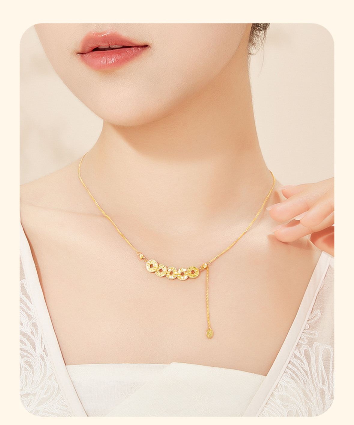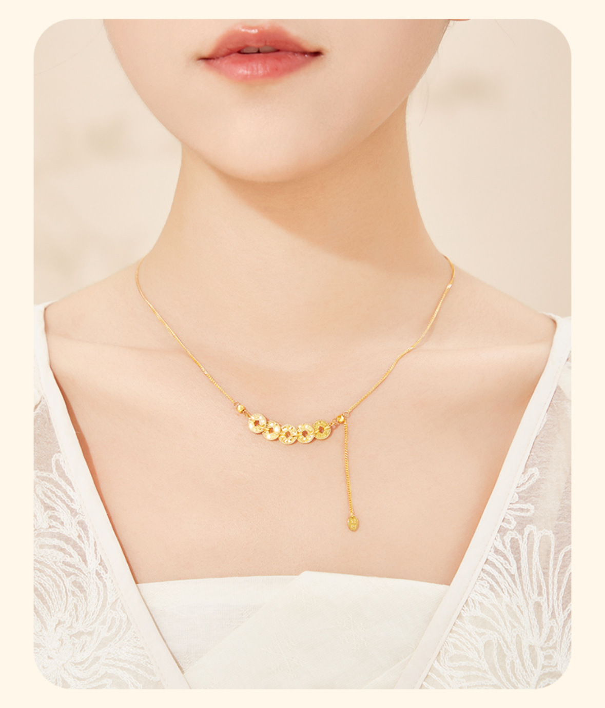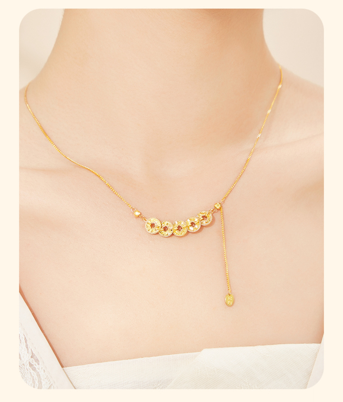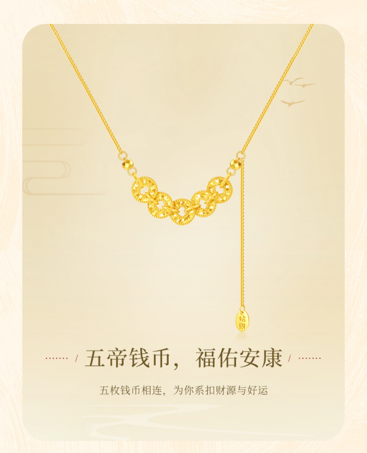 六鑫珠宝 碎冰冰五帝钱币项链 s925银镀金