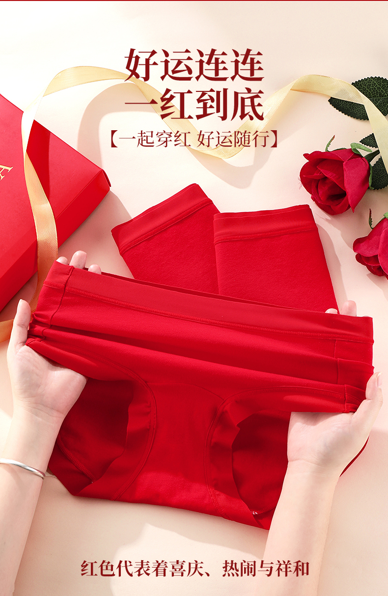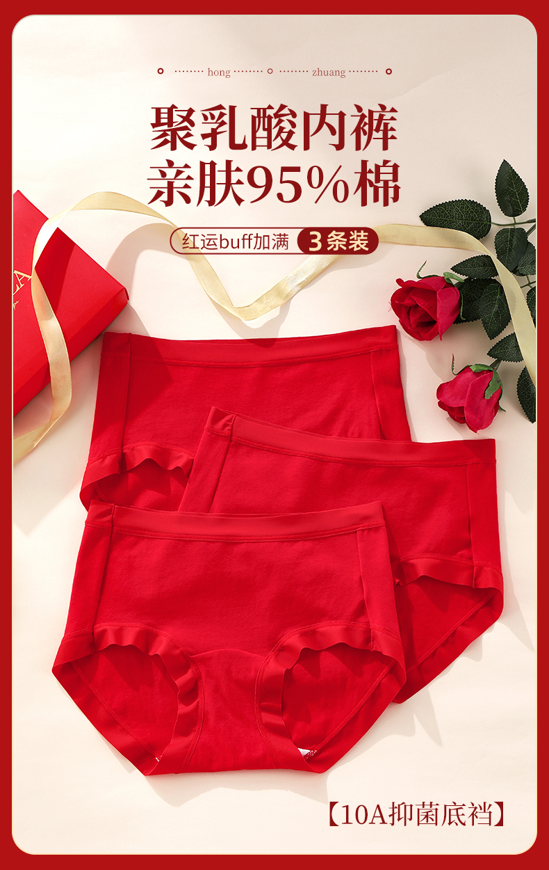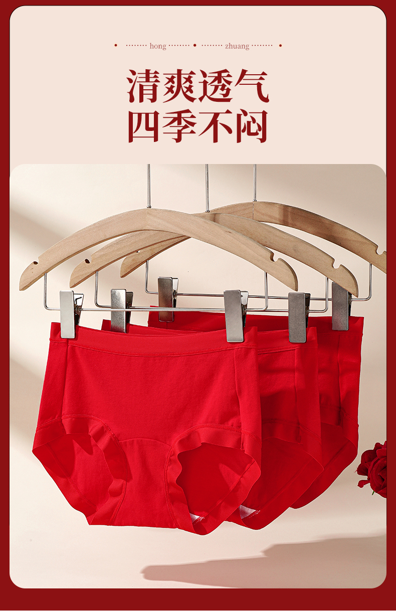 【3条装】雅黛俪女士内裤马年本命年大红色三角裤纯棉透气裤头