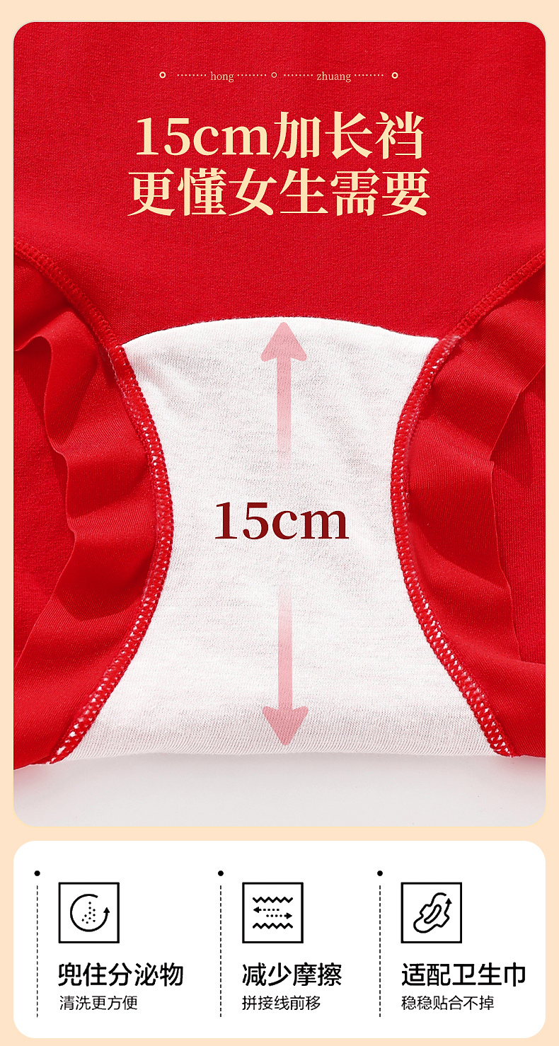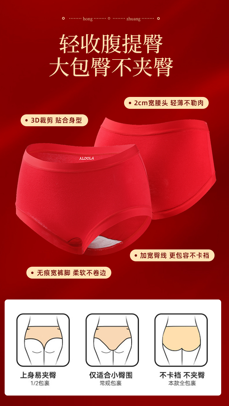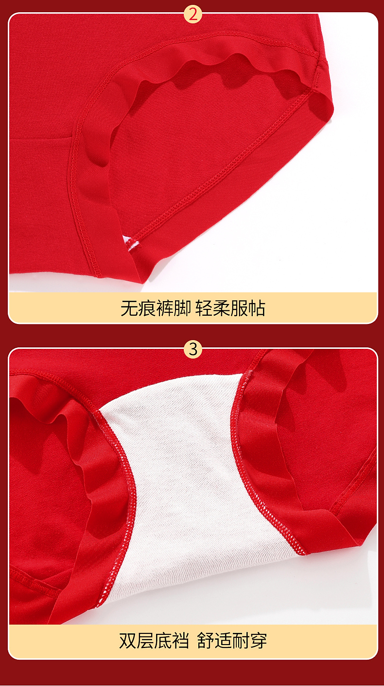 【3条装】雅黛俪女士内裤马年本命年大红色三角裤纯棉透气裤头