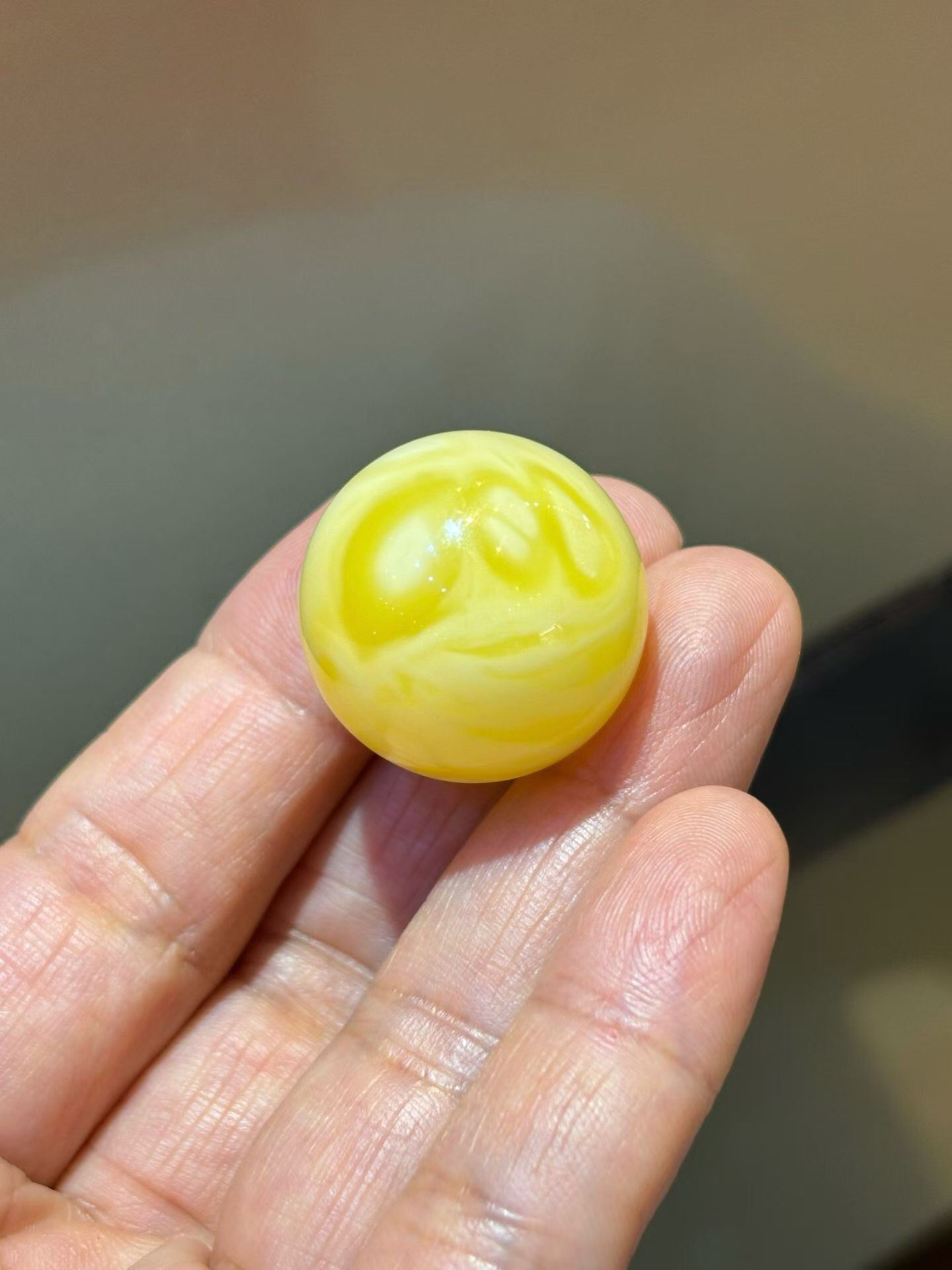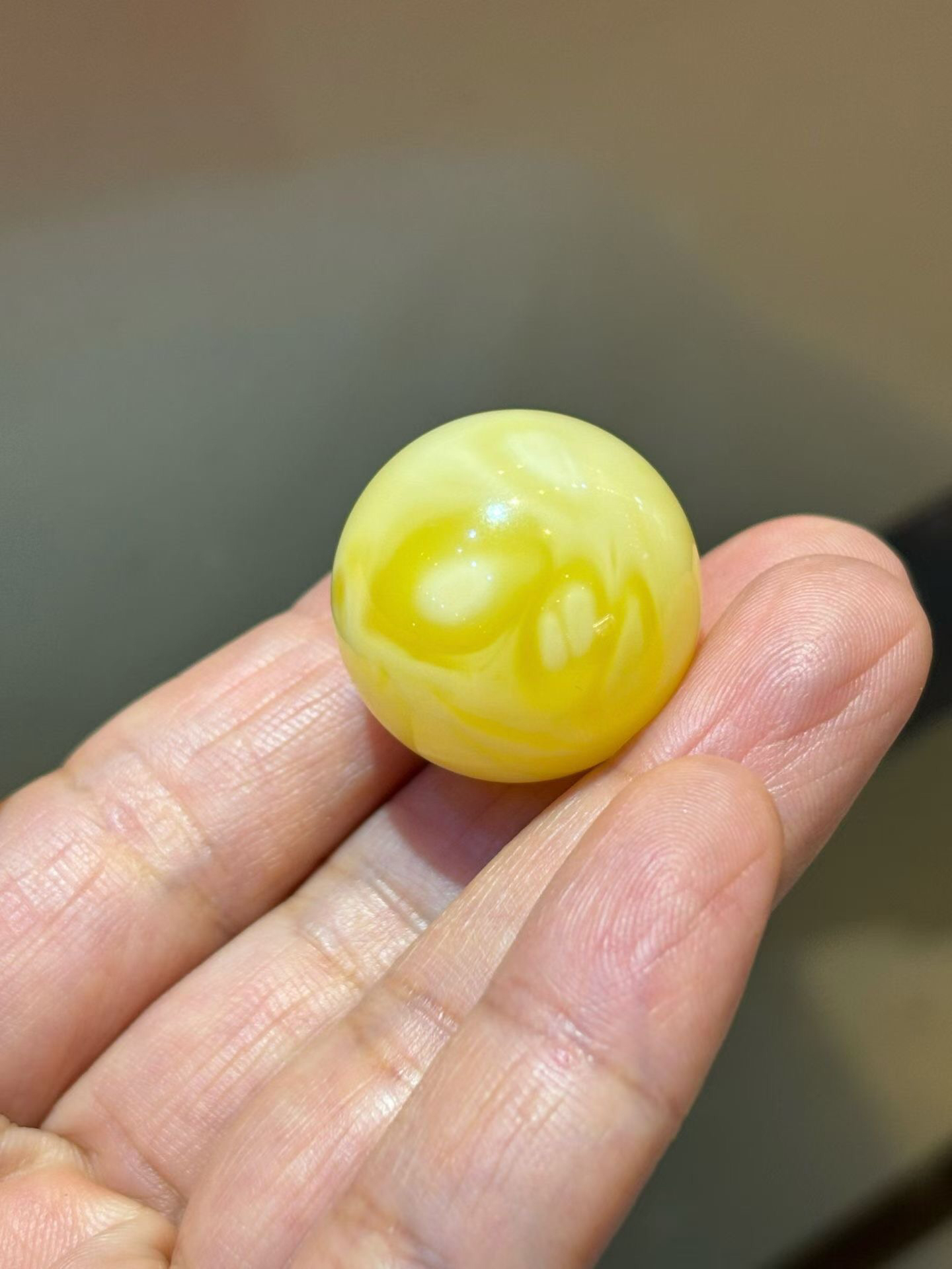 精品白花蜜蜡圆珠,蜡质浓郁醇厚,花纹妖娆好看,做锁骨链超好看,尺寸24.6mm,完美品!