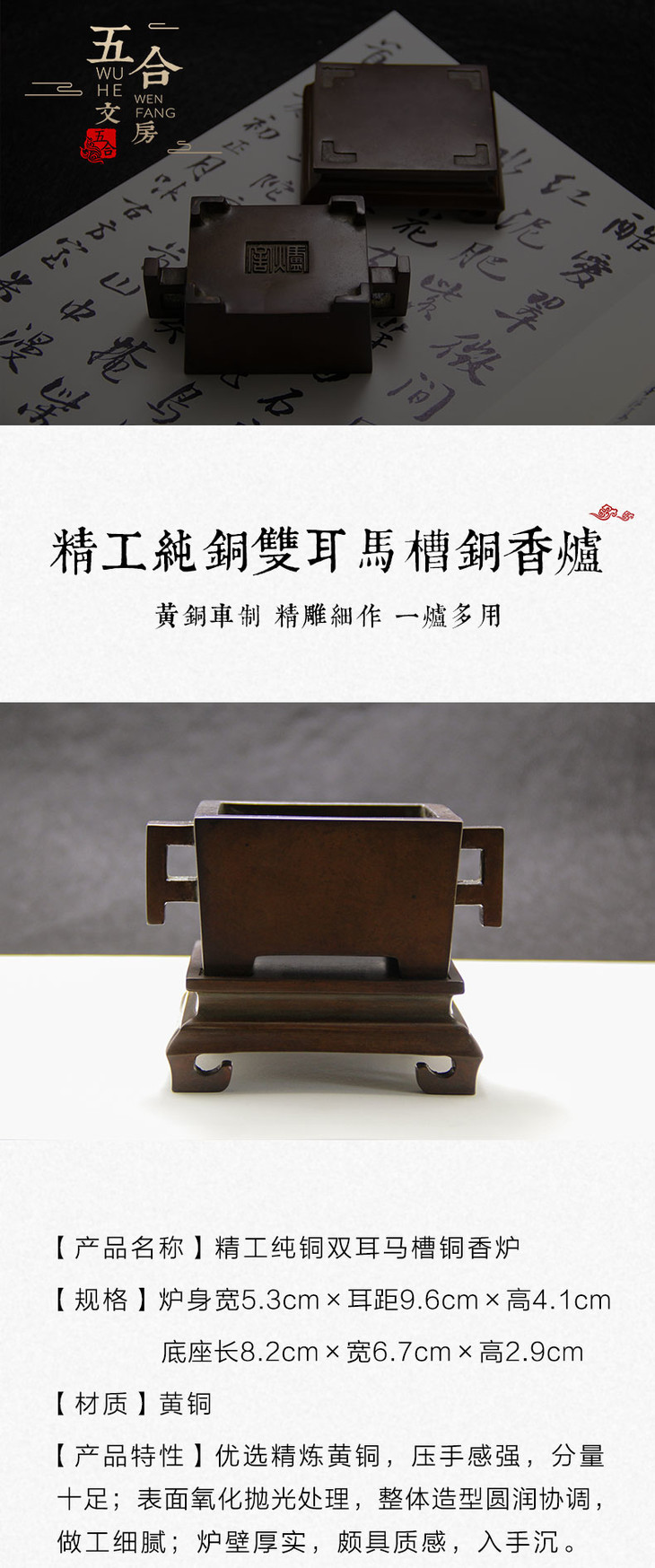 香炉丨精工纯铜双耳马槽铜香炉