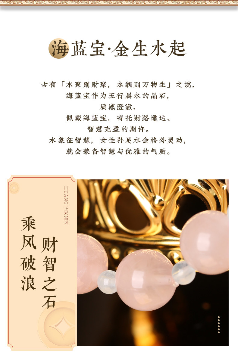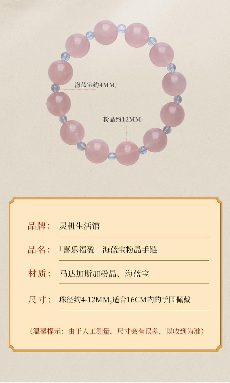 【祈愿吉品】海蓝宝粉晶手链新款姻缘高级精致水晶