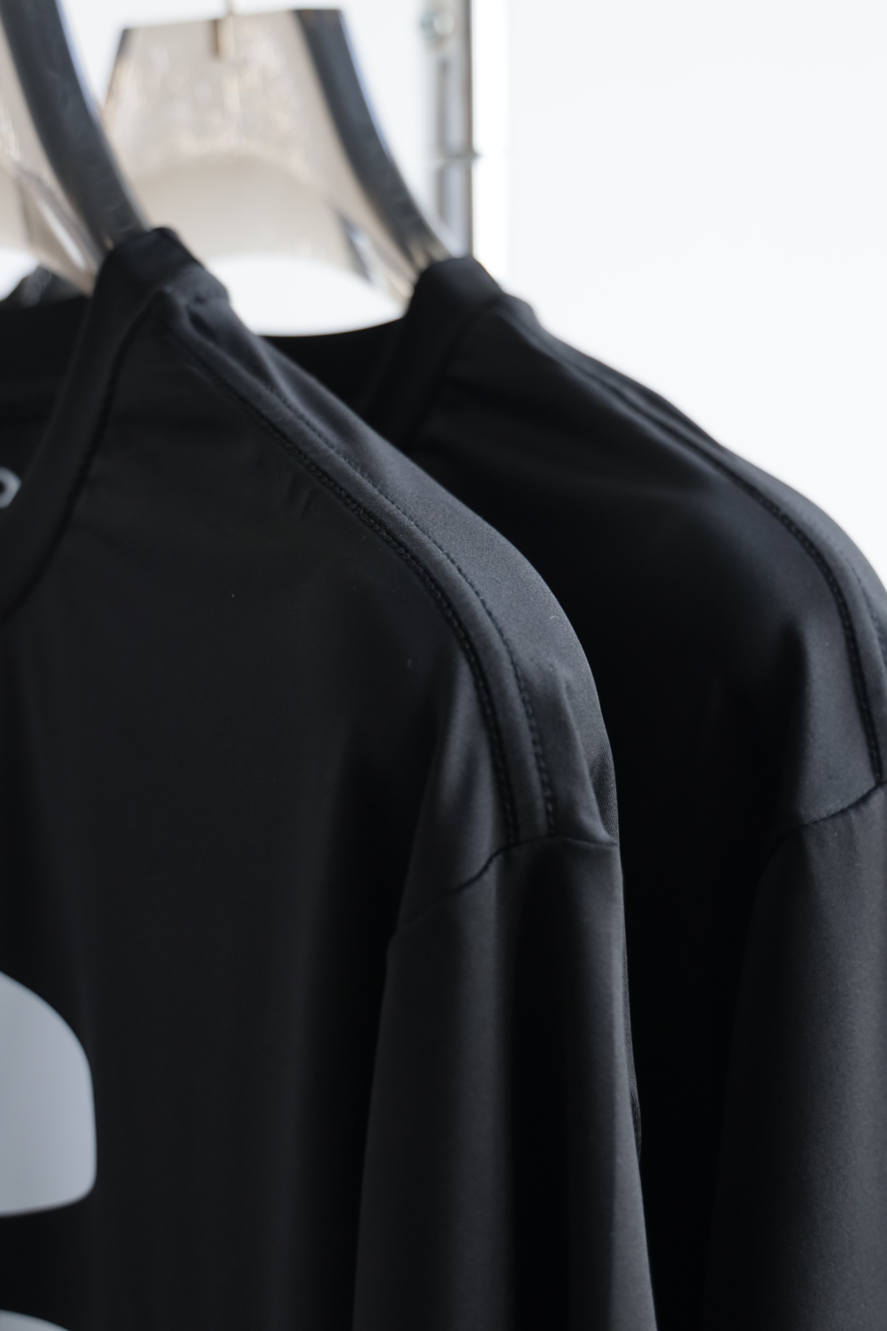 这个面料不是薄薄的那种 是有一定厚度的高克重弹力速干面料,简单的Logo非常百搭。